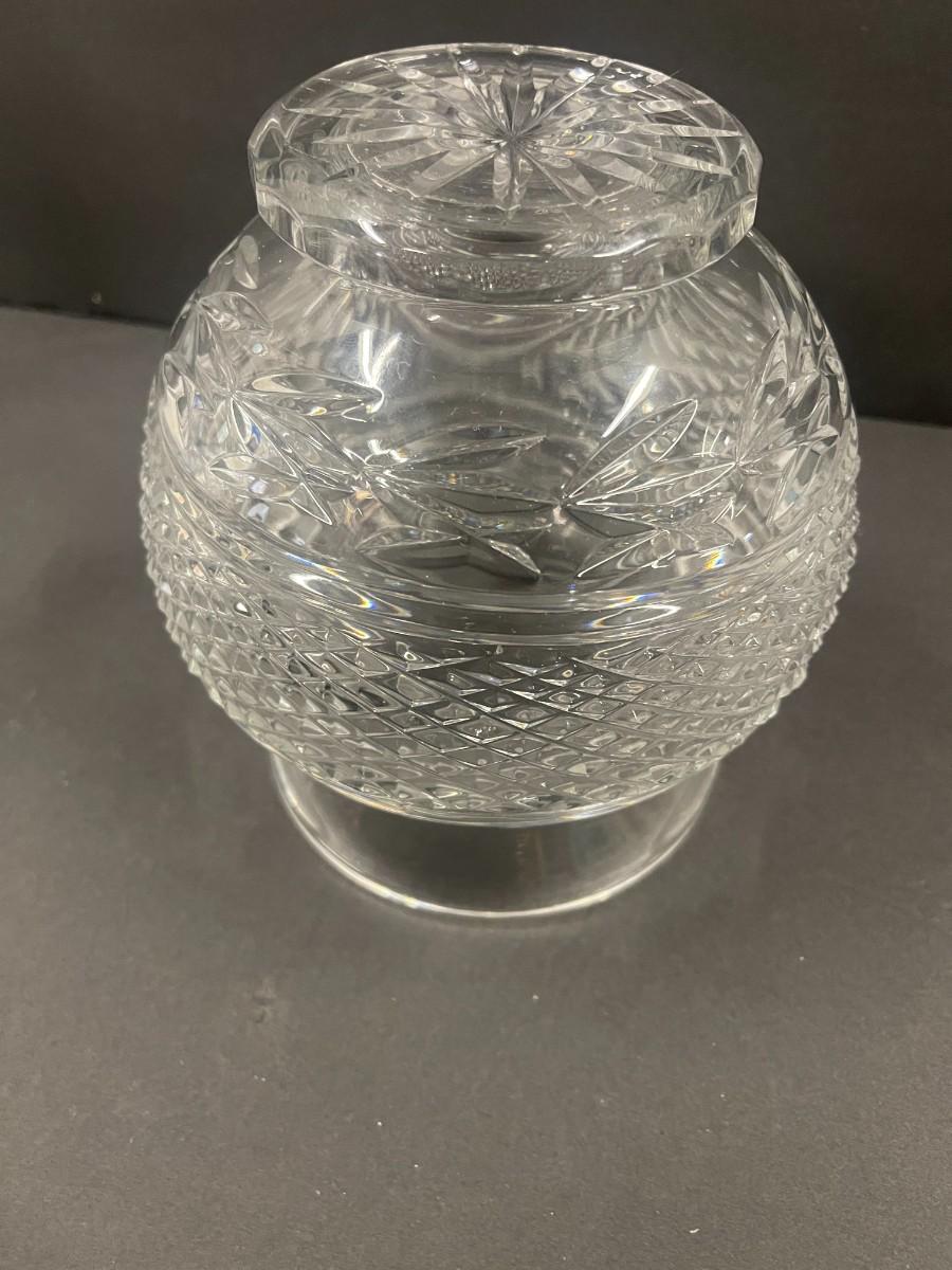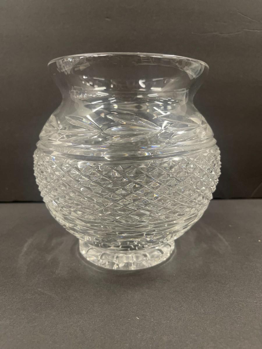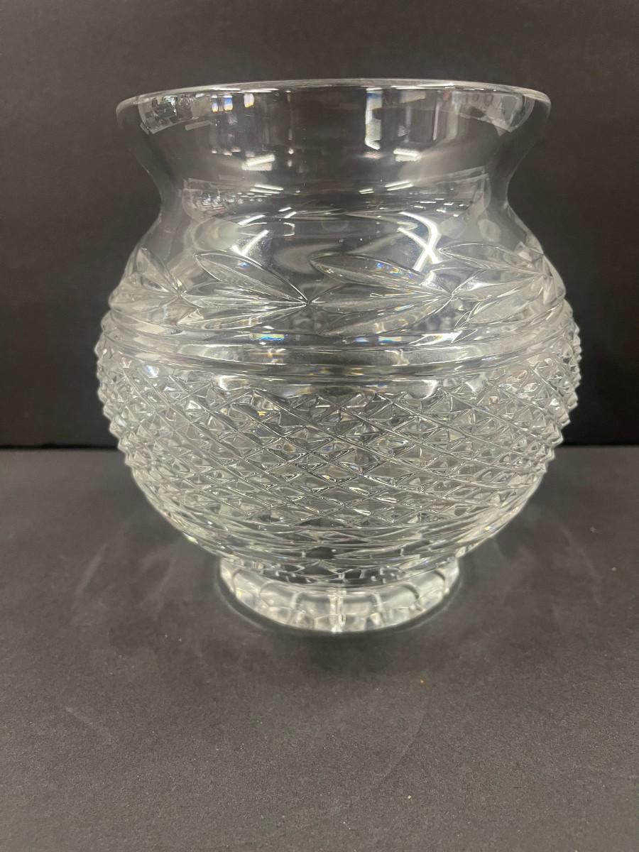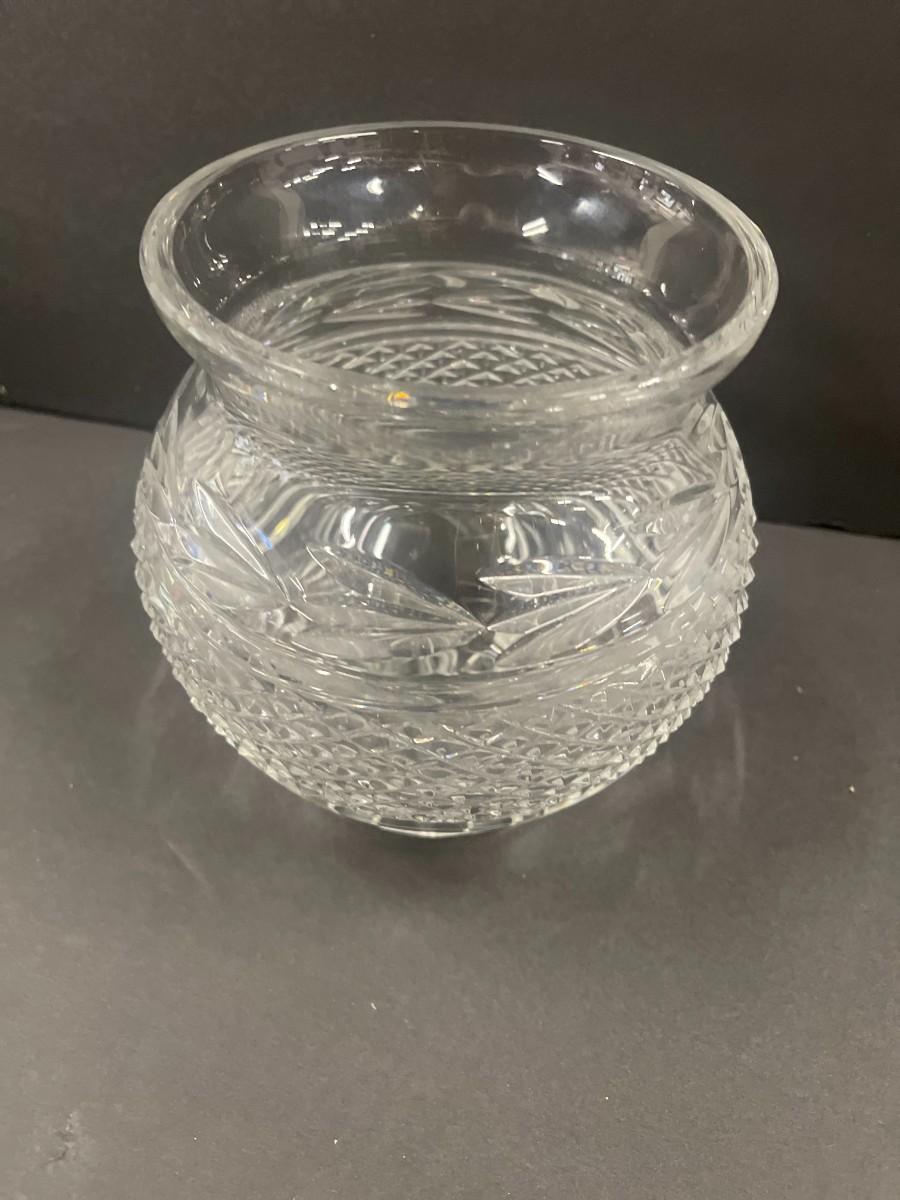 Crystal vase, unmarked. 6 1/2" high x 5" wide (at opening)
