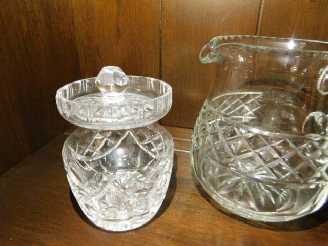 Crystal Water Pitcher and Condiment Jar
