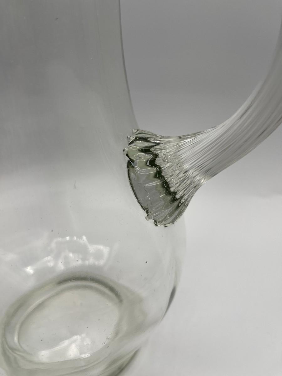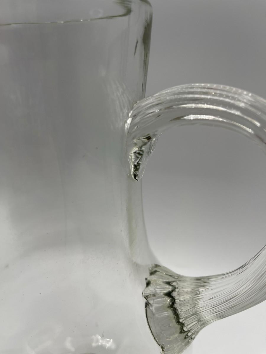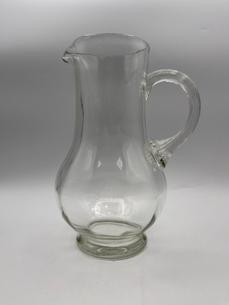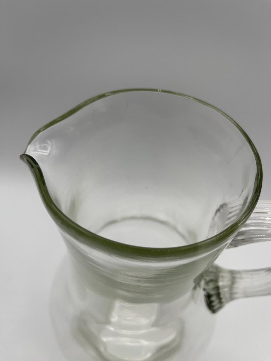 Vintage pitcher, with classic ribbed handle. Lovely silhouette sure to grace any table. Approx.: 7" W from handle to spout, 10" H # 810