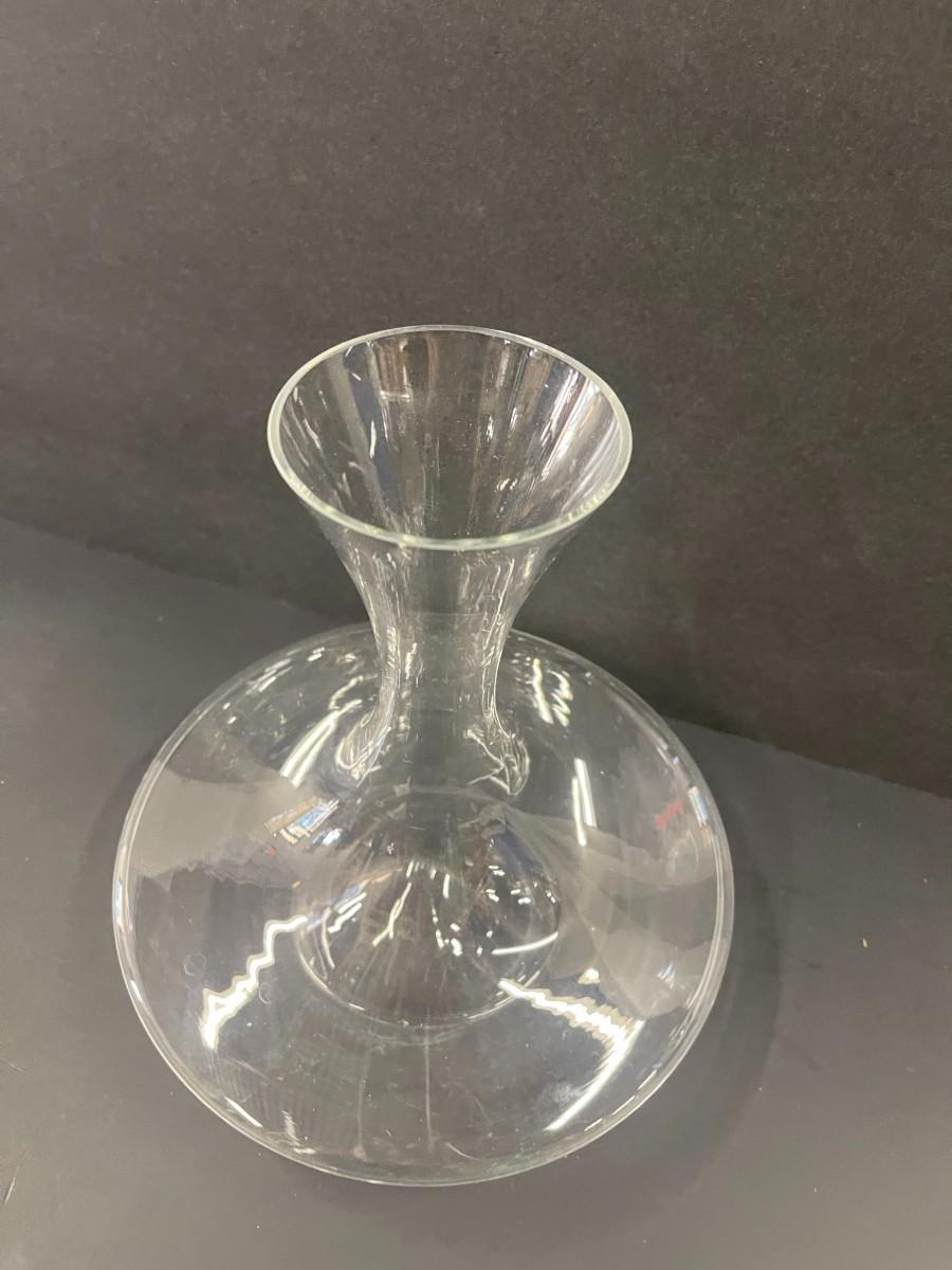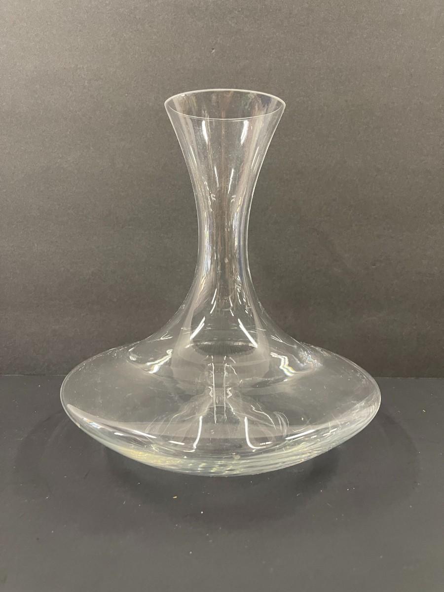 Crystal wine decanter, 9" high x 8" wide. Very good condition, may have some cloudiness in the bottom.