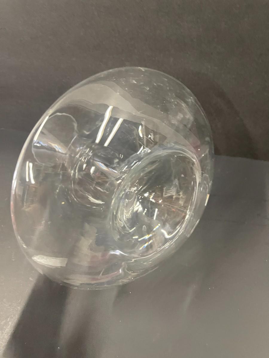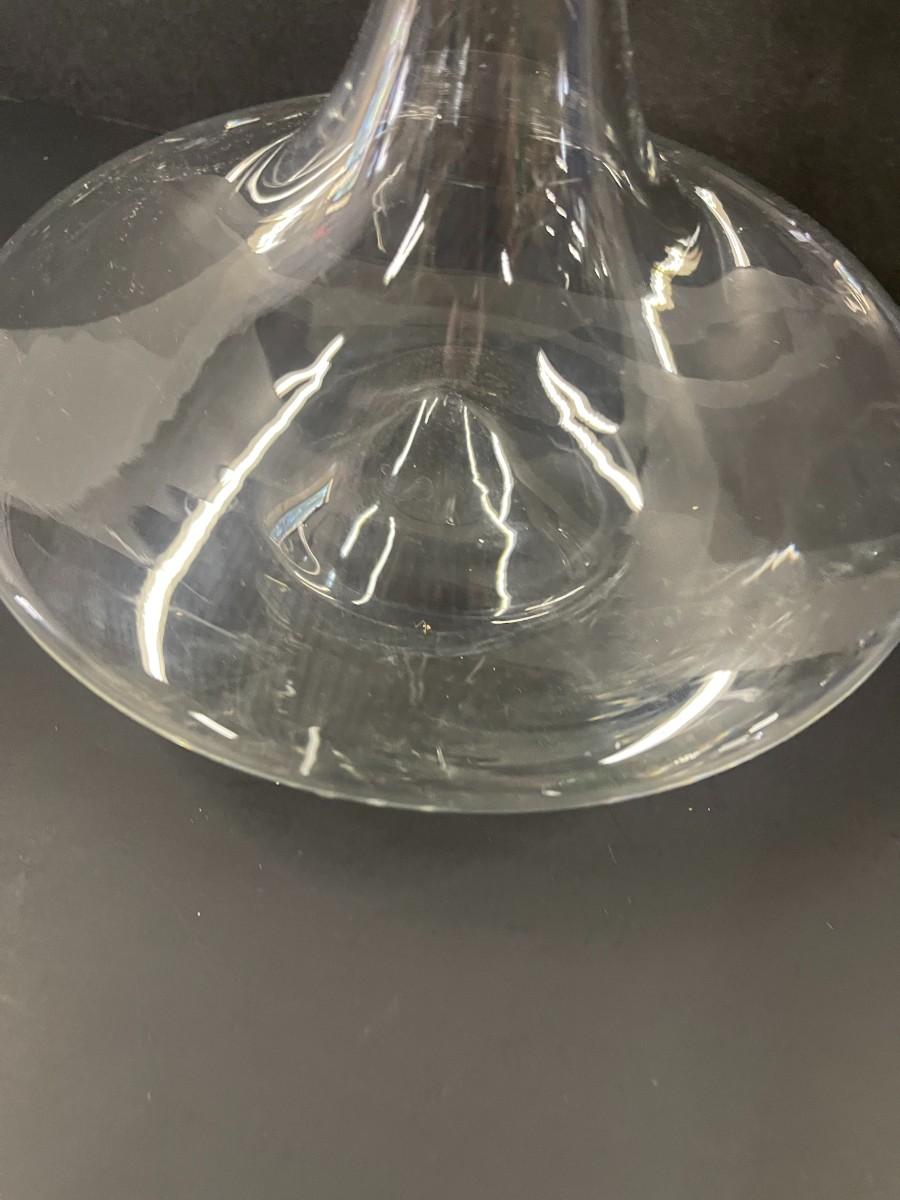 Crystal wine decanter, 9" high x 8" wide. Very good condition, may have some cloudiness in the bottom.