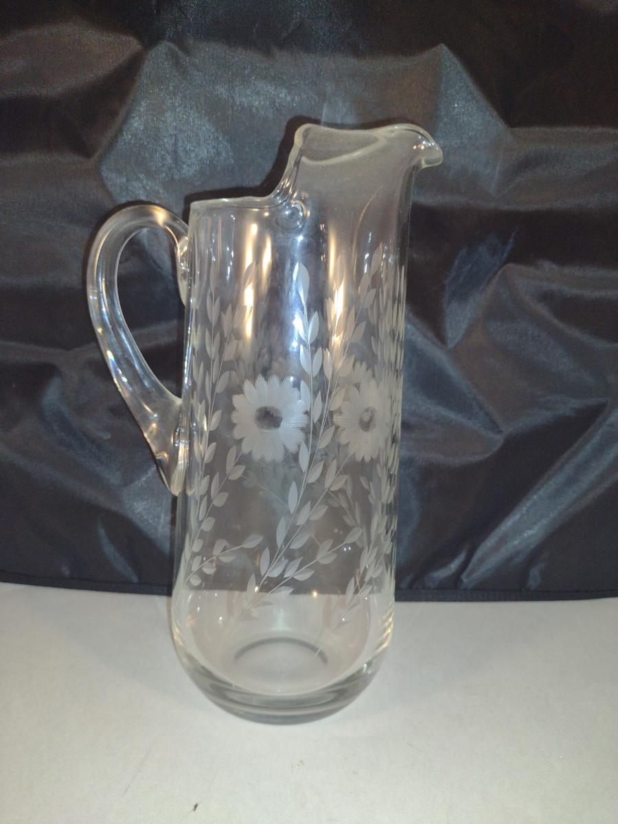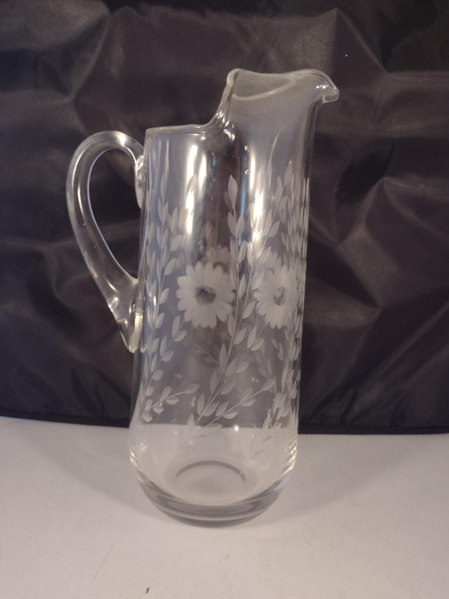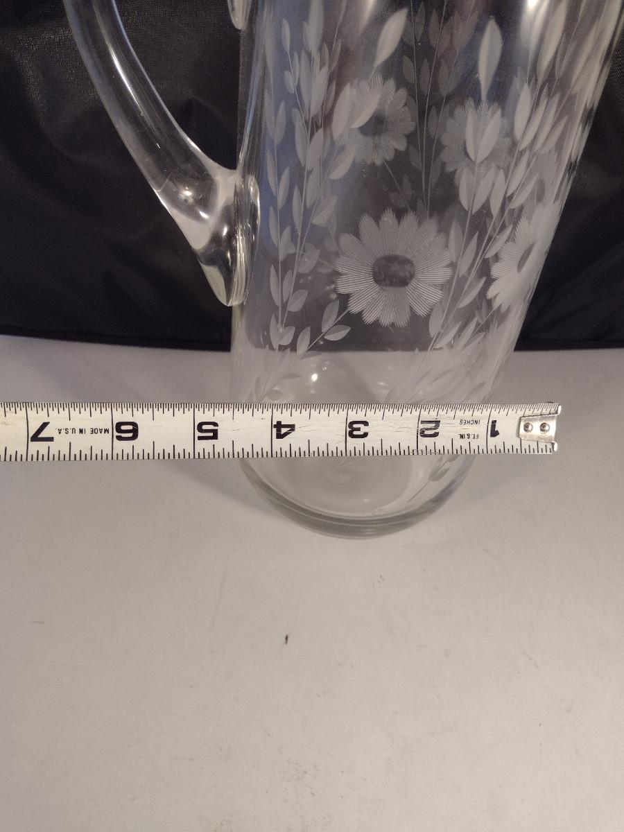 Crystal/Glass Pitcher with Etched Floral Design- Approx 11" Tall