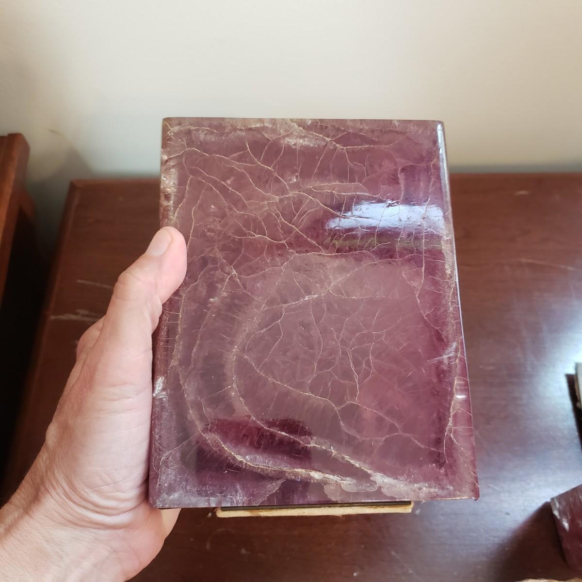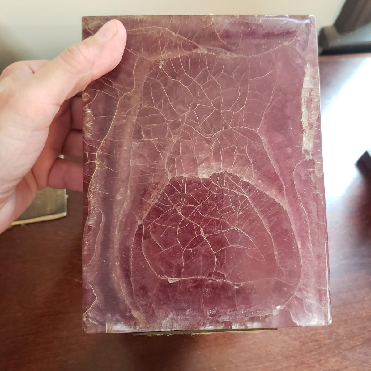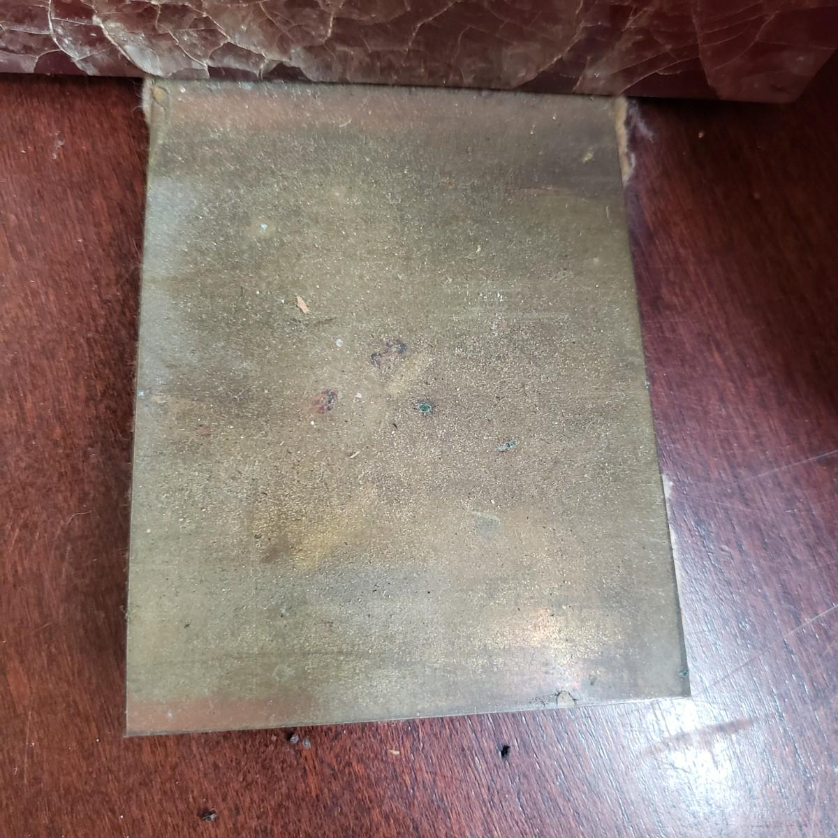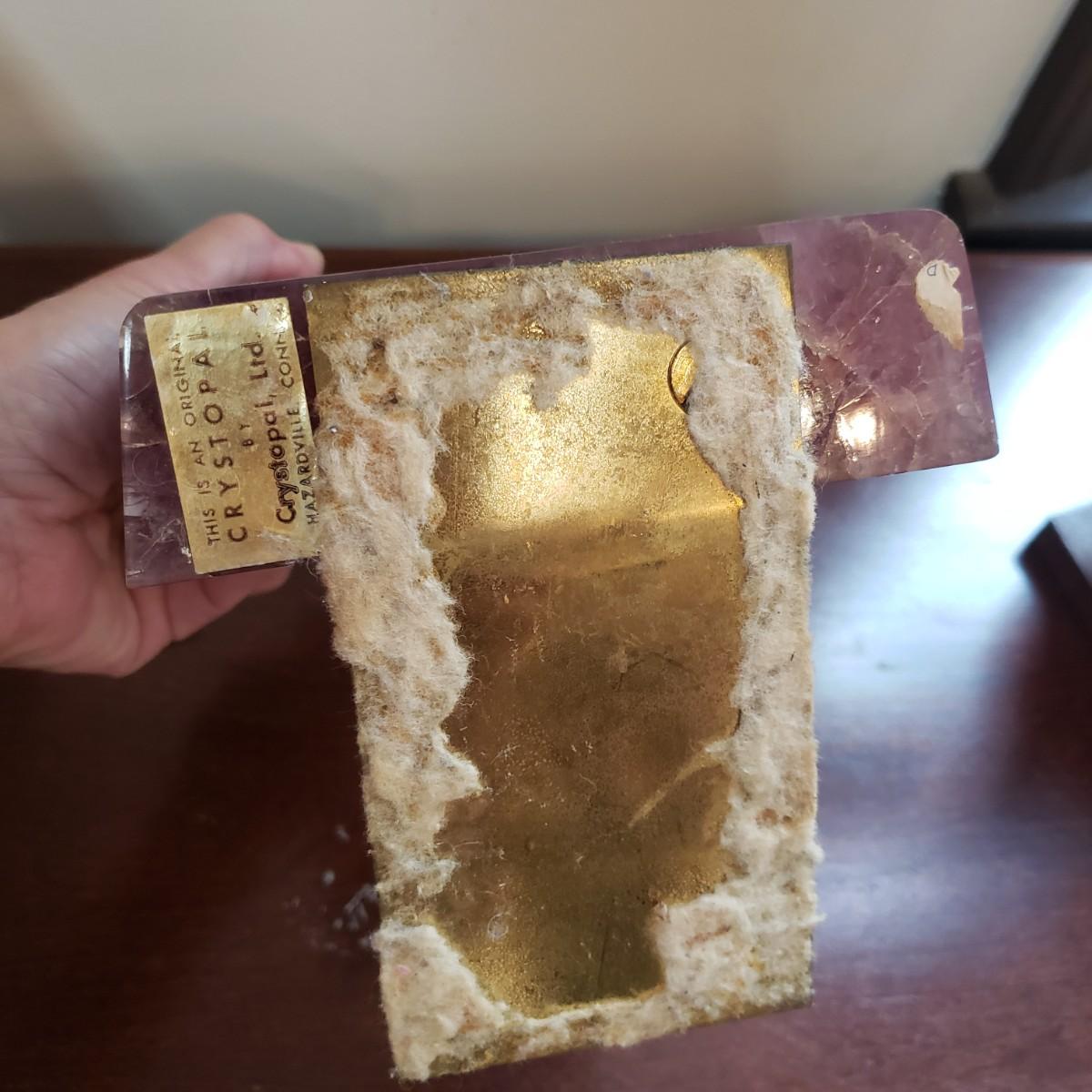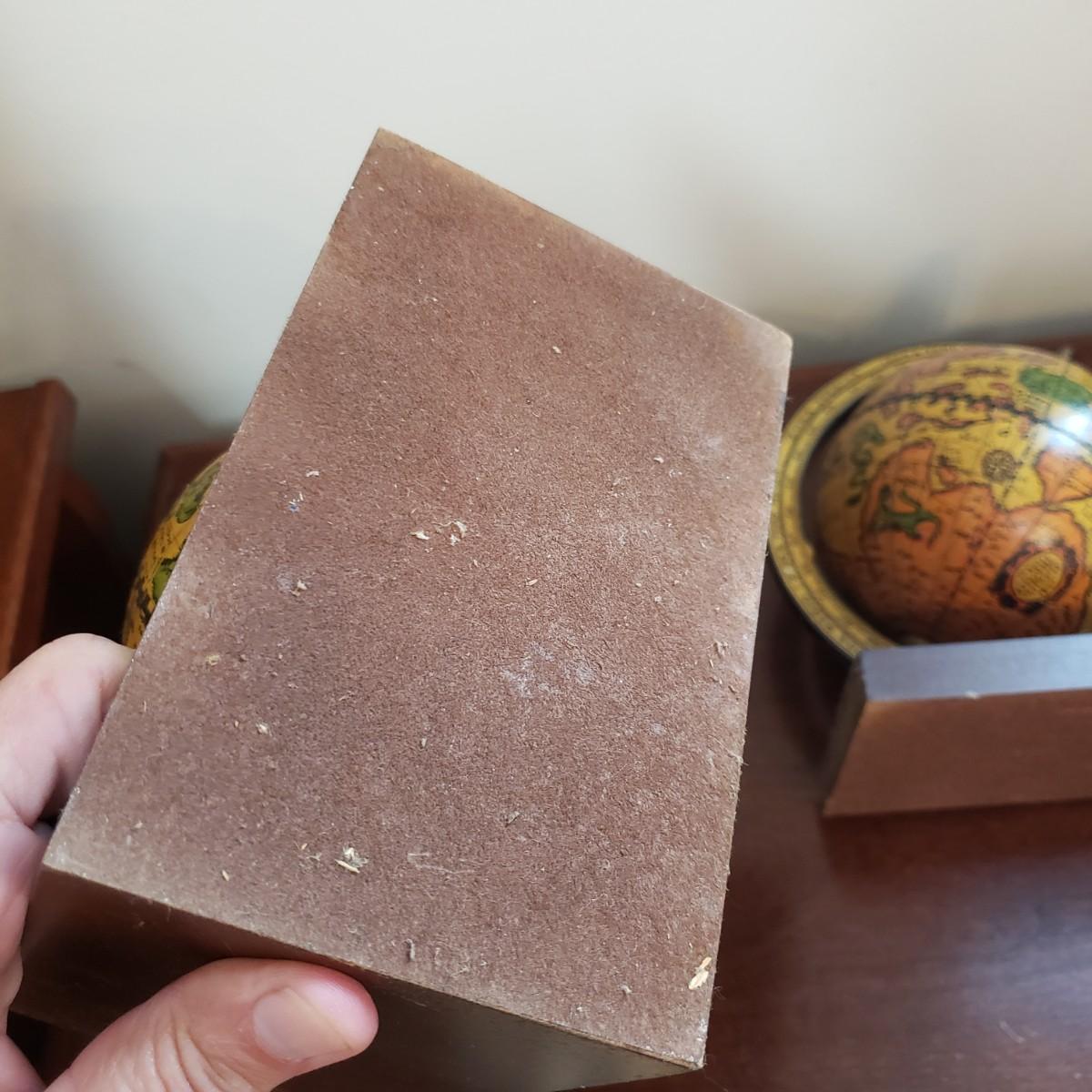 This lot features four sets of unique bookends. The Crystopal bookends (5" x 6" x 7"H) are a purple colored stone with brass stands. The underside is covered in felt on one, and the other side is coming off. The largest cut stone bookends with brownish colors measure 3" x 6" x 7"H. The smaller cut stone bookends have some vibrant coloring. The globe bookends are made in Italy and do rotate!