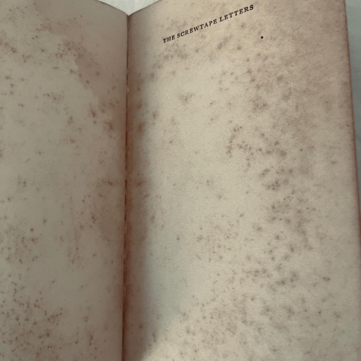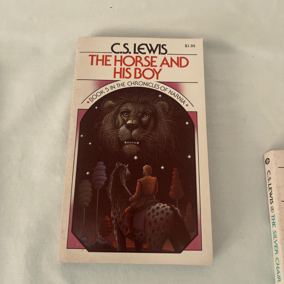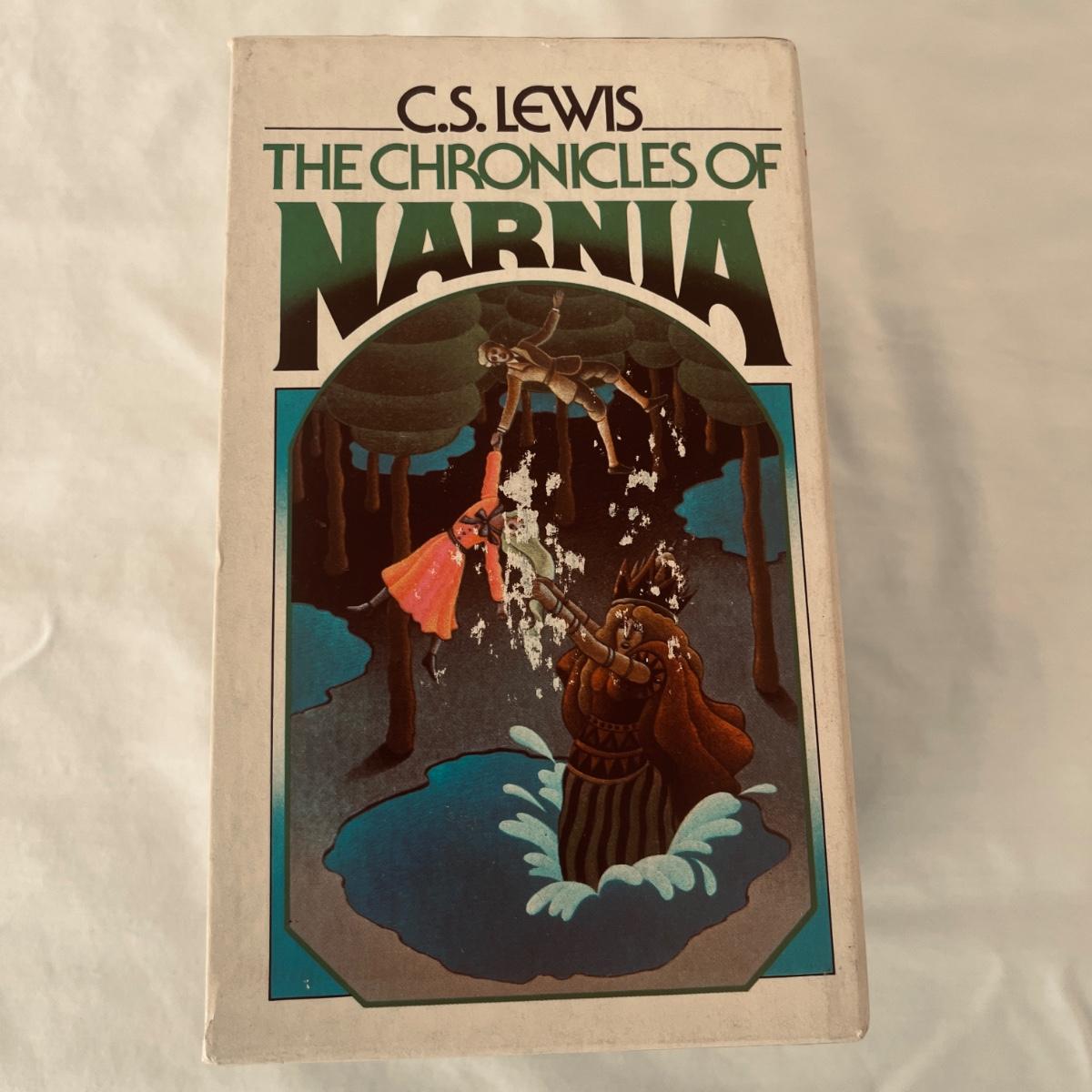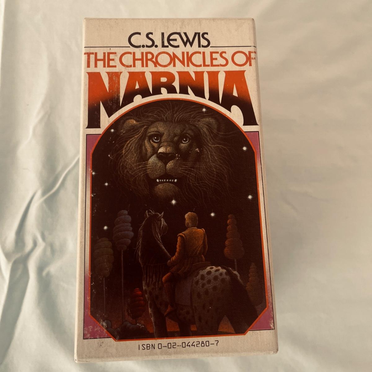 Lot contains C.S.Lewis The Chronicles of Narnia seven paperback book set and The Screwtape Letters also by C.S.Lewis that has age spots on it, see pictures.