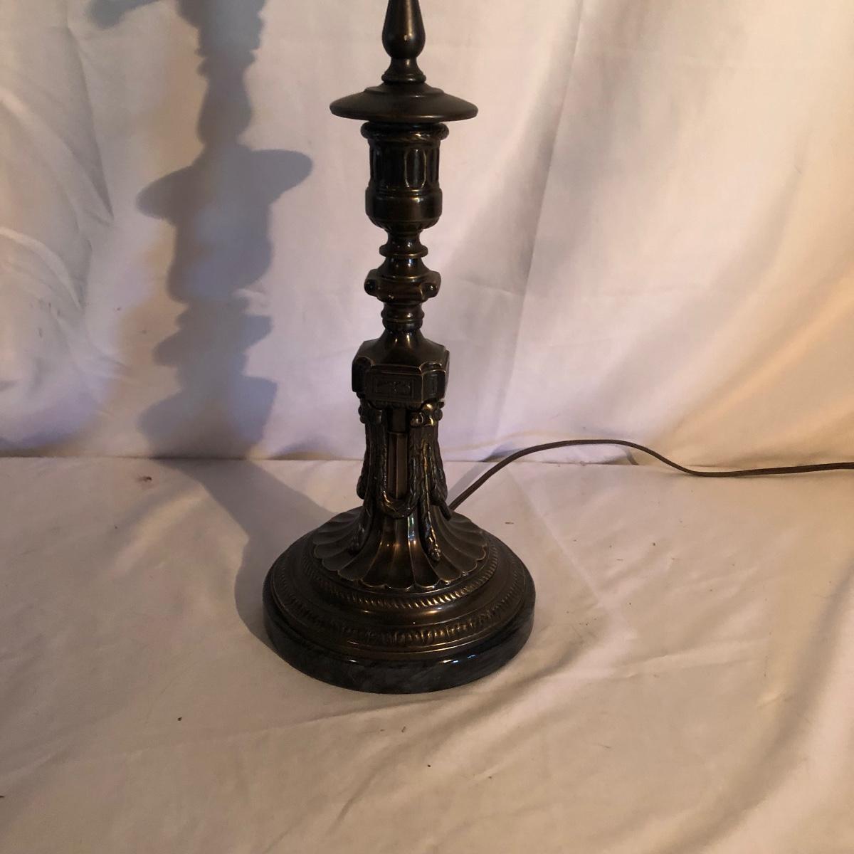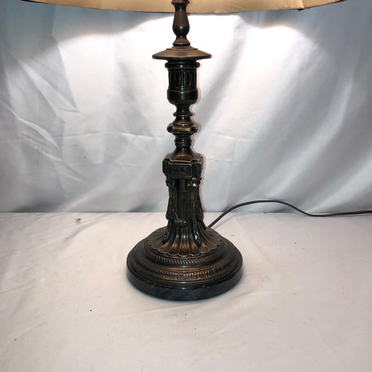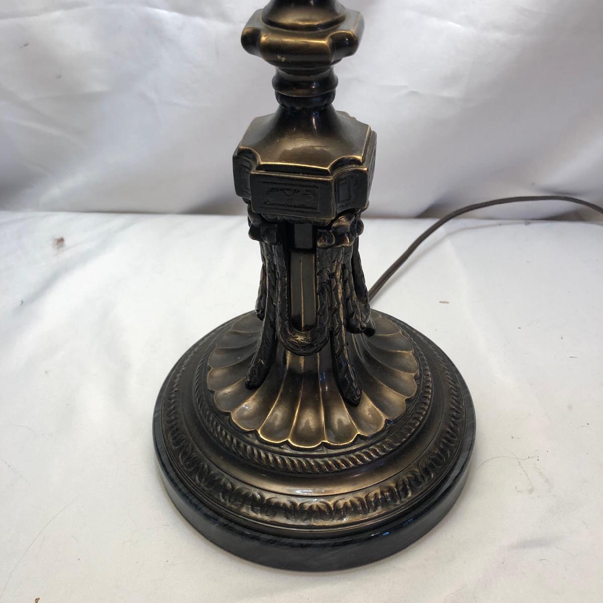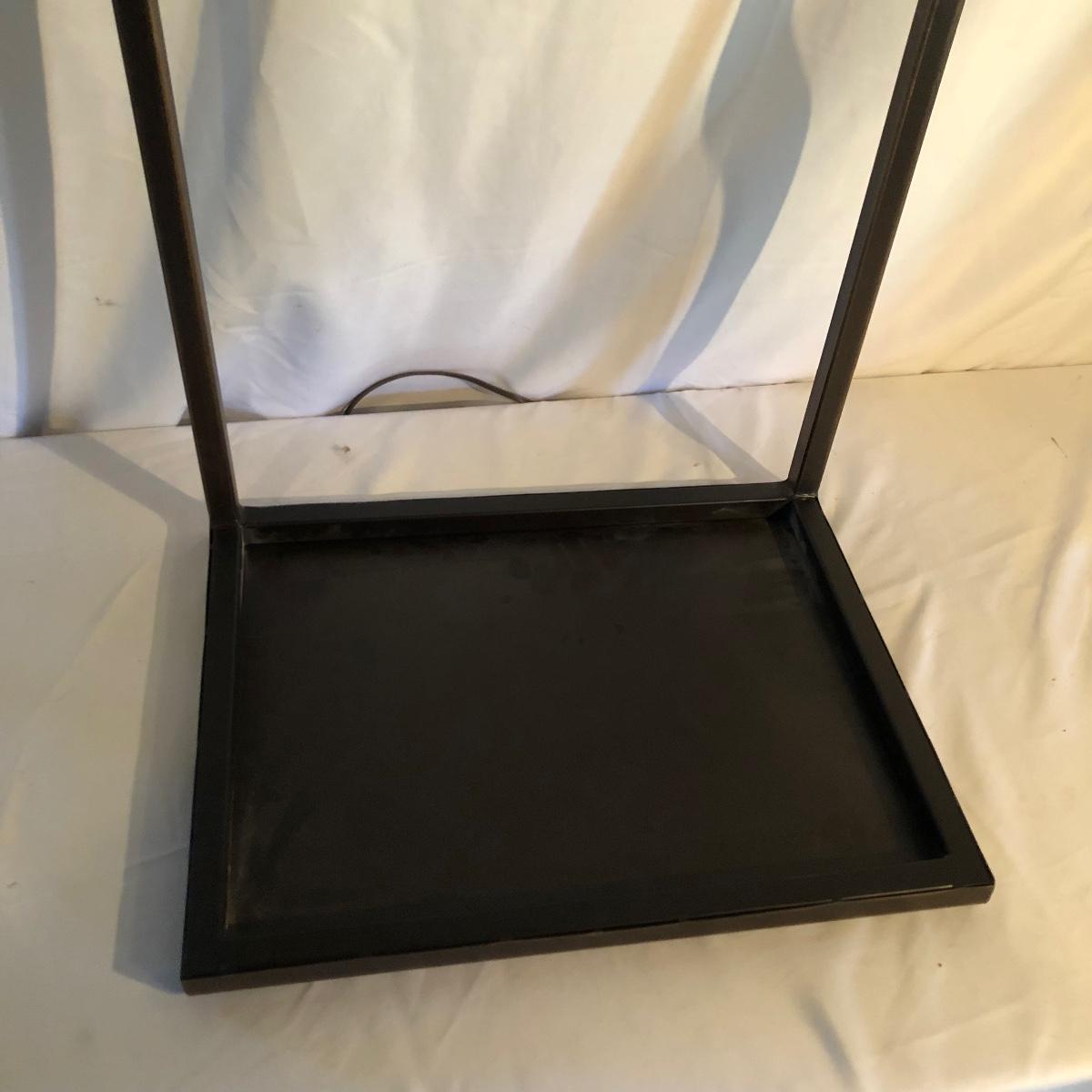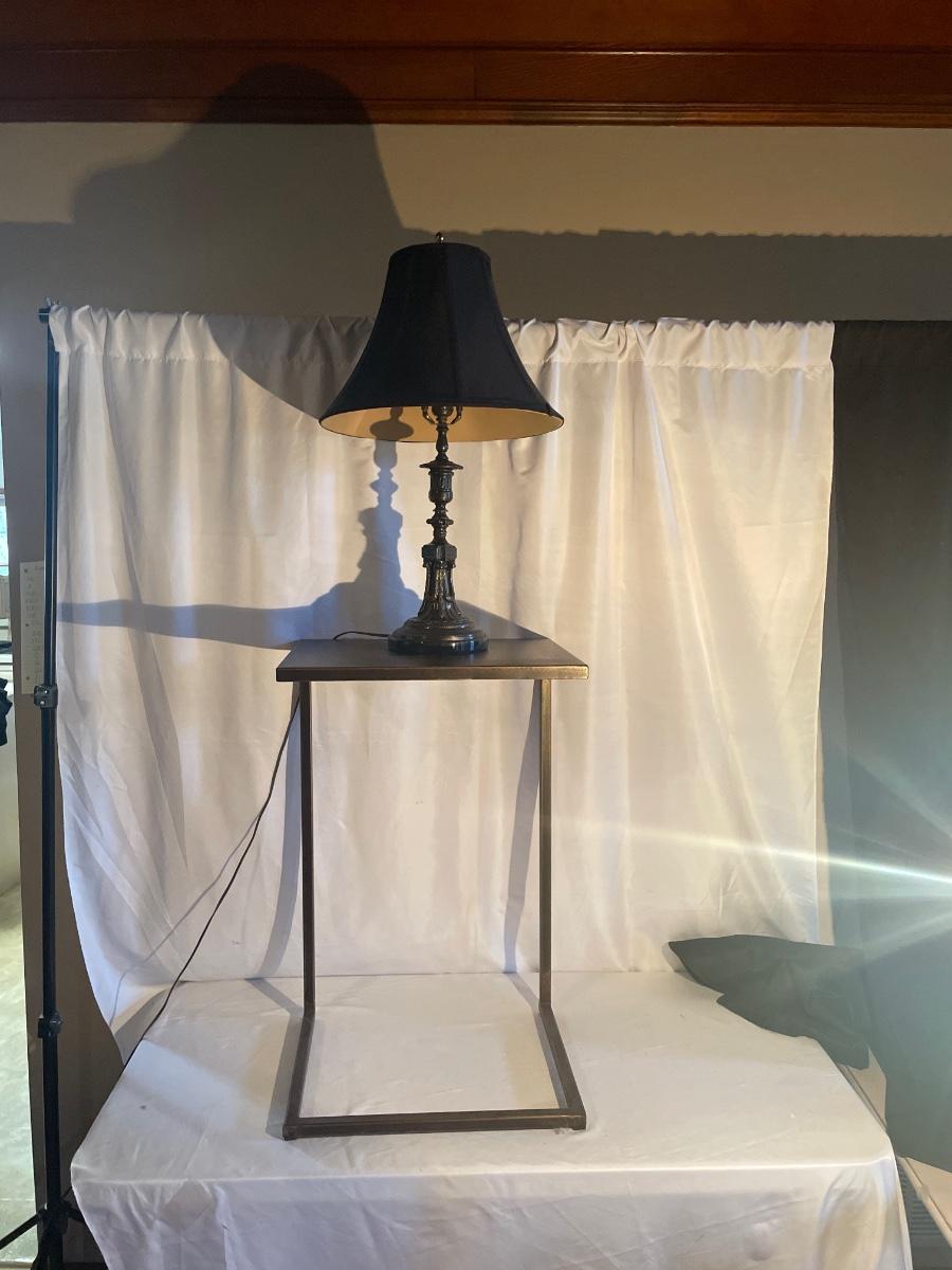 Table measures 14” x 18” x 28”. Lamp worked when tested.