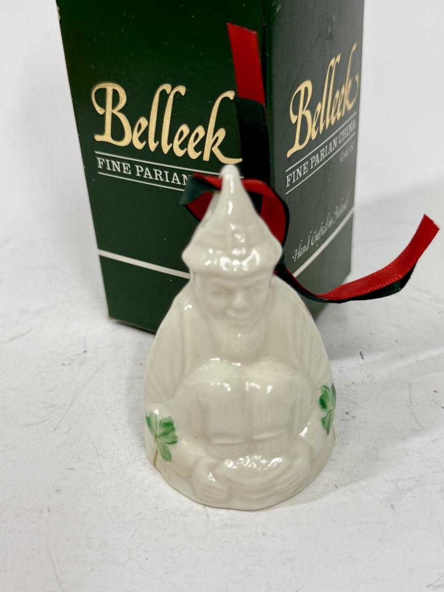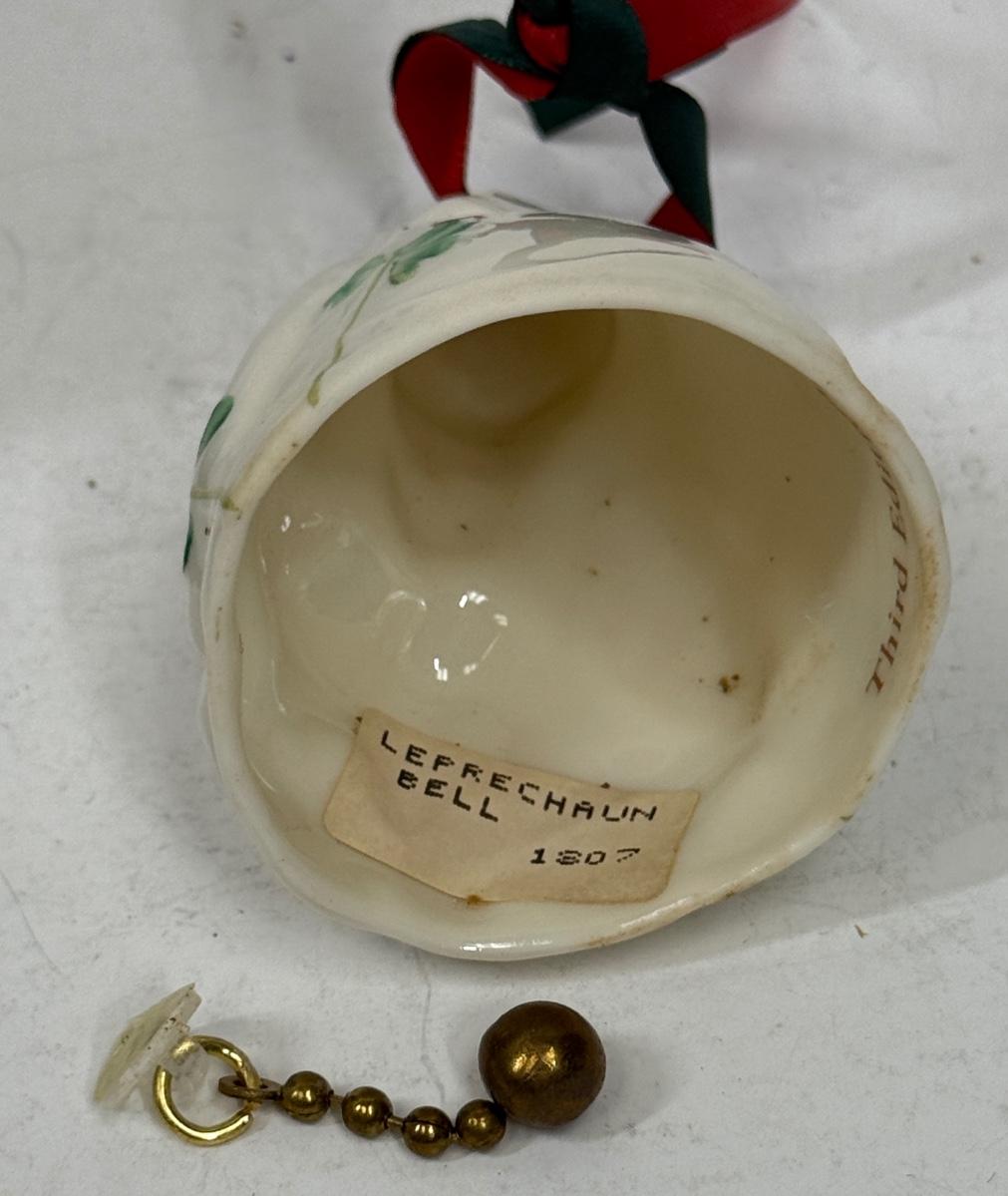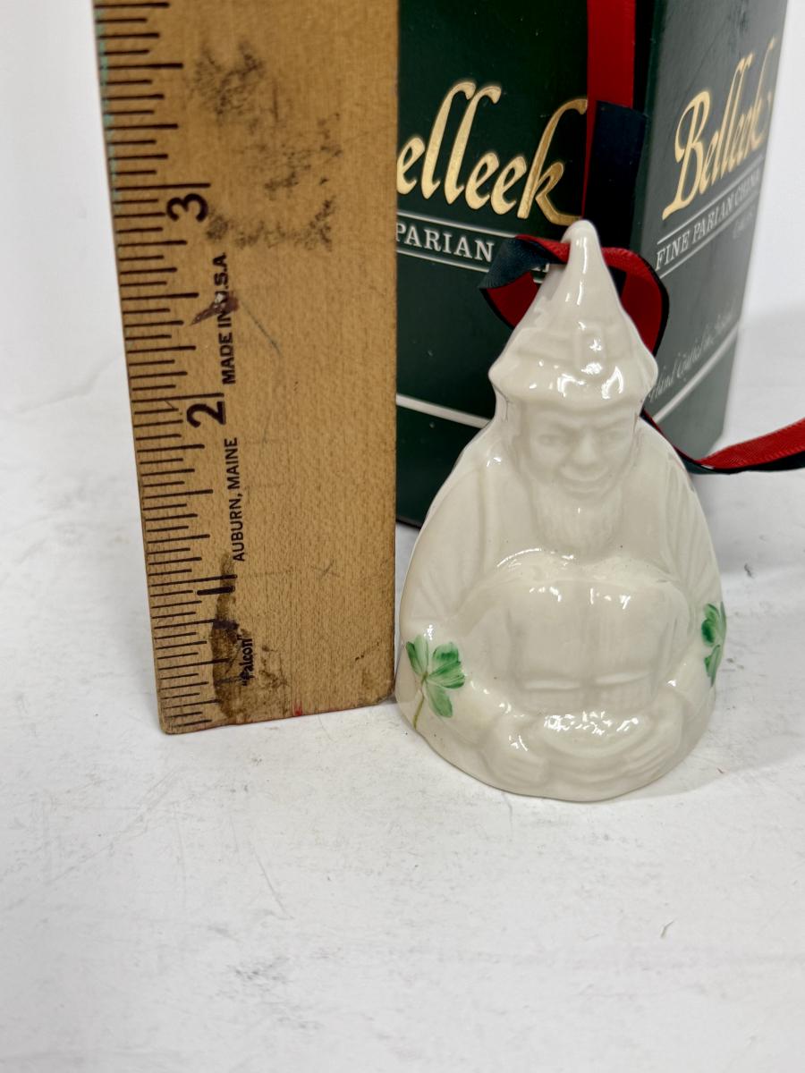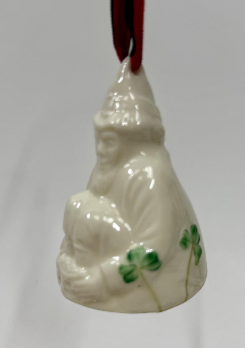 Porcelain Leprechaun with green shamrocks Christmas Ornament bell
