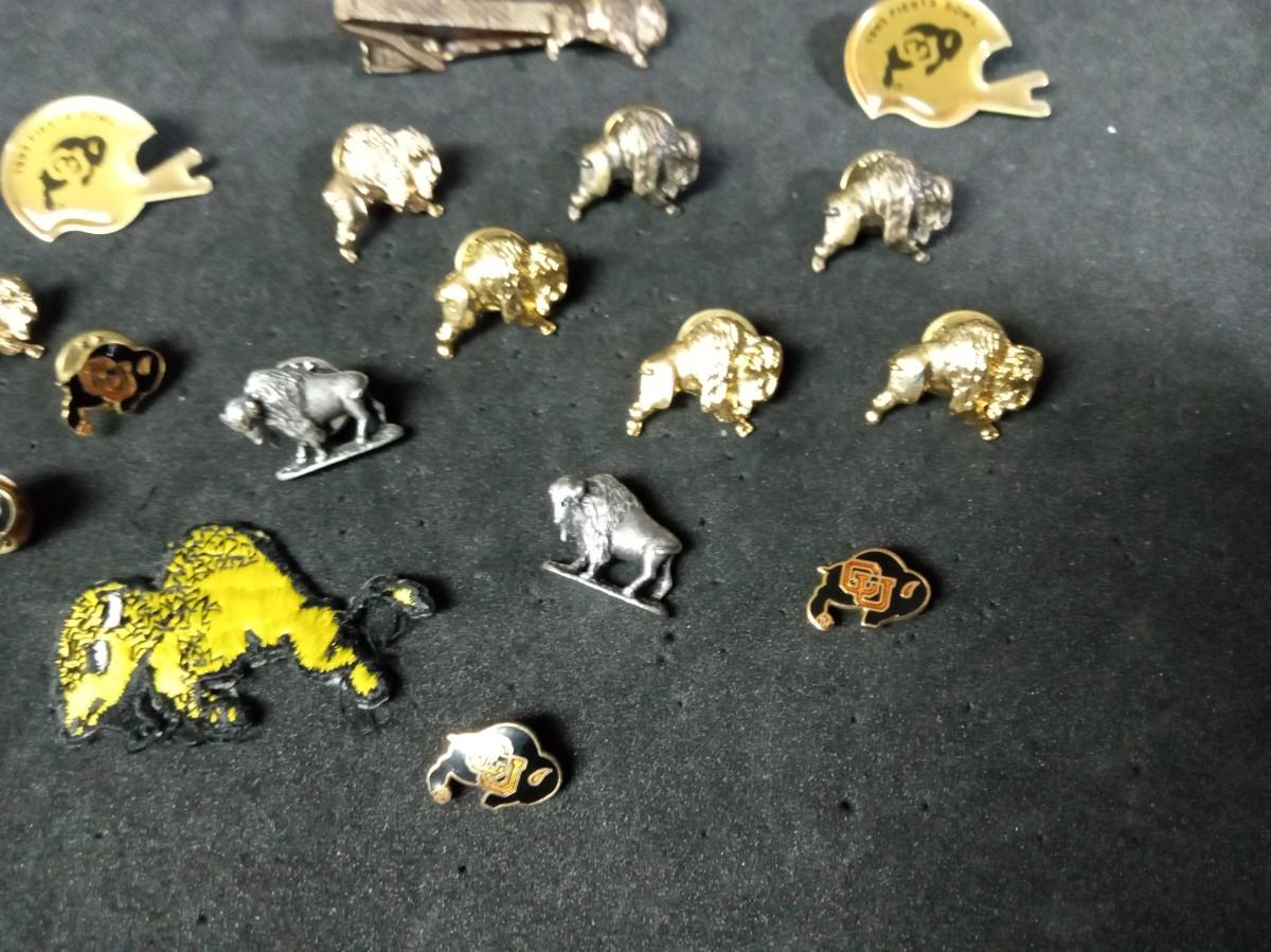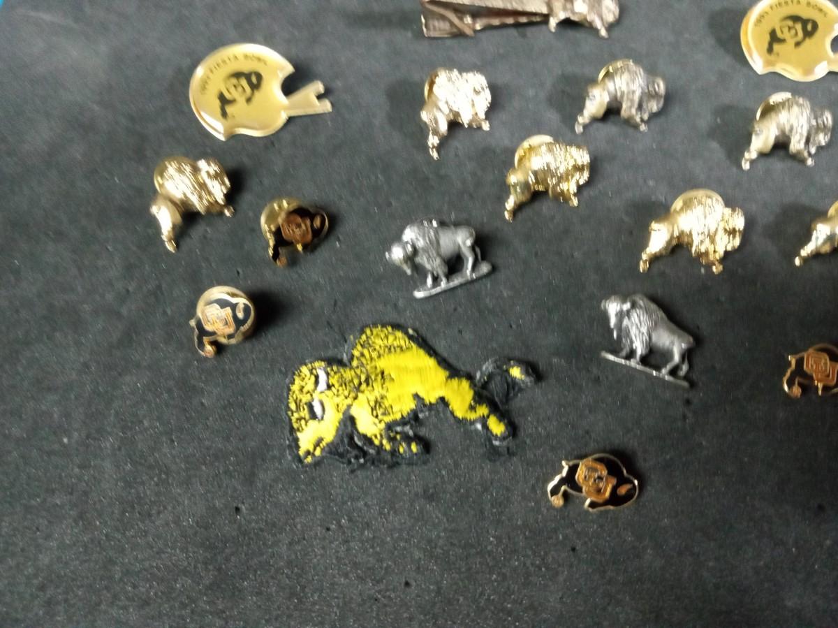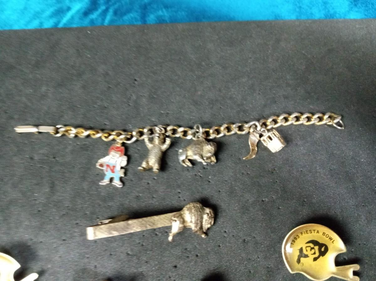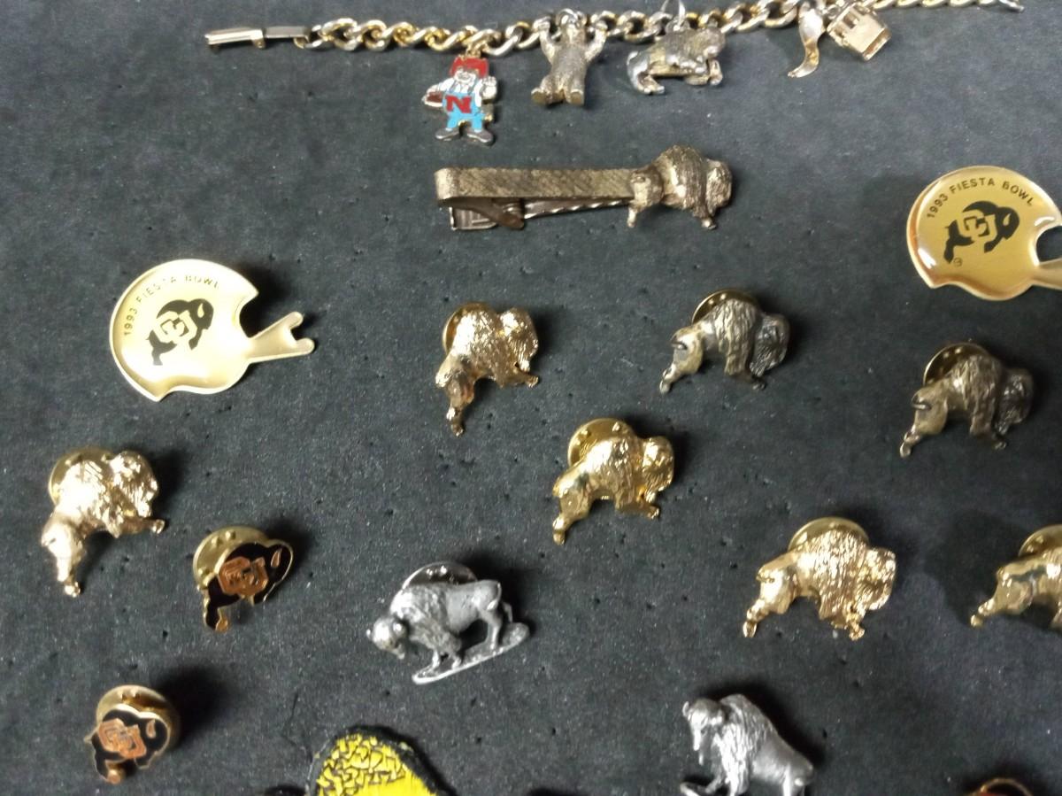 CU BUFFS PINS, TIE CLIP AND CHARM BRACELET