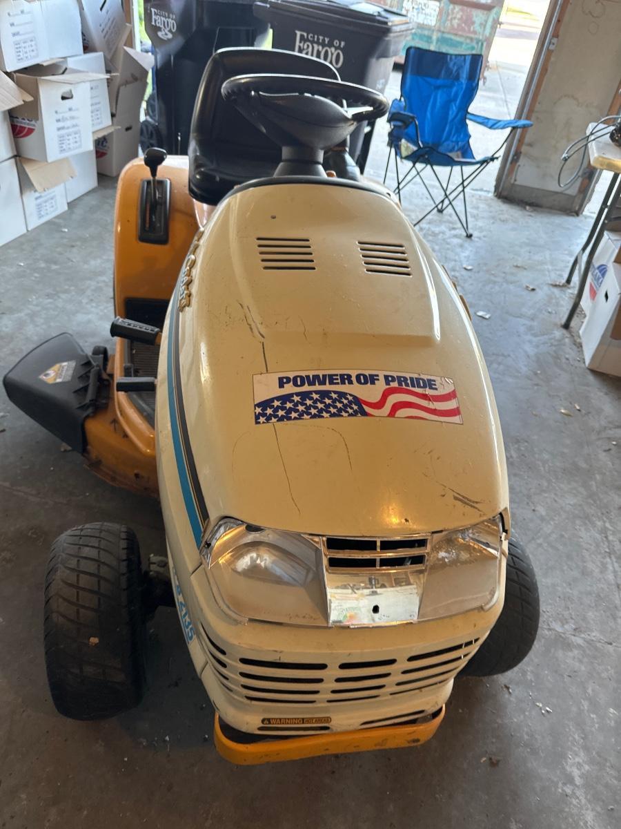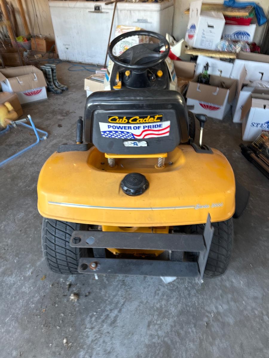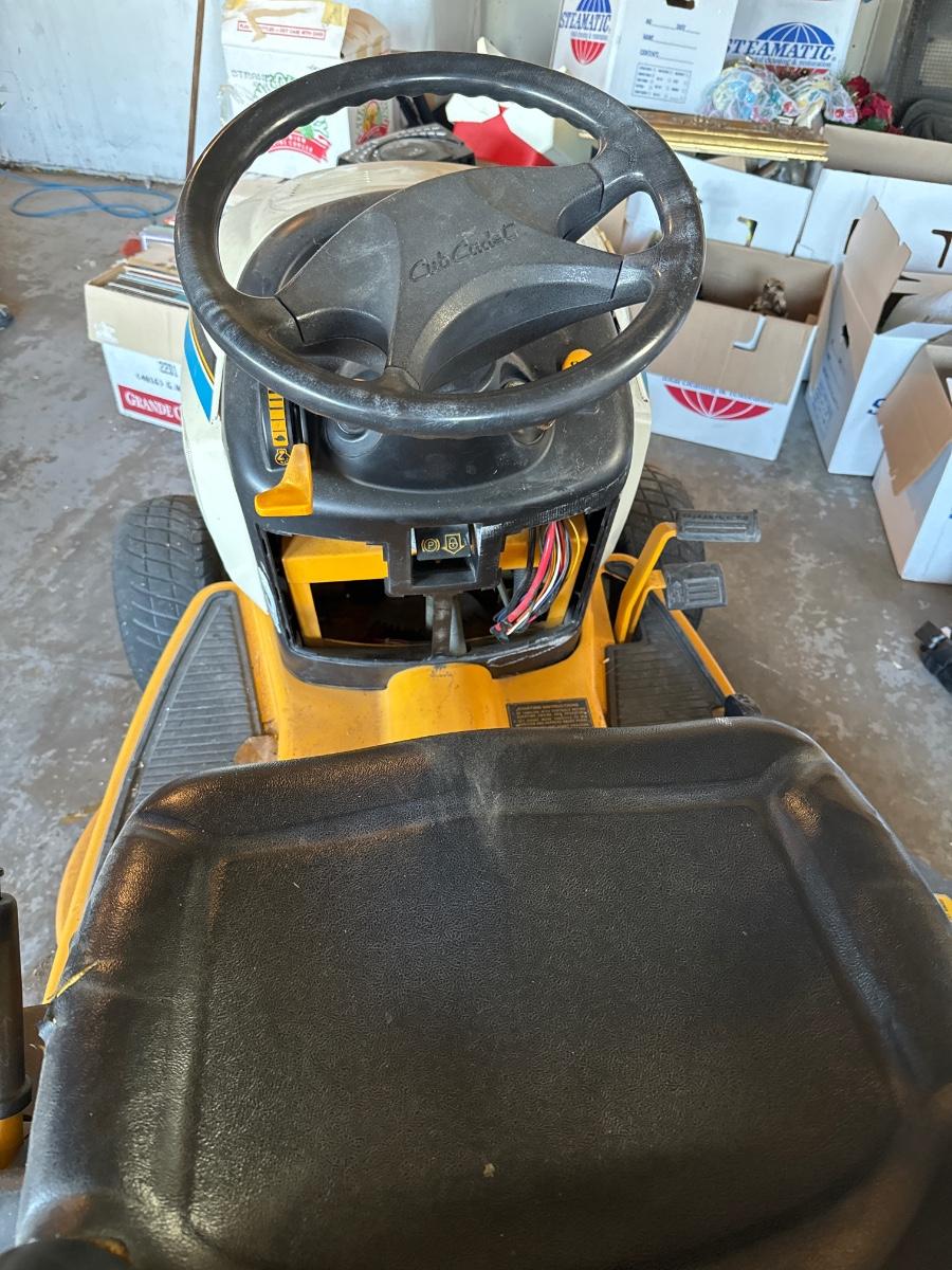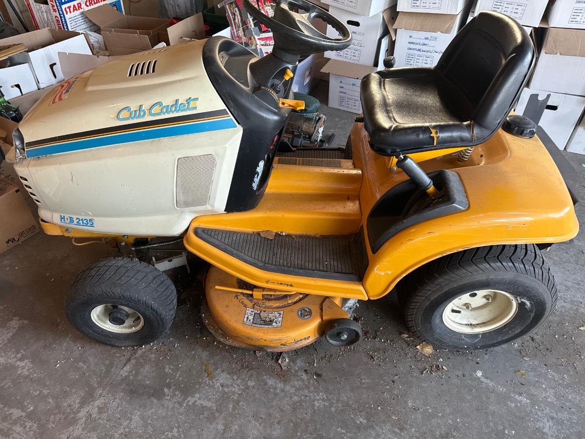 Cub cadet HDS 2135 riding lawnmower with bagger. Tested, started it and works fine. Will need a positive terminal clamp to be secured to the battery.