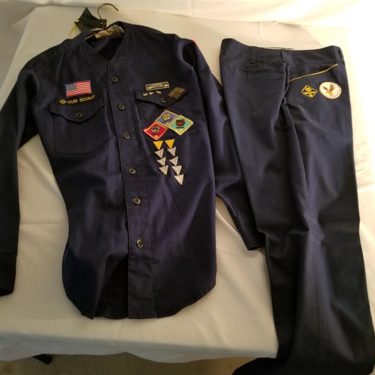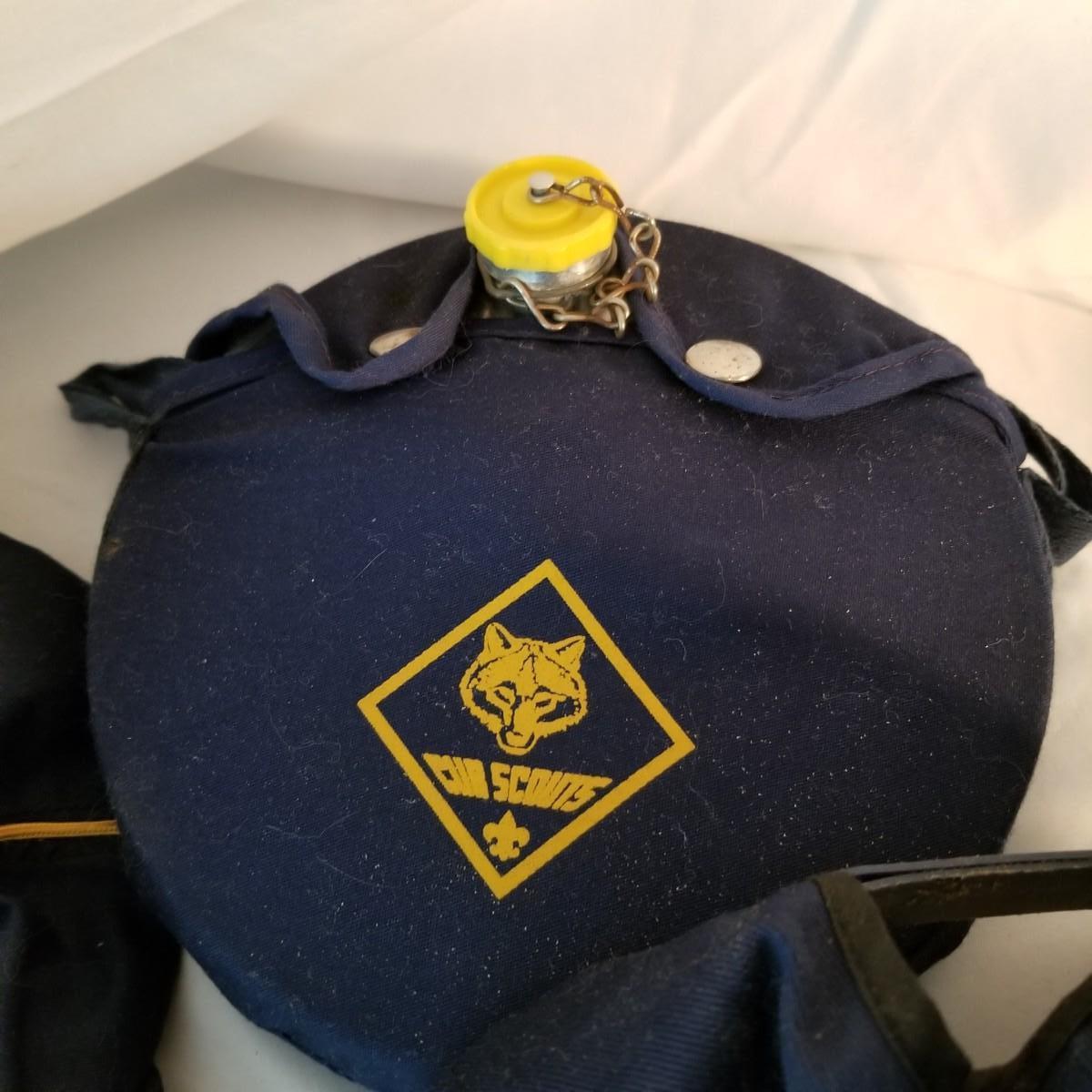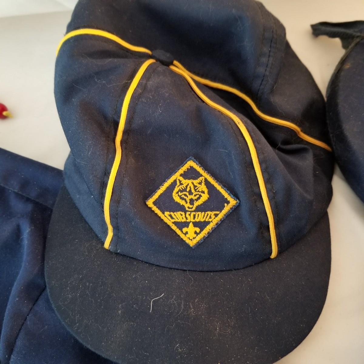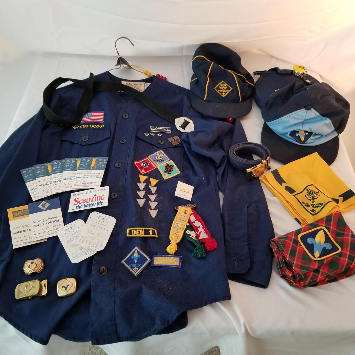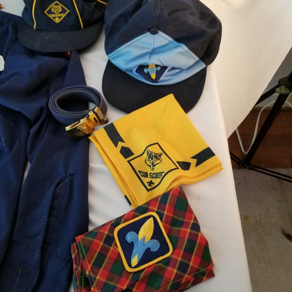 Cub Scout and Webelos items. Shirt, caps, belts, kerchiefs and slides, badges, books, cards and awards of merit.  Also includes a canteen. See photos for detail. Shipping available.