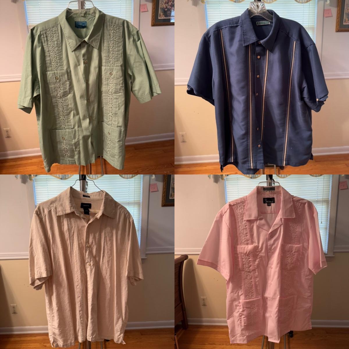This lot includes ten men’s short sleeve shirts, all in size medium and extra-large. You’ll find the following brands: Cubavera, Claiborne, John Blair, Saddlebred, Jos. A. Bank, and more. Shipping available.