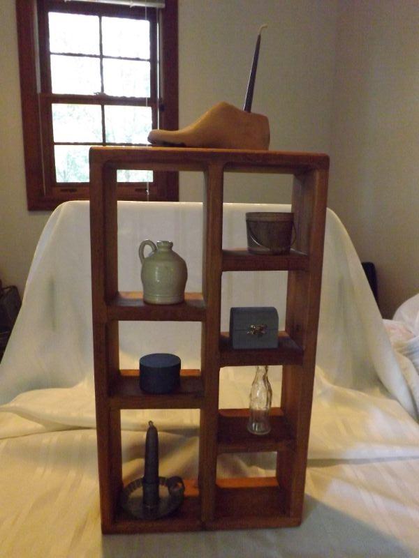 19" Tall Shelf with small collectibles including antique child's shoe form and mini Coke bottle. **Please read Terms and Conditions before placing a bid. Pick up is Sunday, September 15, 2019 from 11am to 4pm and Tuesday, September 17 from 4pm-7pm in Sicklerville. All sales are final. All sales are as is, where is. Please review all photos. Any props included in photos are not included in listing. All measurements are approximate.
