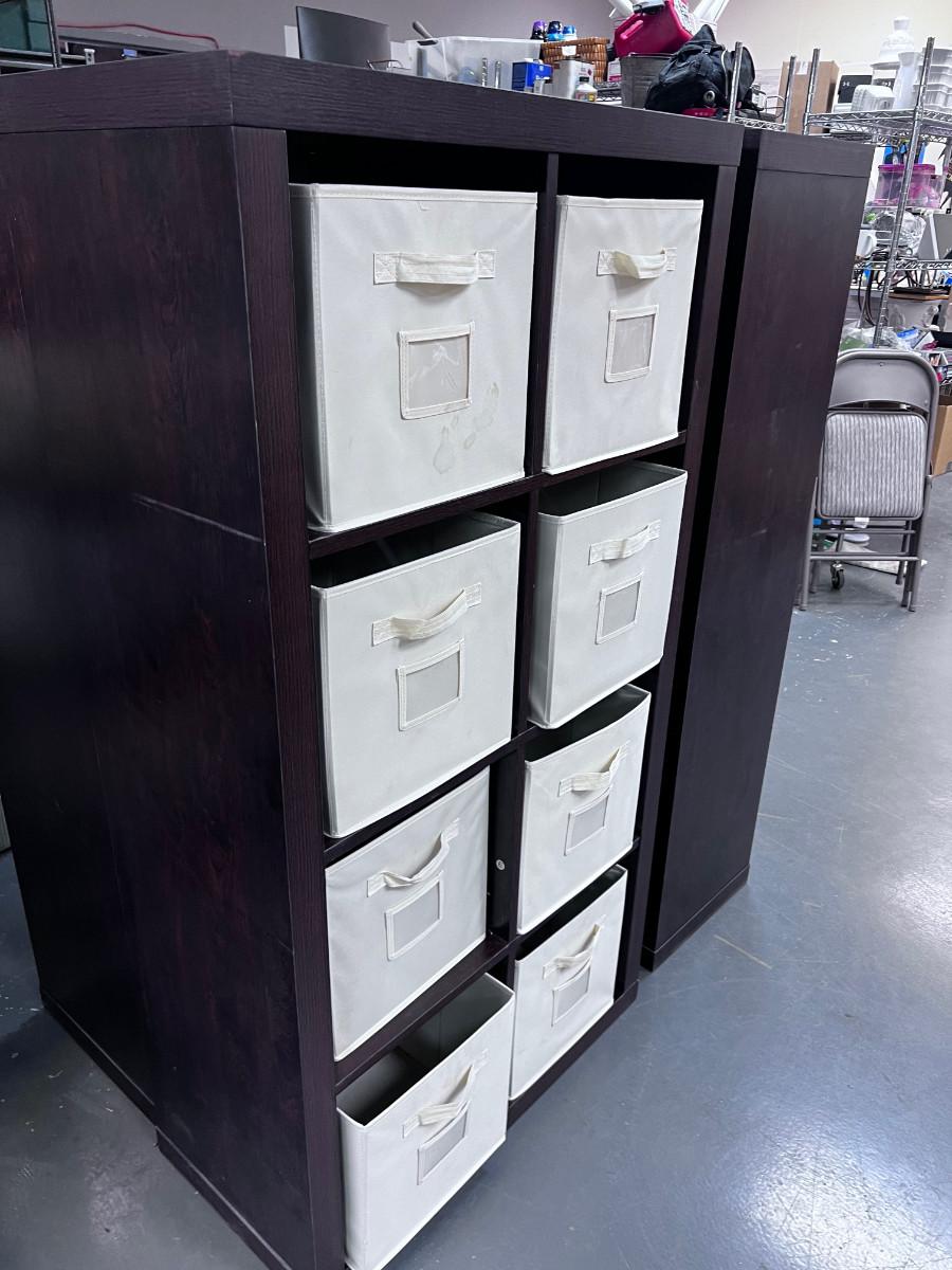 Good Condition Comes with Cloth Bins USED Measures 16 X 31 X 59