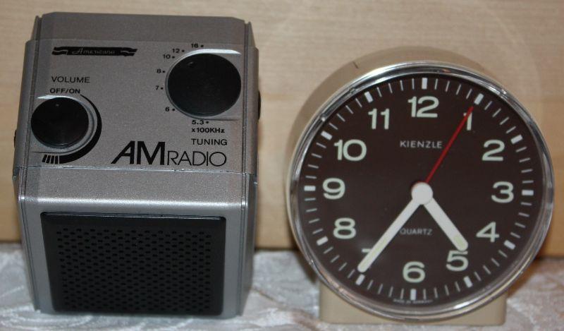 Cube AM radio; Travel clock with alarm