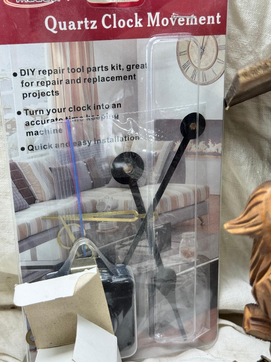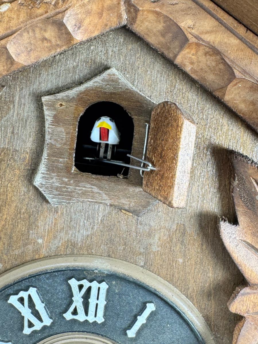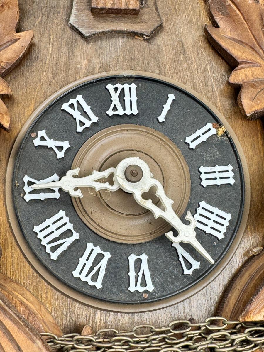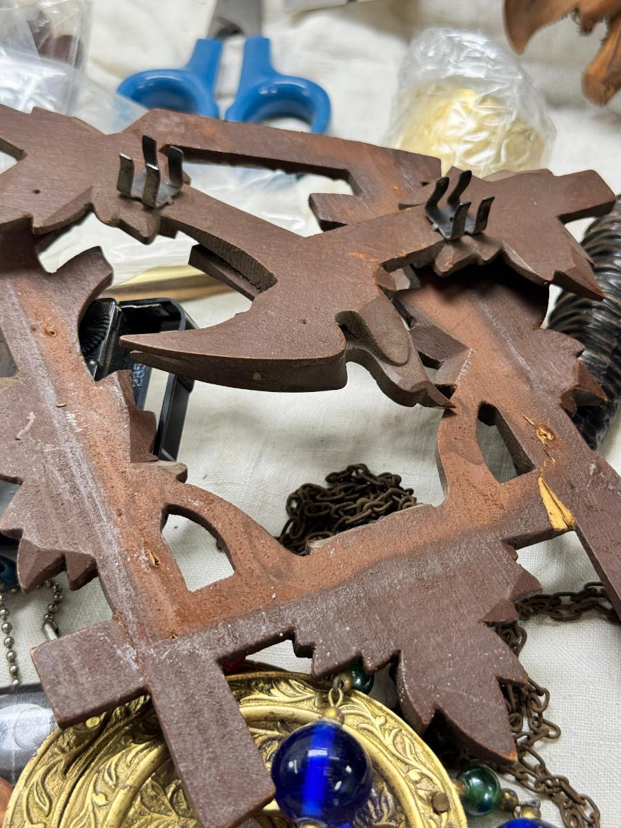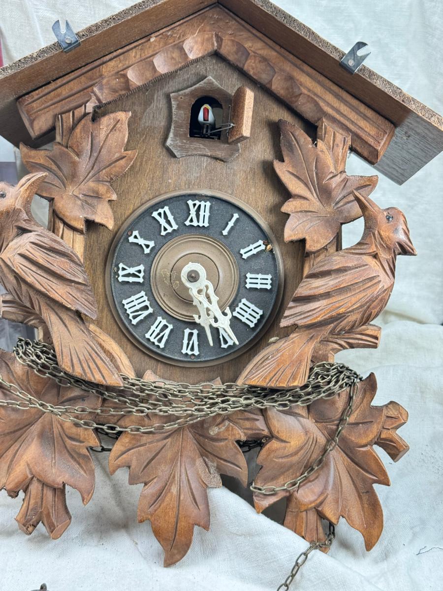 Mixed lot of clock parts for creation or repair. Cuckoo clock not complete, not working.