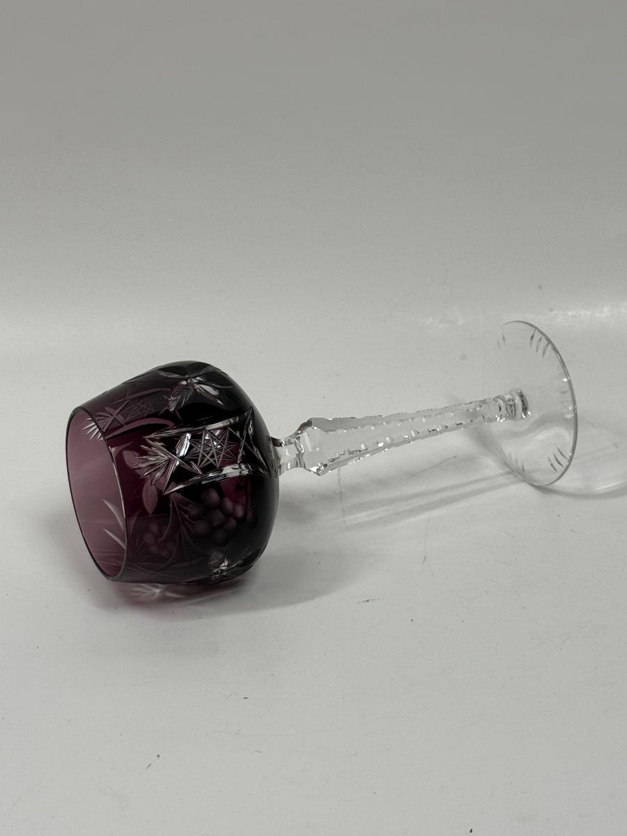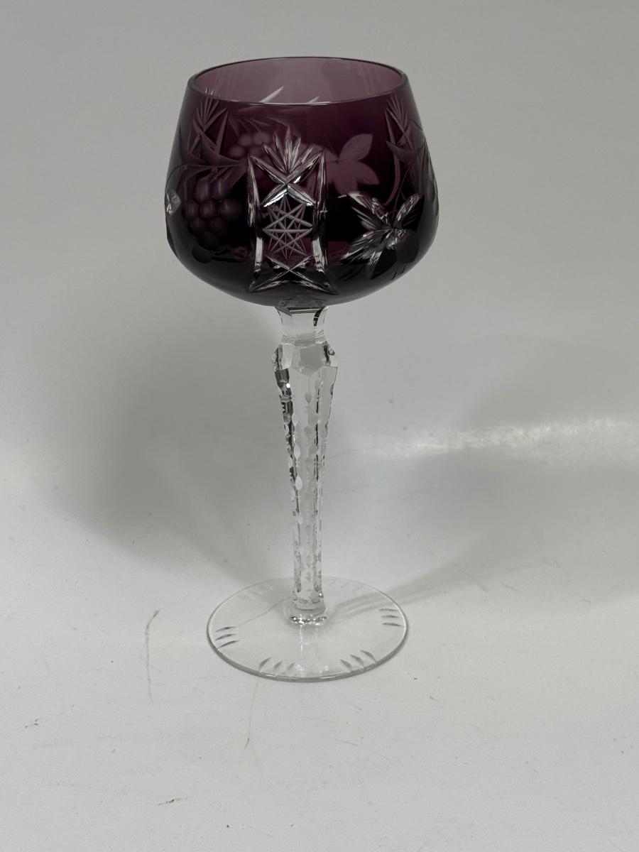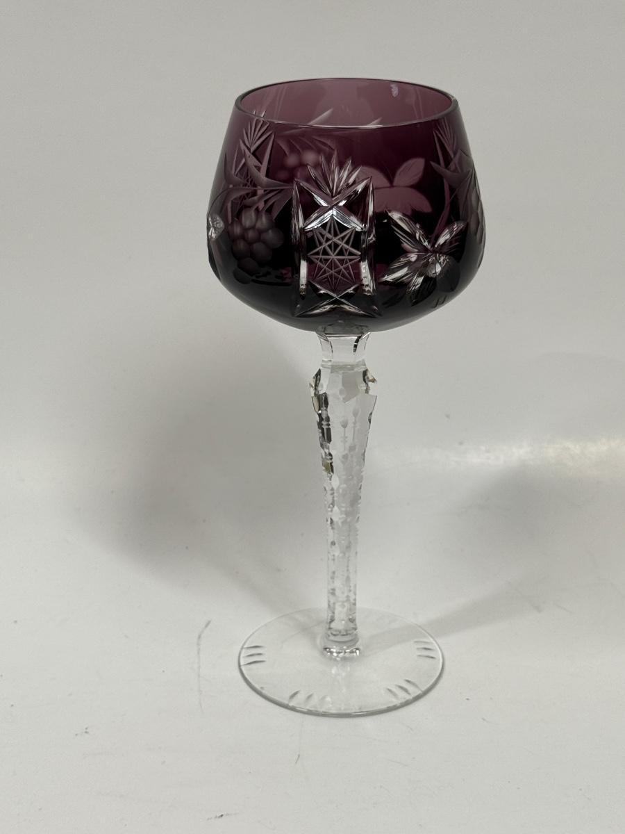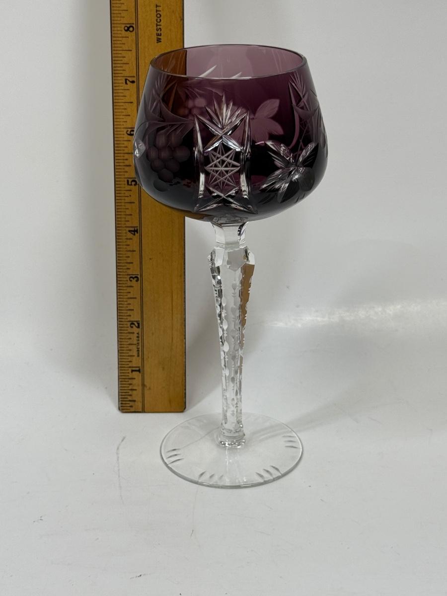Lausitzer Cut Glass Wine Stem Purple Amethyst Grapes Crisscross 7 5/8" High