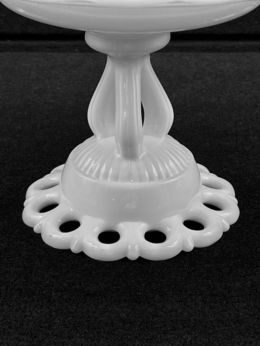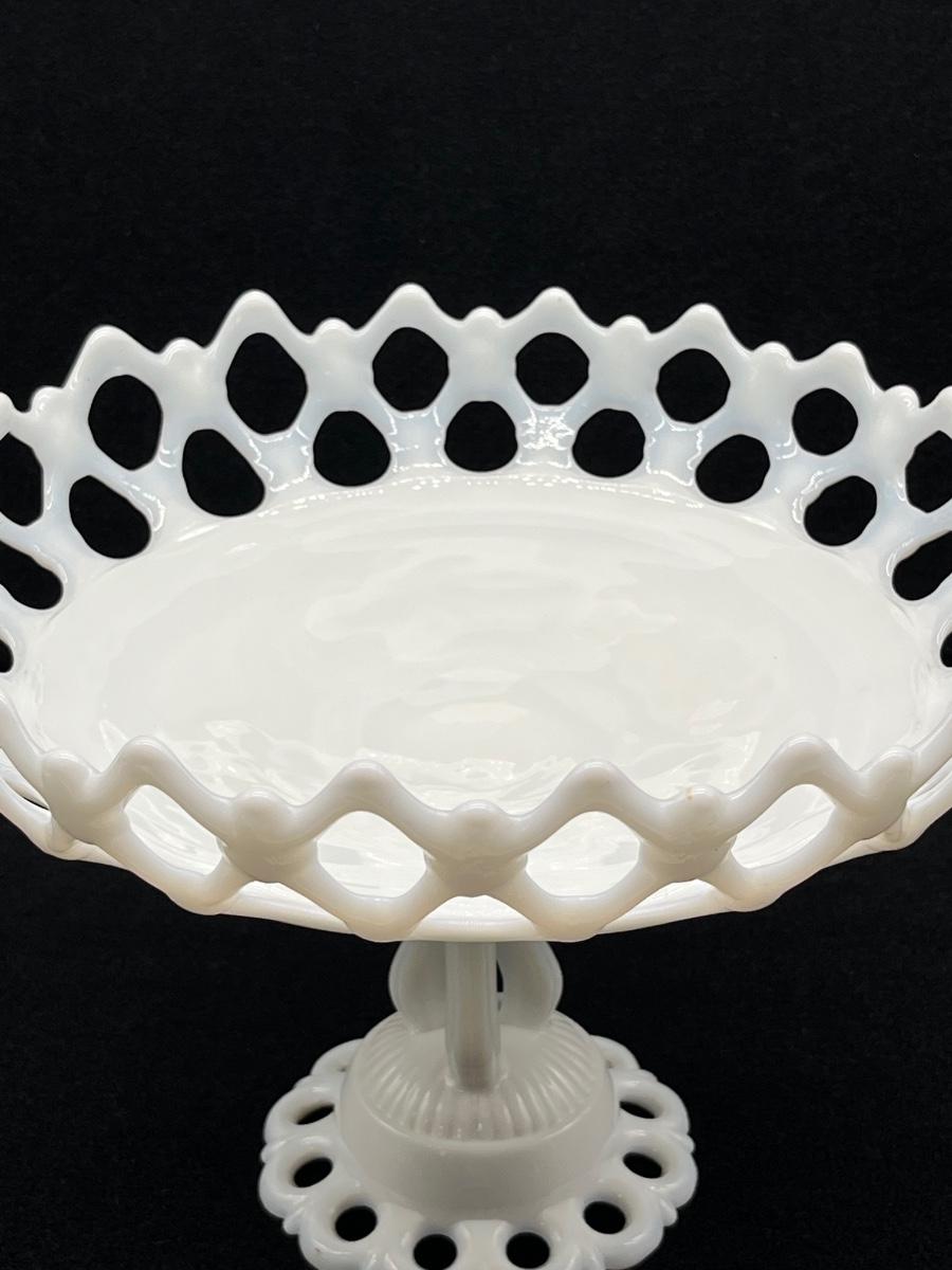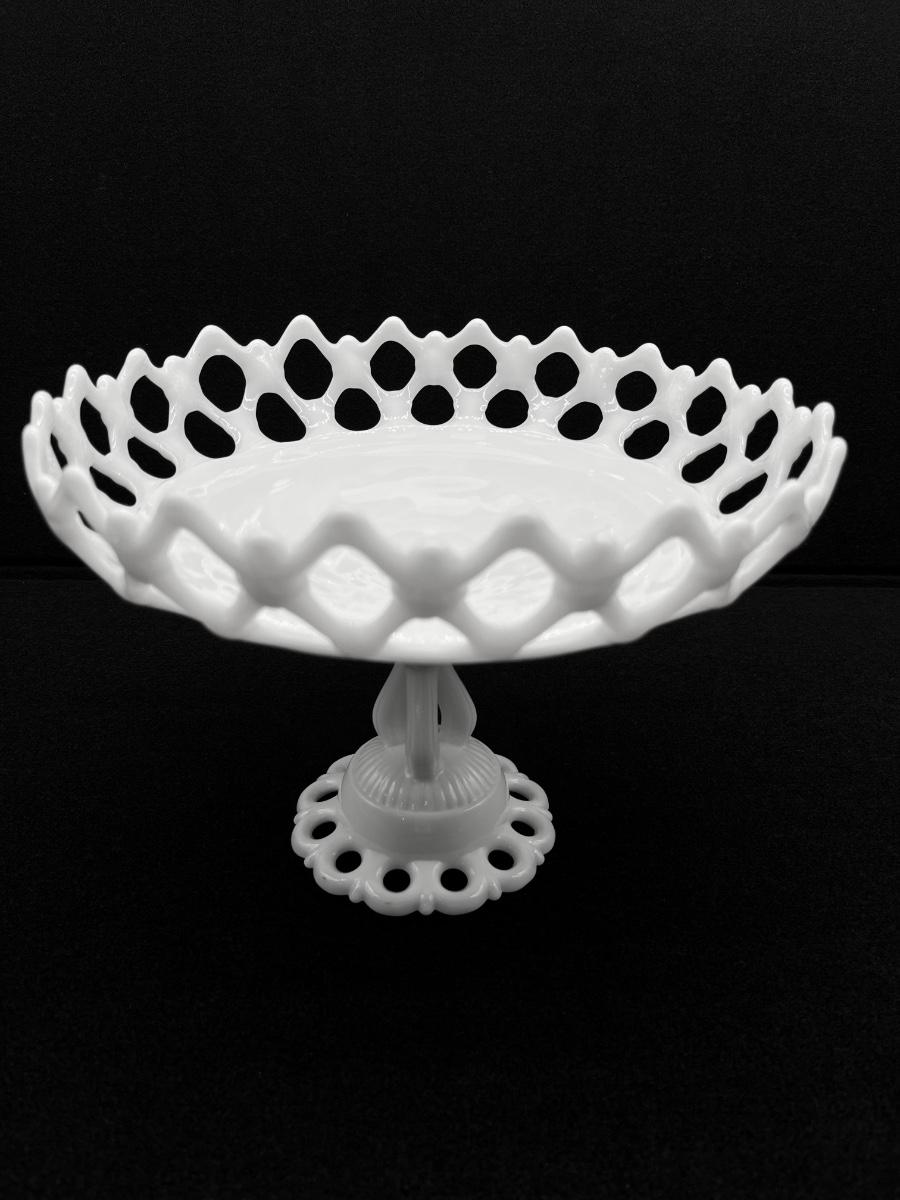 White Milk Glass ~ Lace Pedestal ~ Compote ~ Cake Plate Fruit Bowl