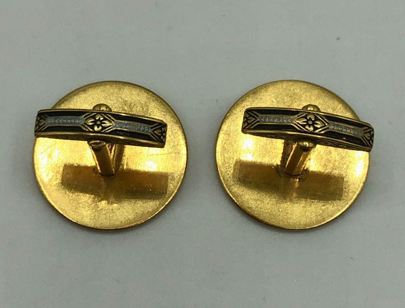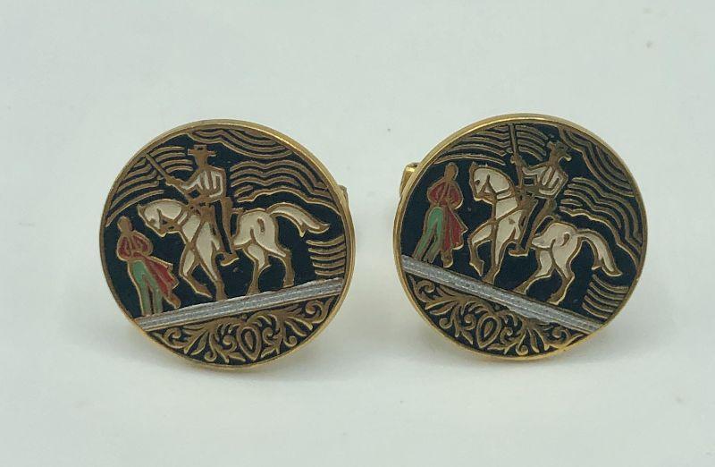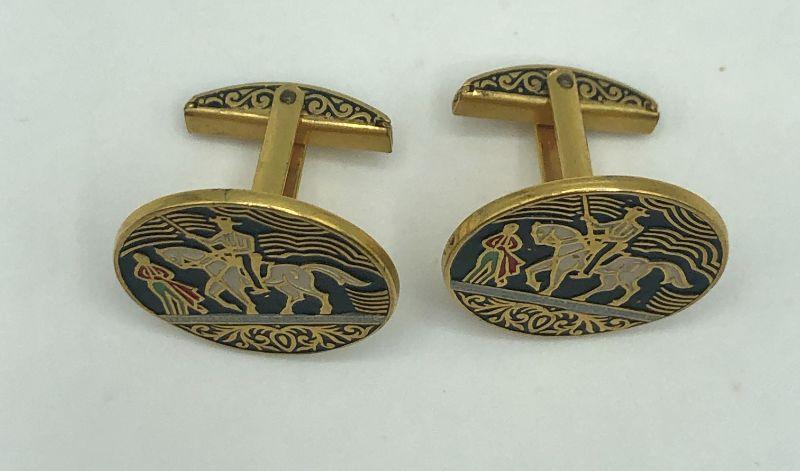 Gold-tone cufflinks with a bullfighting themed cloisonné image.