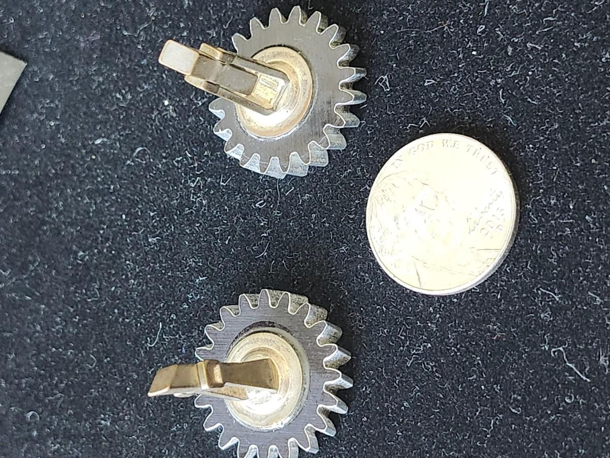 The wheels are part of the automatic winding mechanism in vintage Longines watch movements.