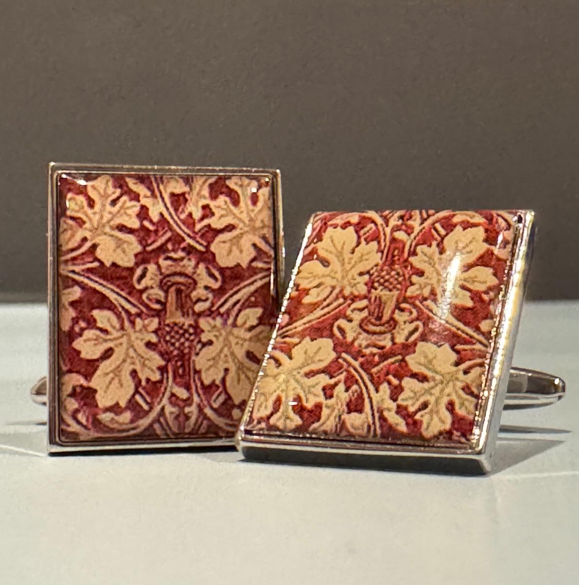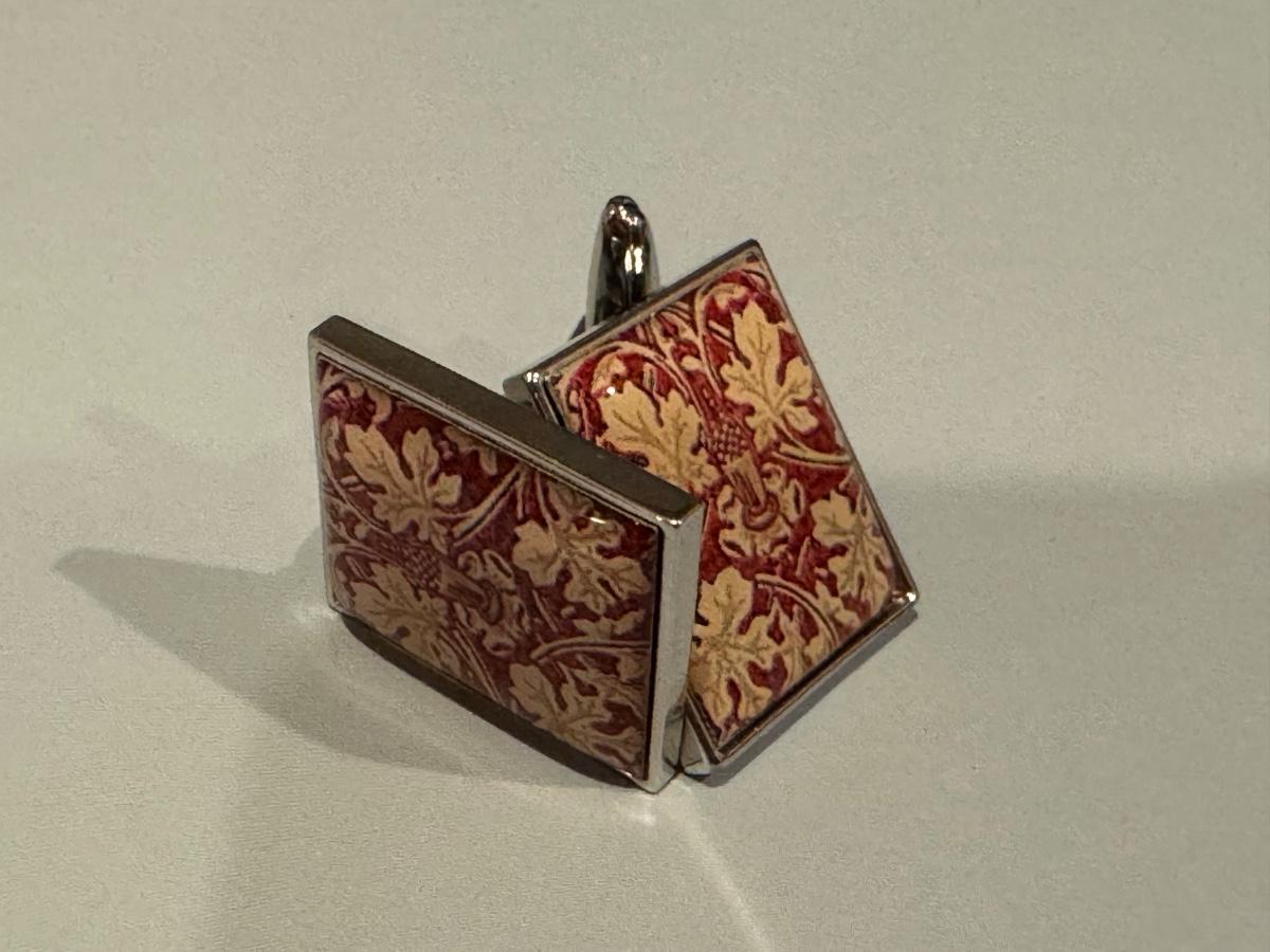 Cufflinks - Maple Leafs on Crimson Background. Bullet Backs.