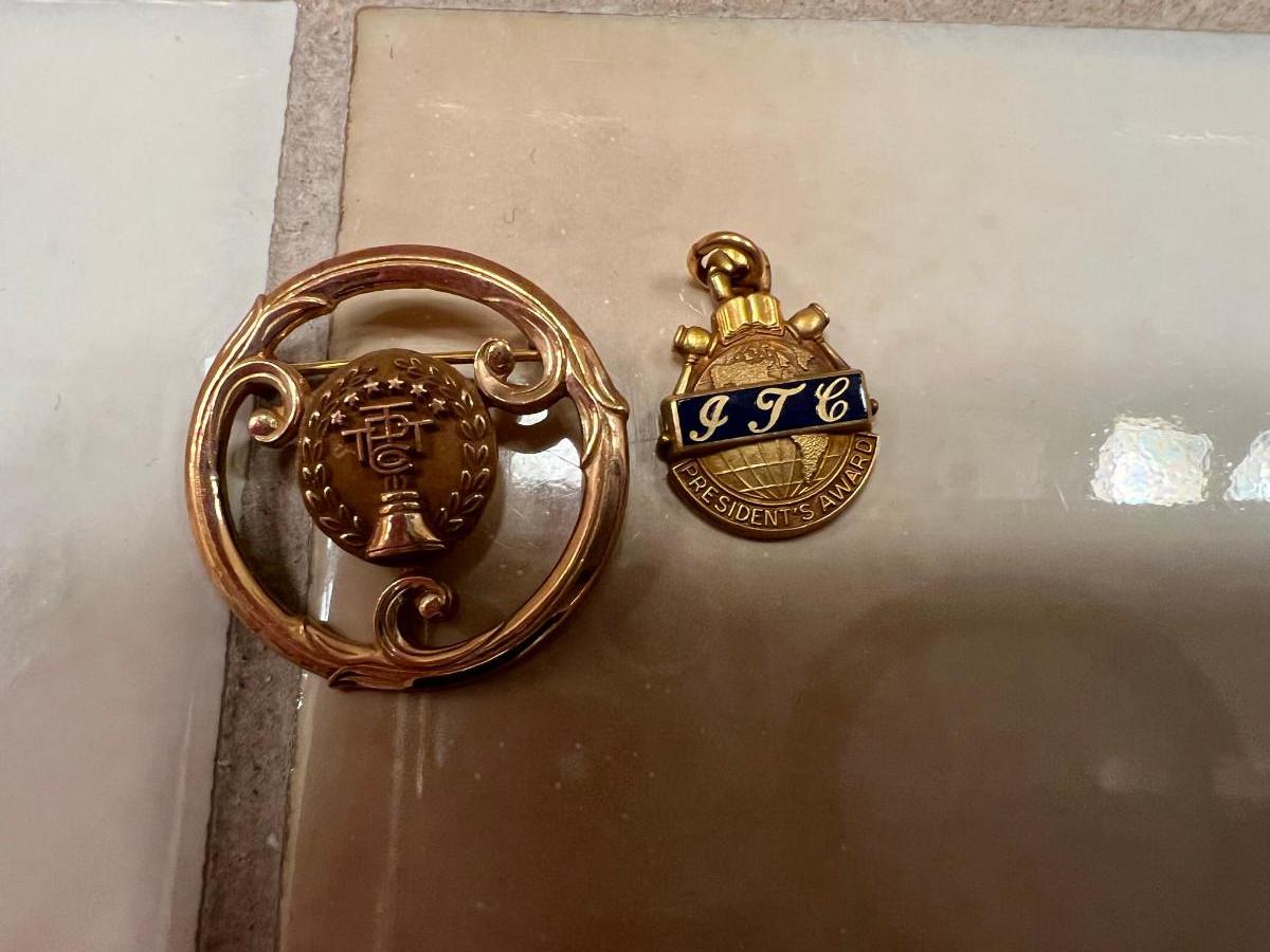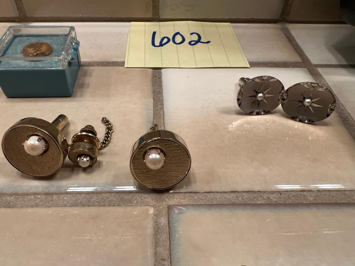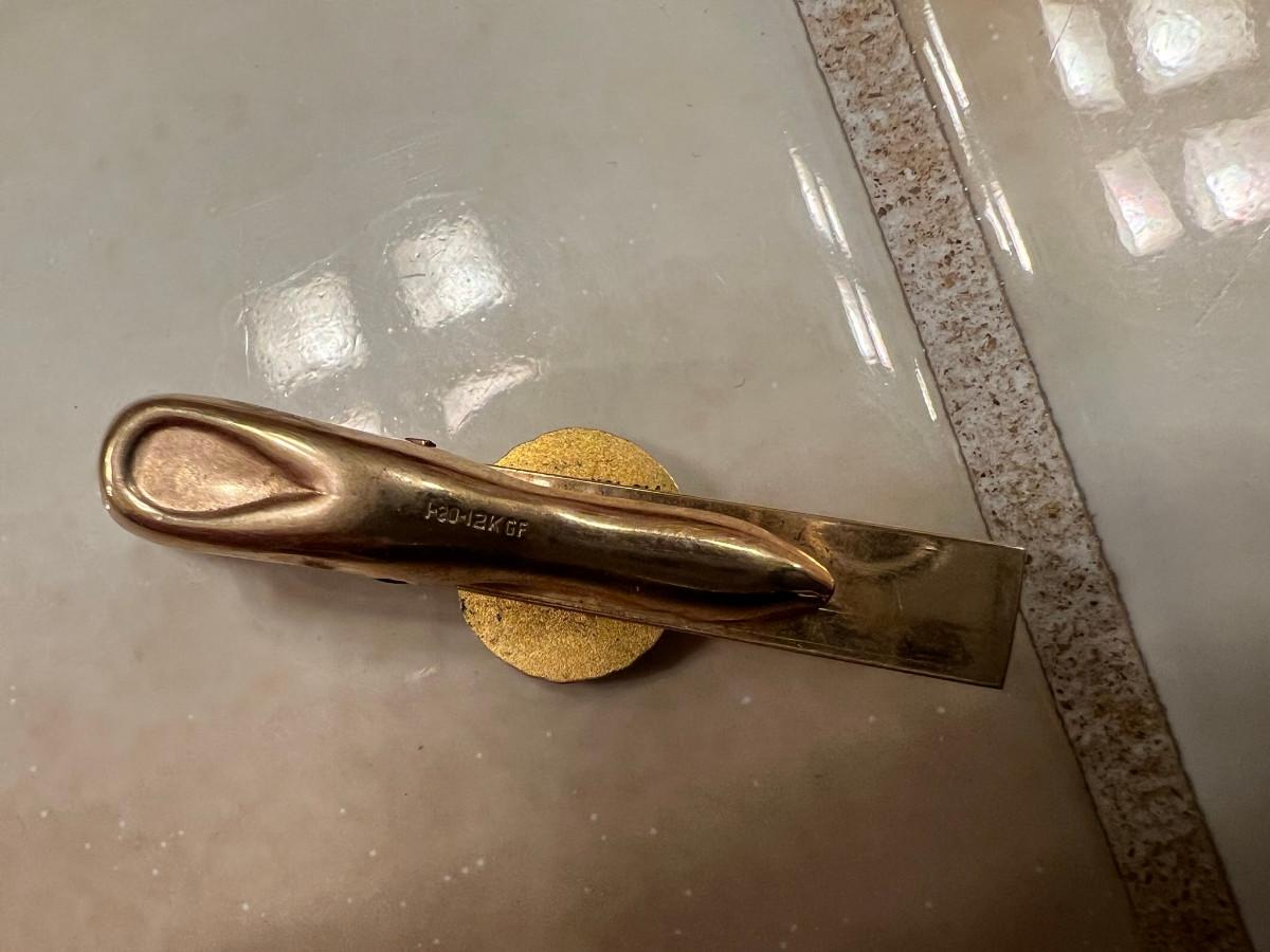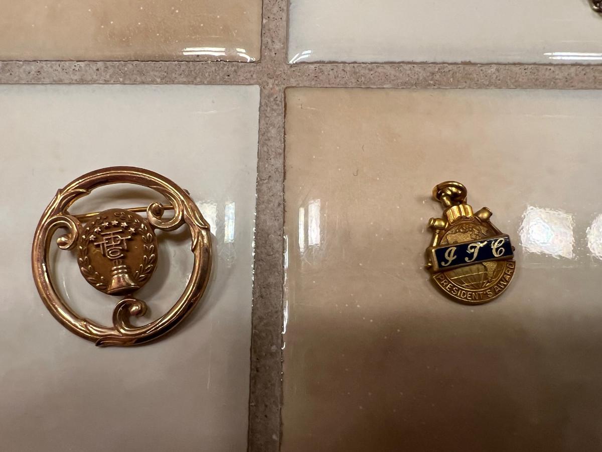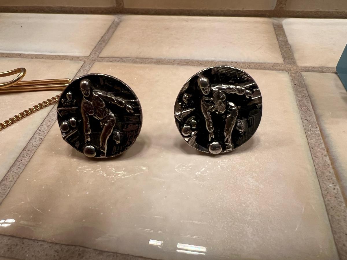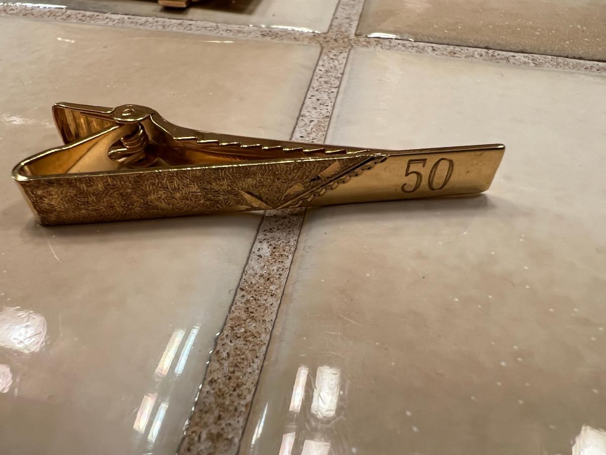 Items are mostly gold filled, coast guard military, Pacbell pin GF, bowling 2 cufflinks, non-matching bowling tie clip, International toast mistress, President's Award, Southern Safety Pacific, and more. All in a Remington box. See pics for more information.
