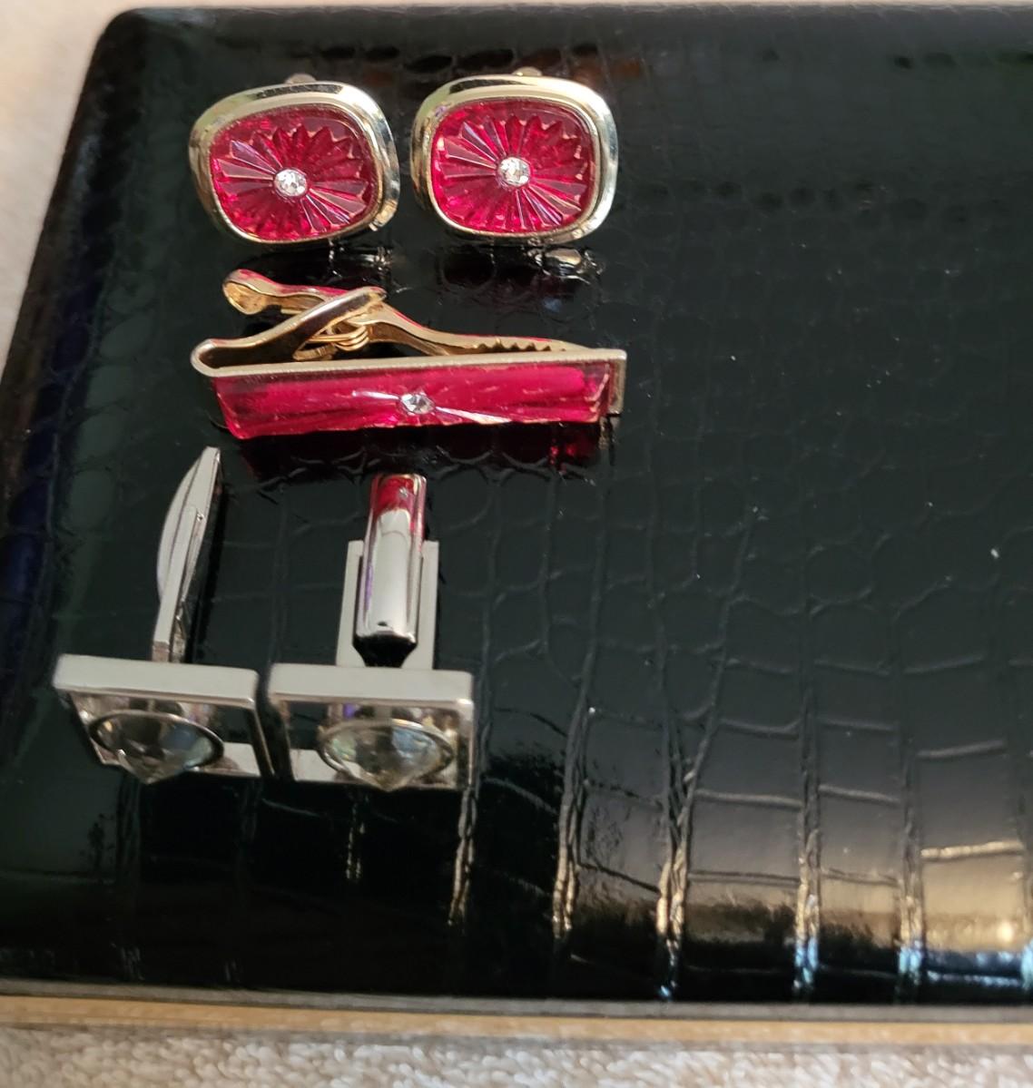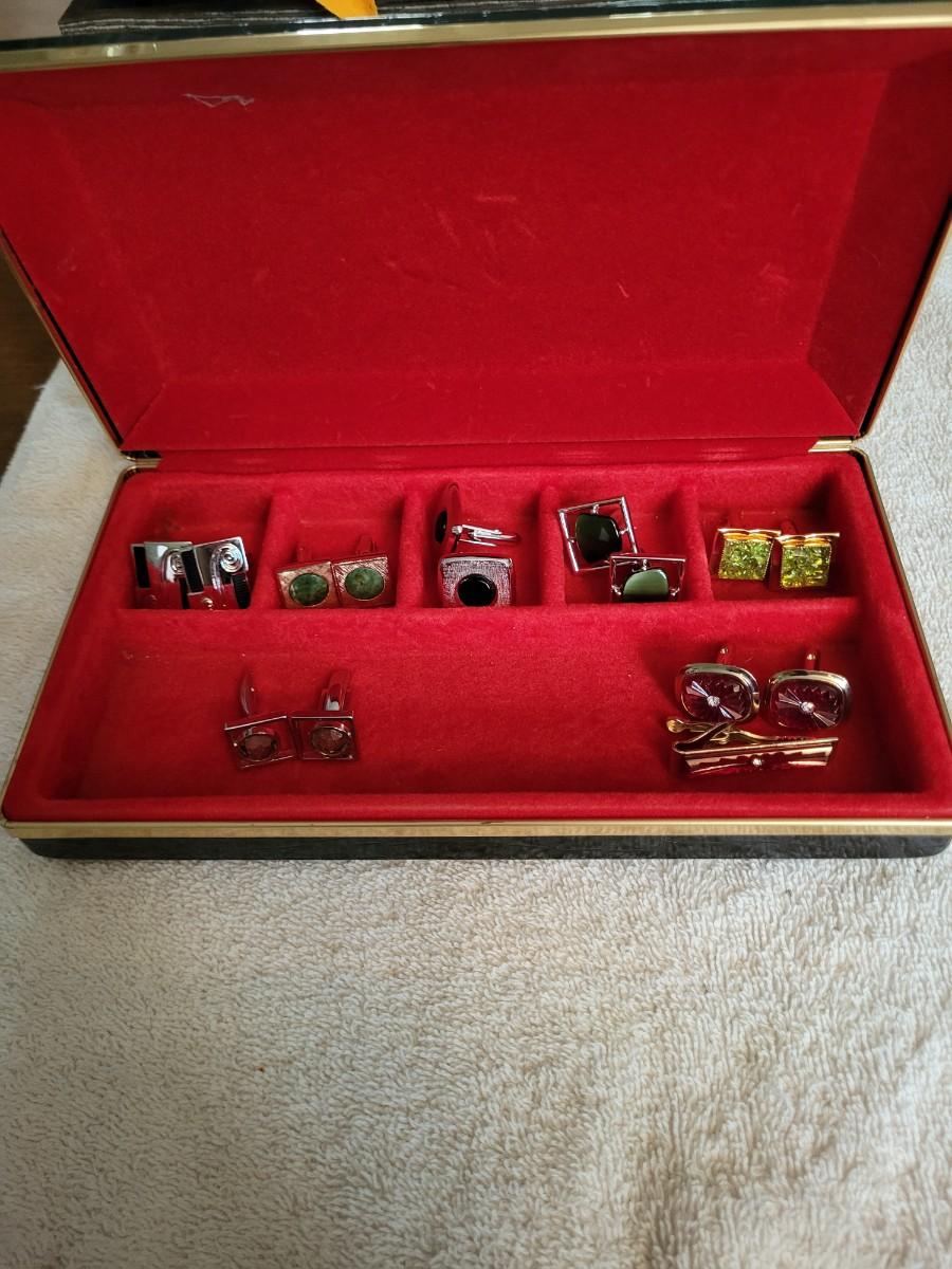 CUFFLINKS, TIE CLASP AND JEWELRY BOX
