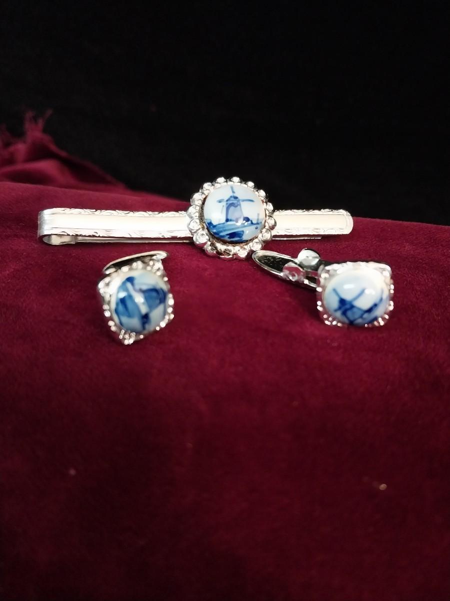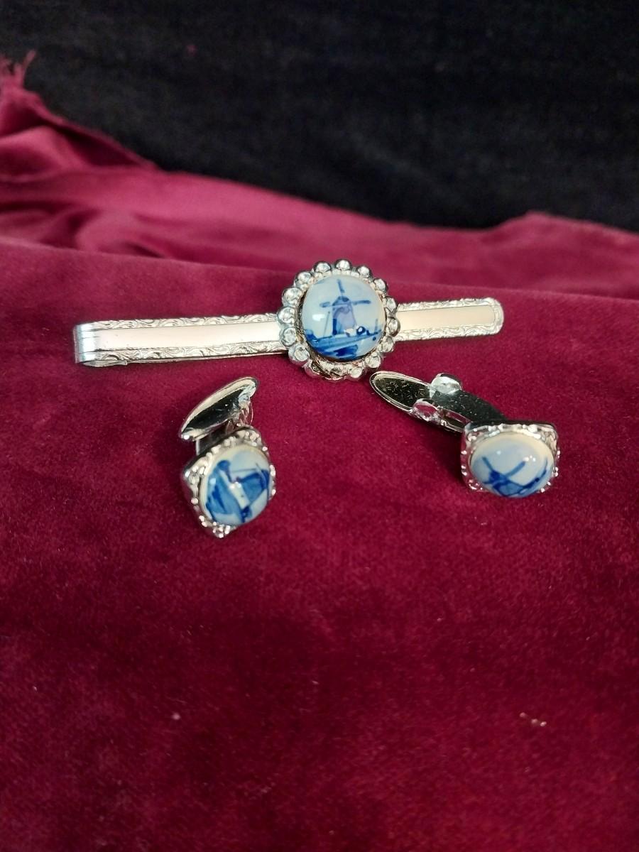 CUFFLINKS WITH MATCHING TIE TACK AND TIE CLIP
