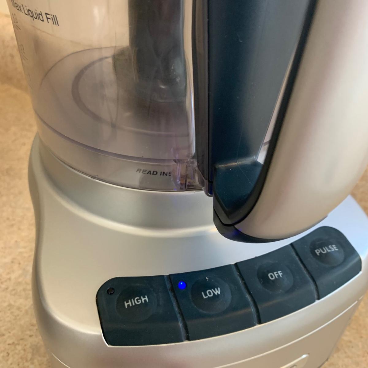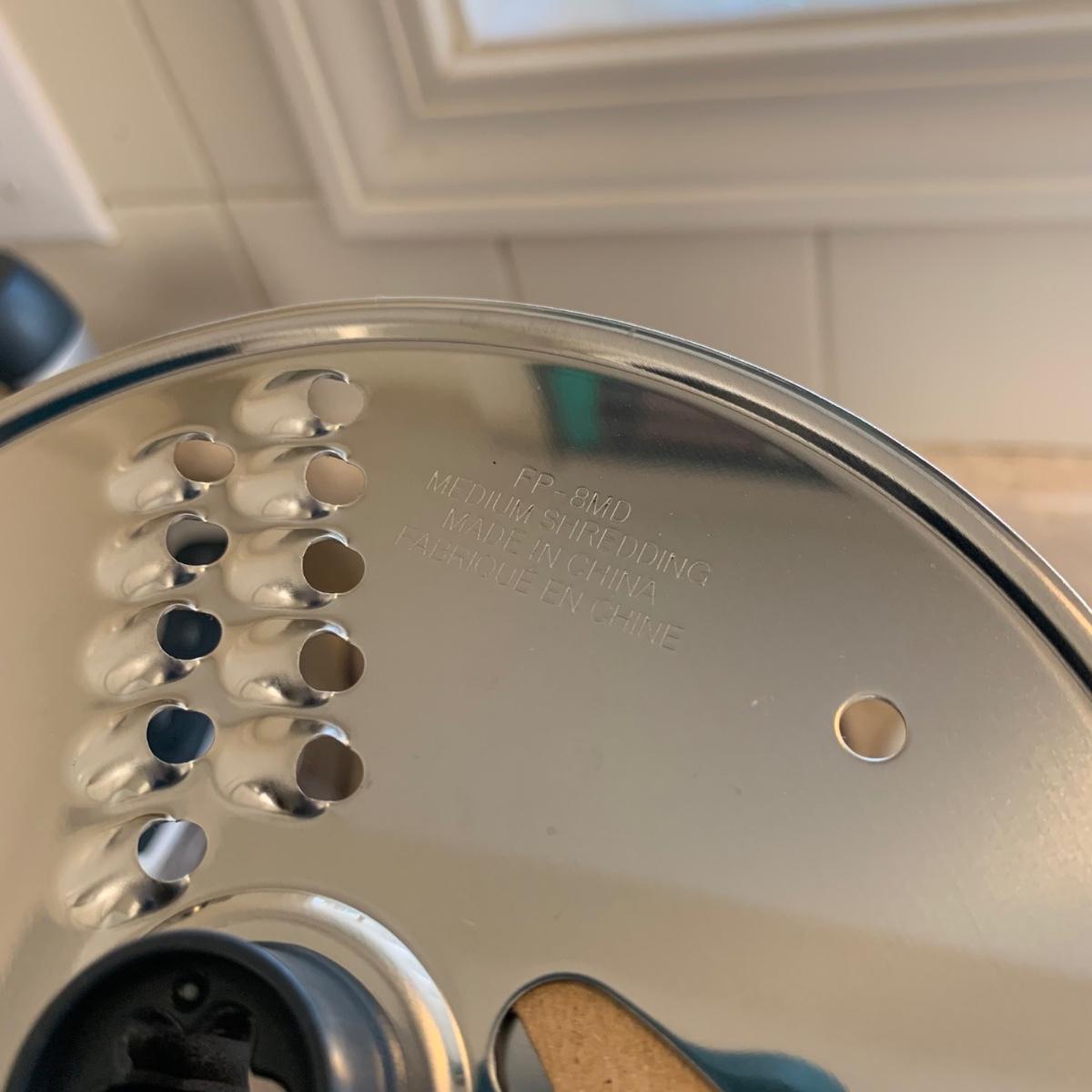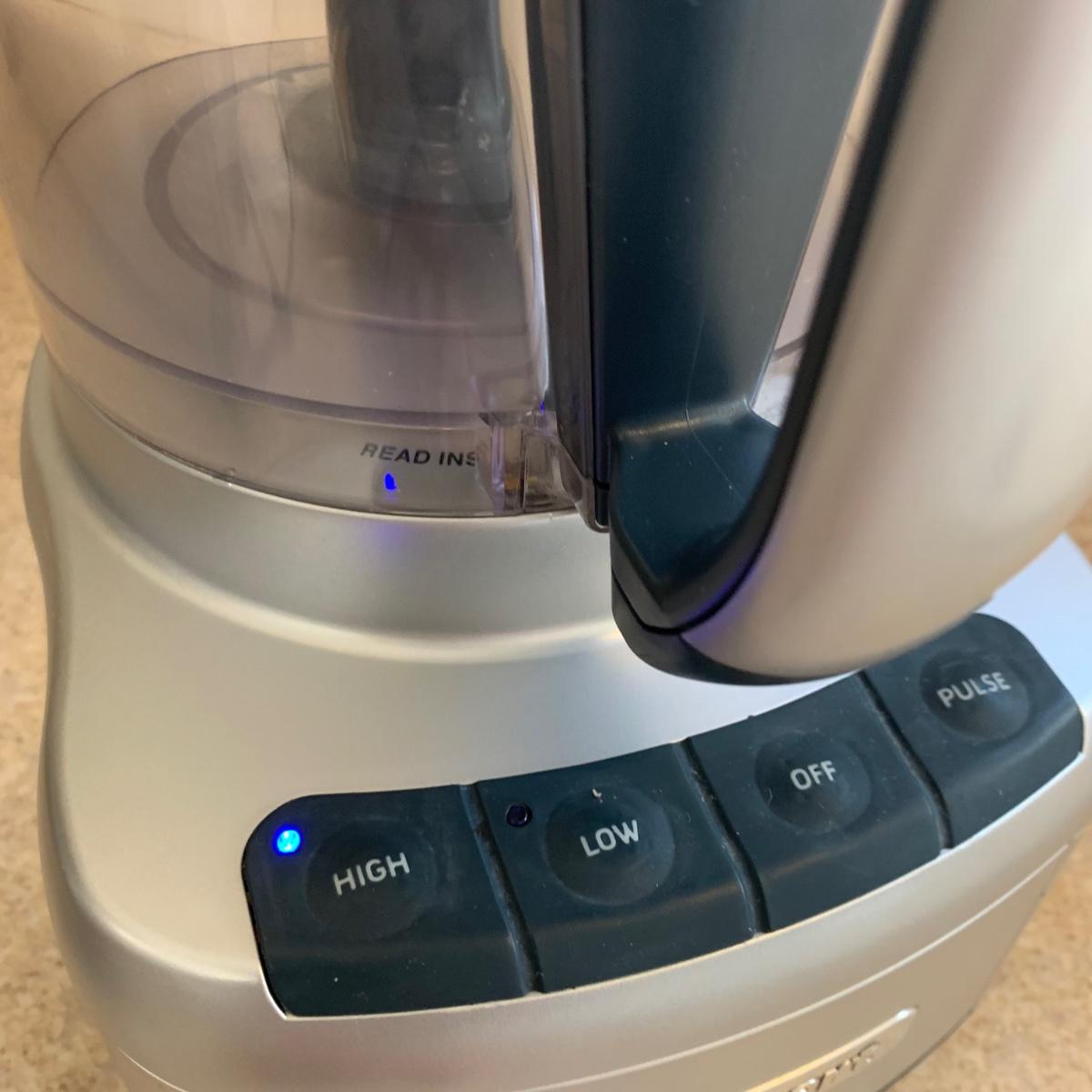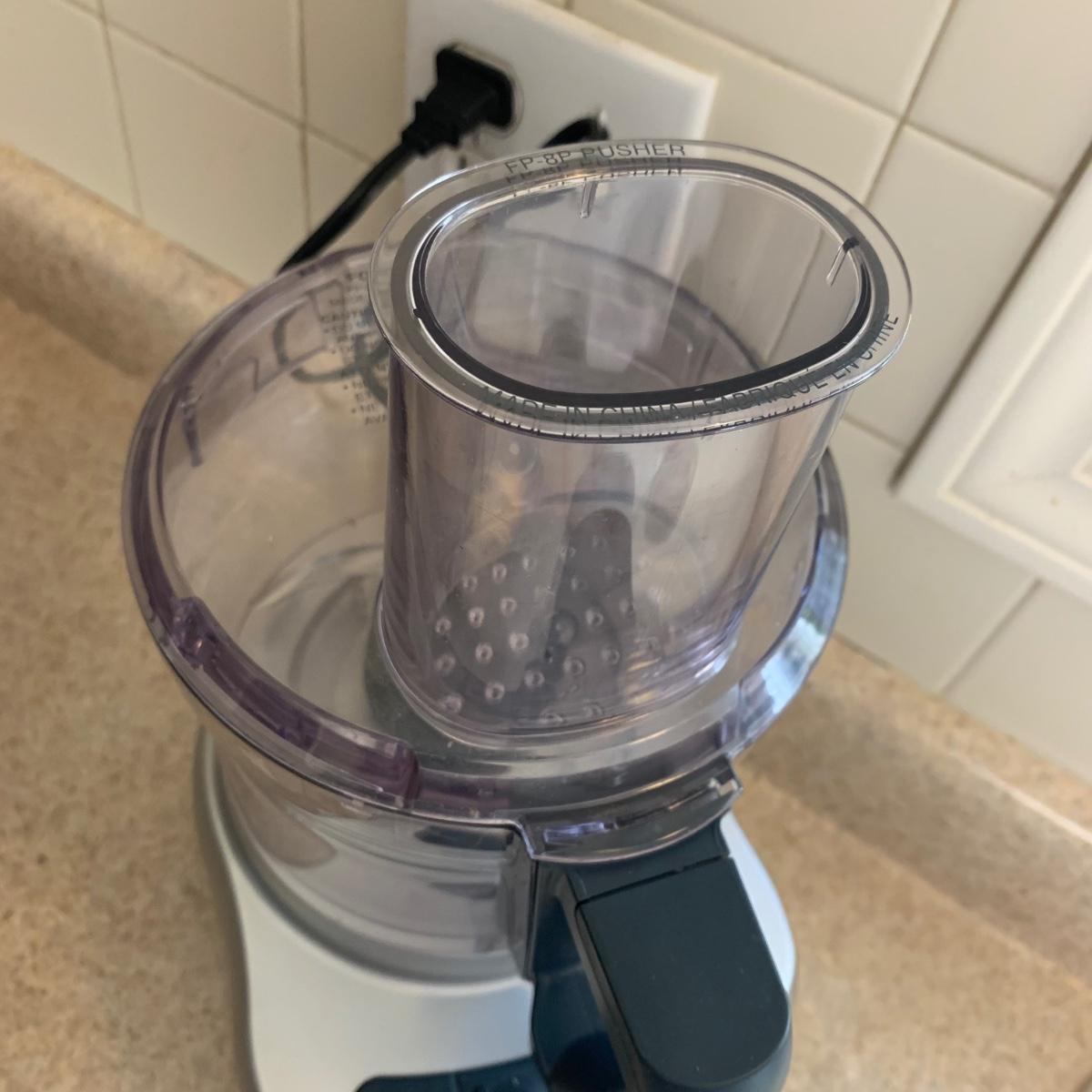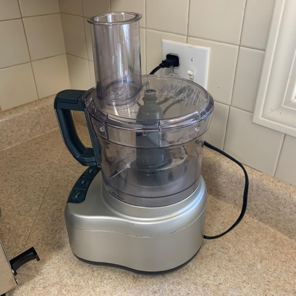 The Cuisinart food processor is model FP-8. It has two speeds and a pulse setting and comes with three blades. It functioned when tested and is in very good condition.