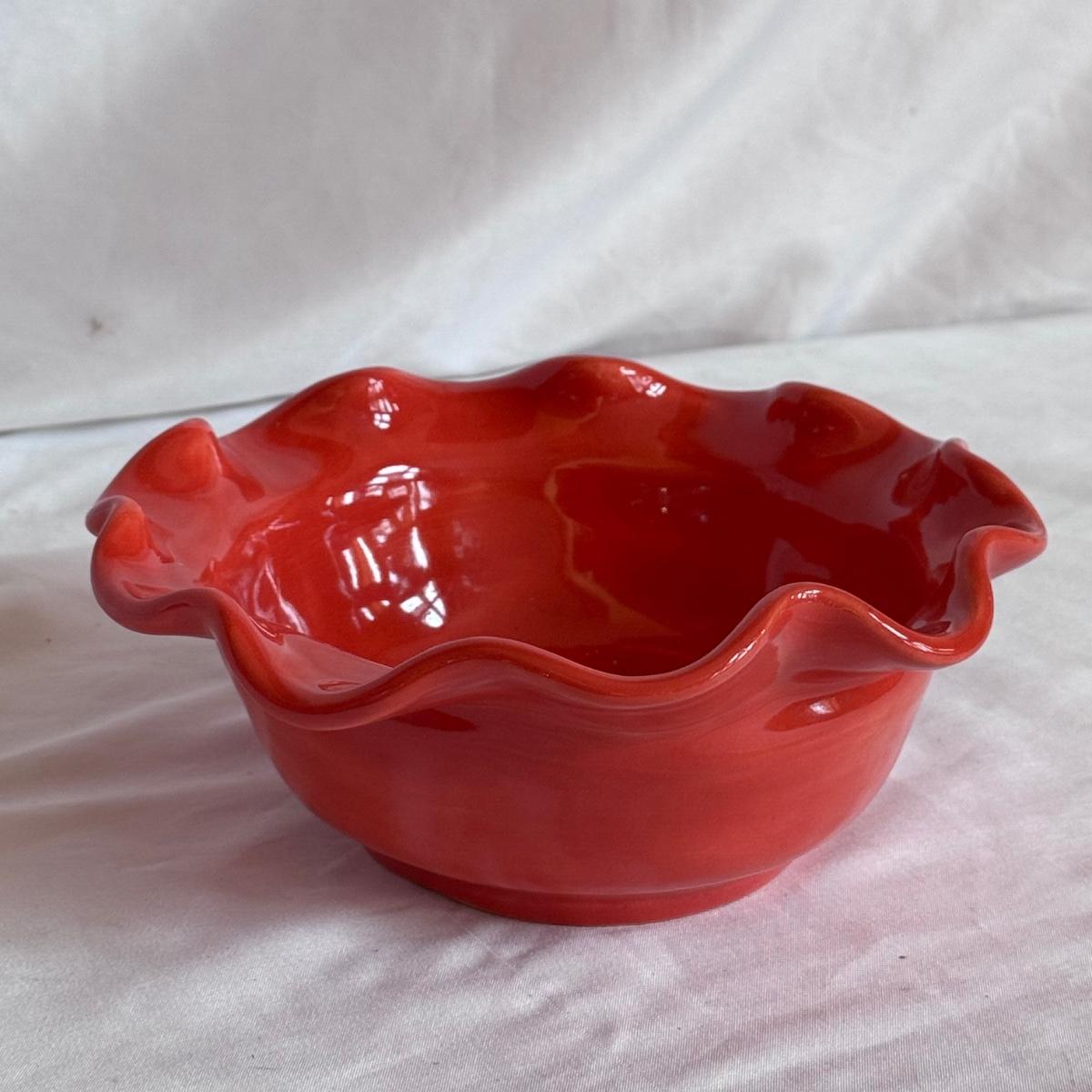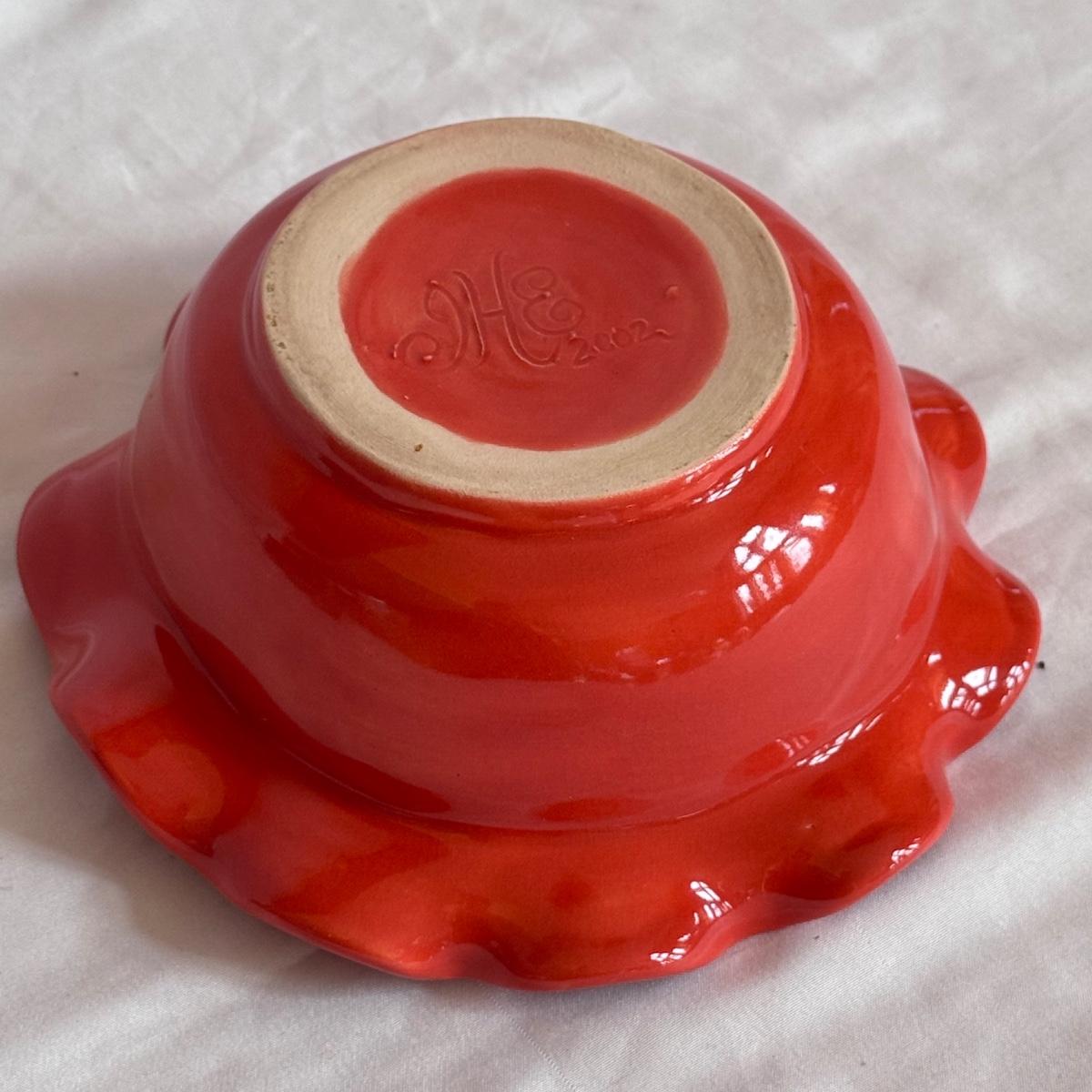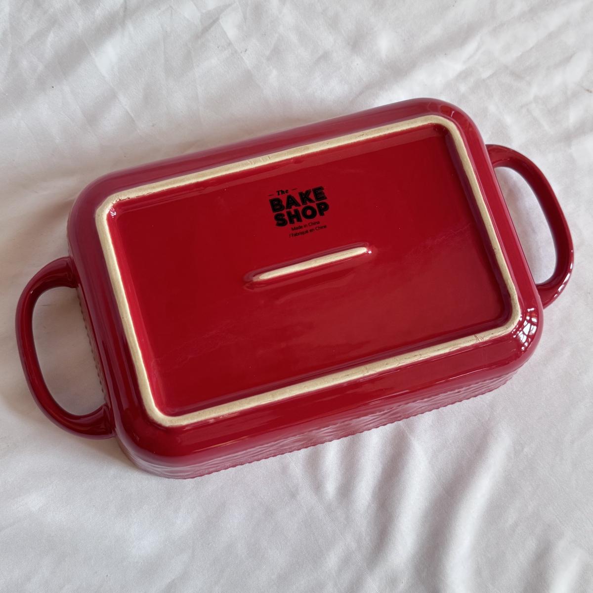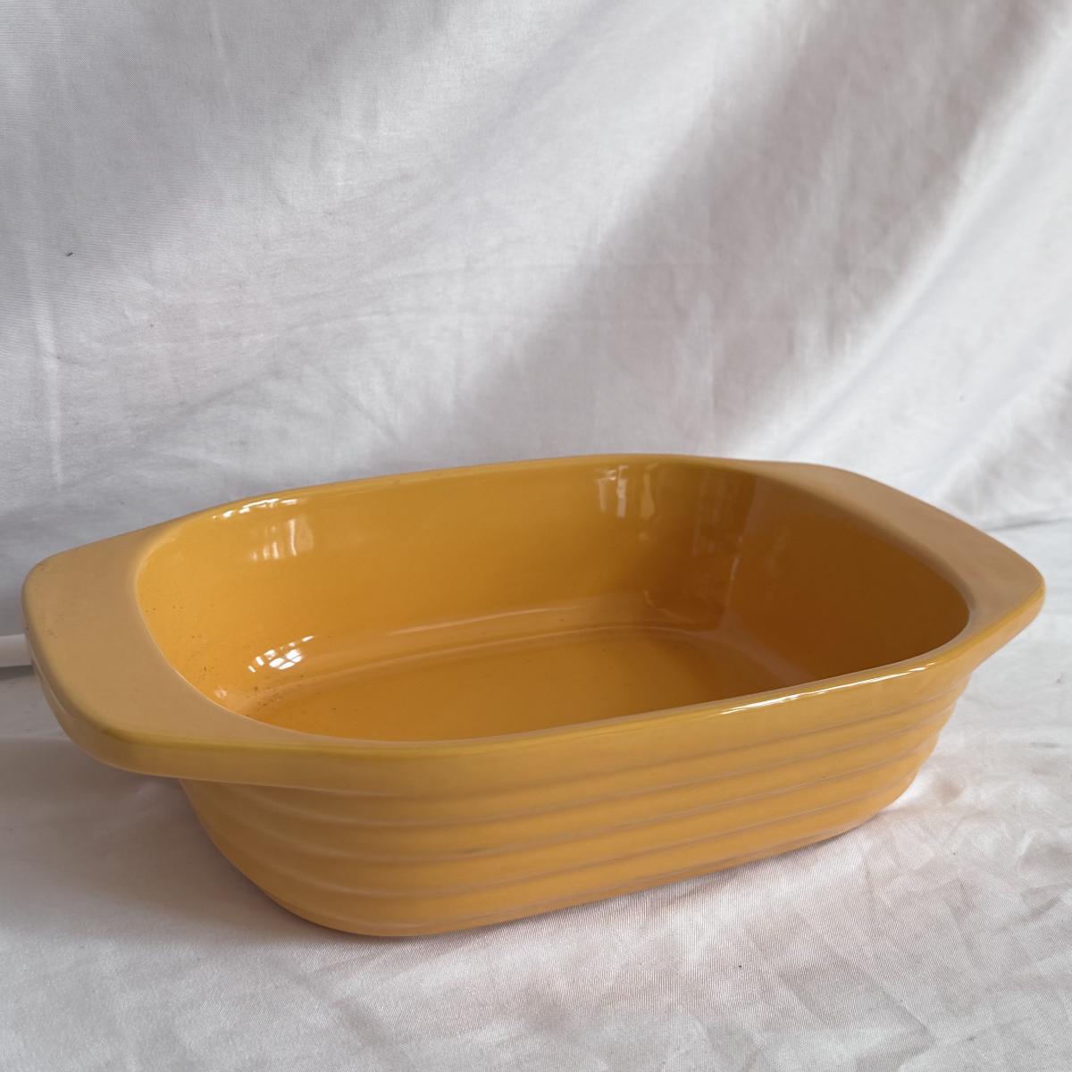 This lot of ceramic enamel bakeware includes six Cuisinart ramekins (5 fl. oz.), one red rectangular baking dish with handles from The Bake Shop, one red Emile Henry baking dish, one blue casserole dish from Sabatier’s Cannes collection, and three small oval dishes in red from Emile Henry. You’ll also find a red ceramic with red enamel loaf pan by Casa Stone, a yellow Chantal 1qt casserole dish with handles, a red ceramic bowl with a wavy rim, and a red serving dish by Ceramiche Alfa in Italy. The ceramic loaf pan by Casa Stone measures 11.5” x 6” x 3”H. Shipping available.