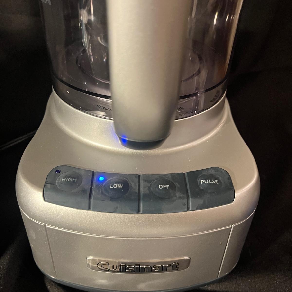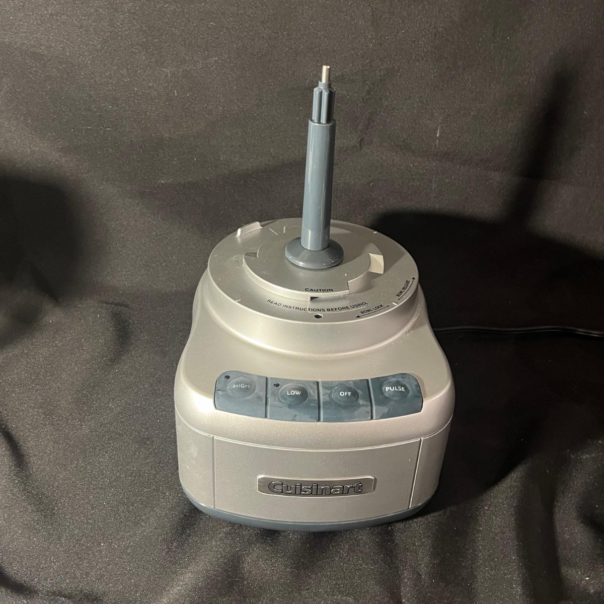 Lot includes à Cuisinart food processor and a Oster blender with glass container. Both items powered on when plugged in. Cuisinart measures 7” x 9” x 16”H.