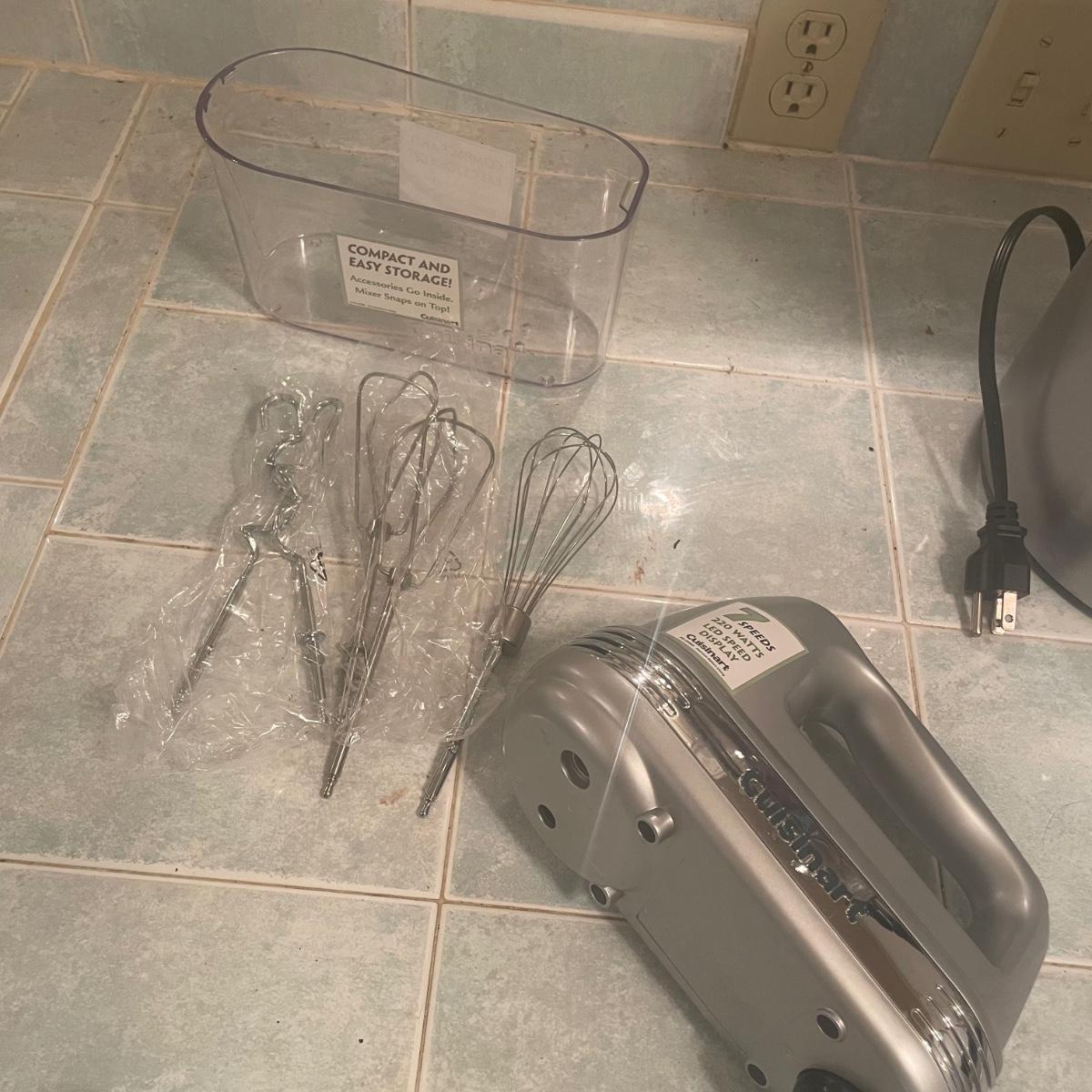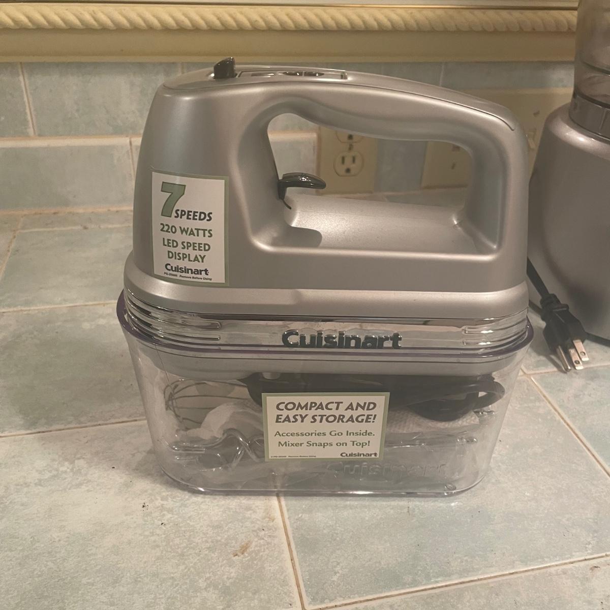 Both items are Cuisinart. The hand blender appears to be new and was tested and works. It’s a great compact 7 speed blender with multiple whisking attachments. The food processor powered on when tested and is very clean. Note it is most likely missing some attachments for its various tasks, which are likely affordably available for purchase on EBay or from the manufacturer.