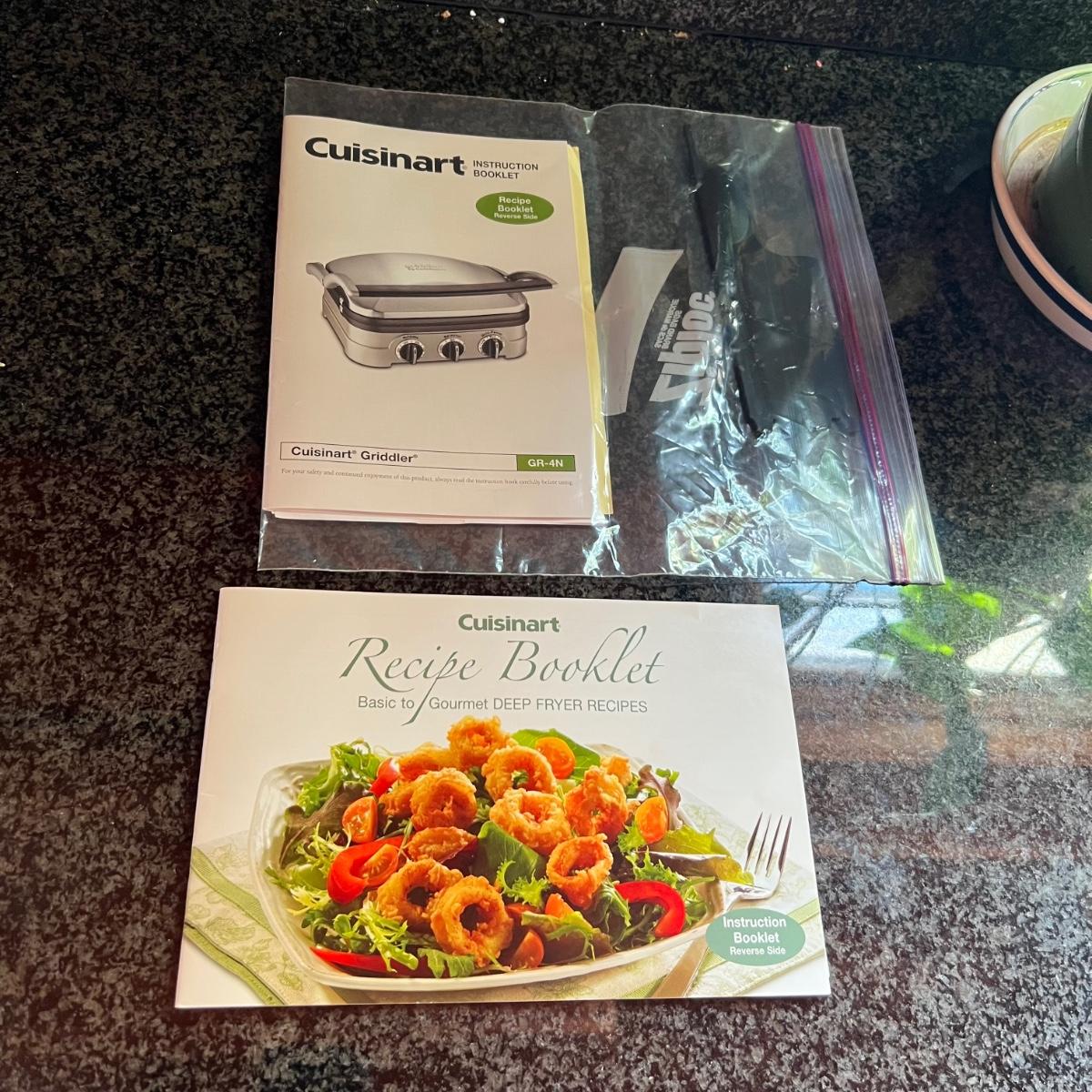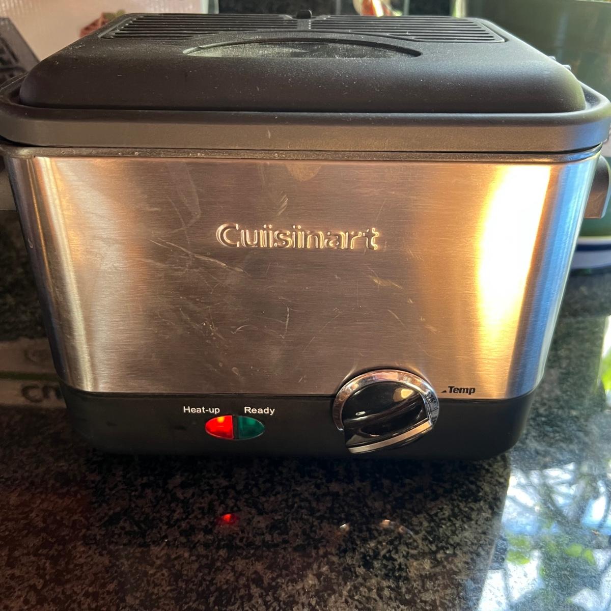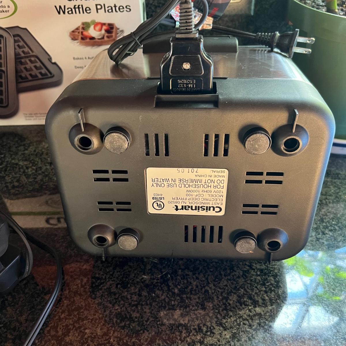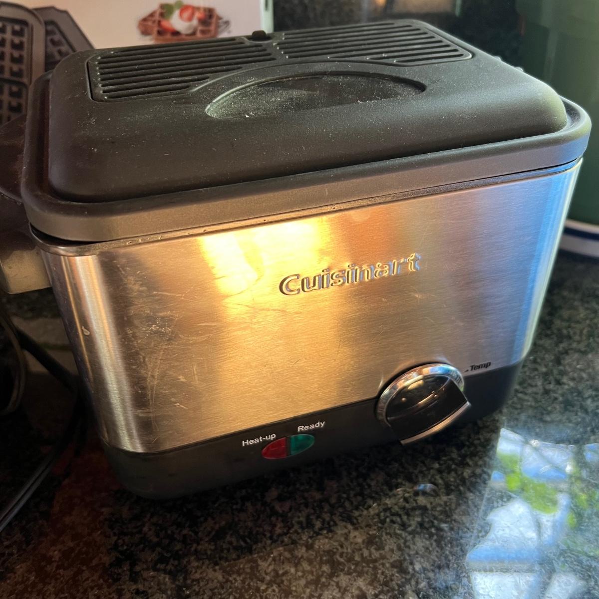 Both Cuisinart brand, the small fryer (looks new or almost new) and the griddler powered on when plugged, in as did the Vitantonio waffle maker. Griddler has a NIB waffle plate and comes with manual; it measures 13” x 10” x 8”.