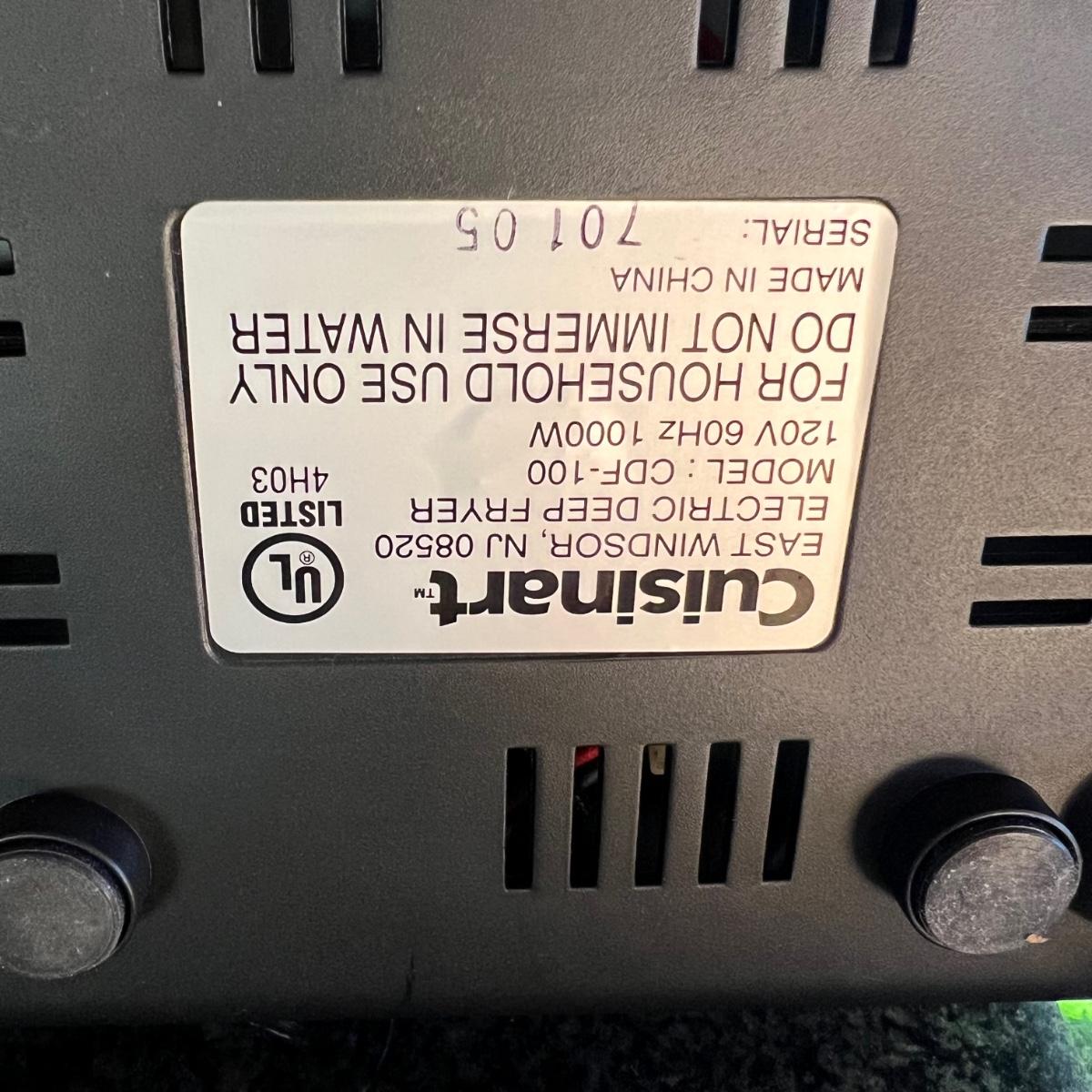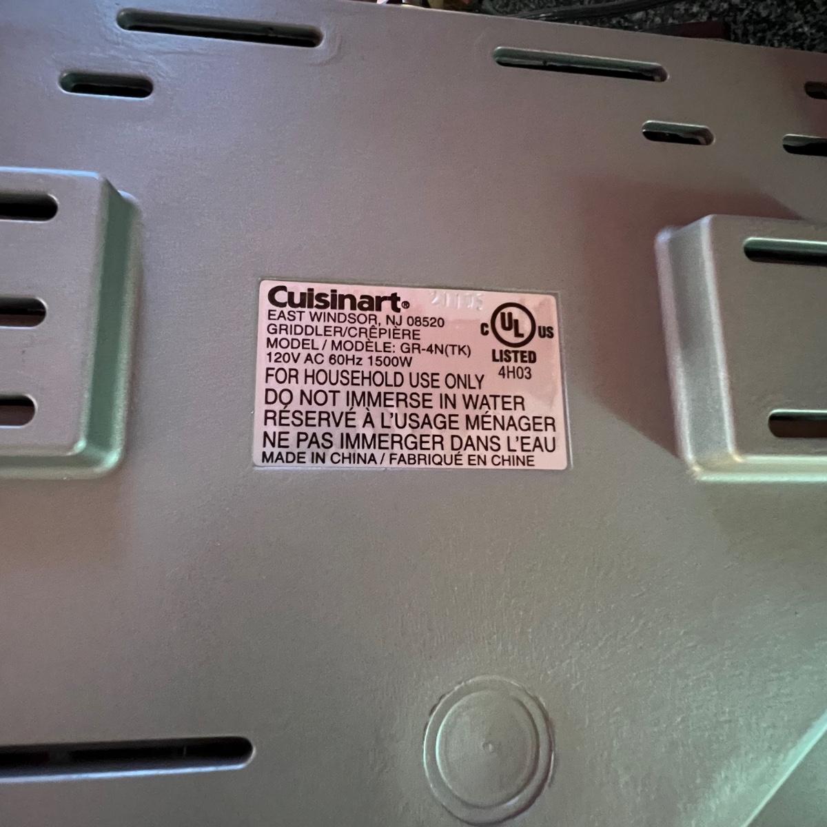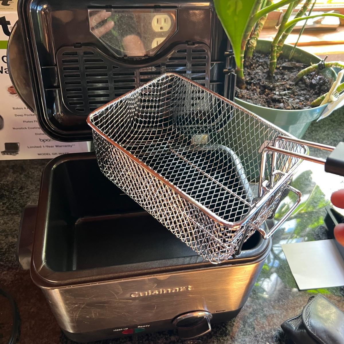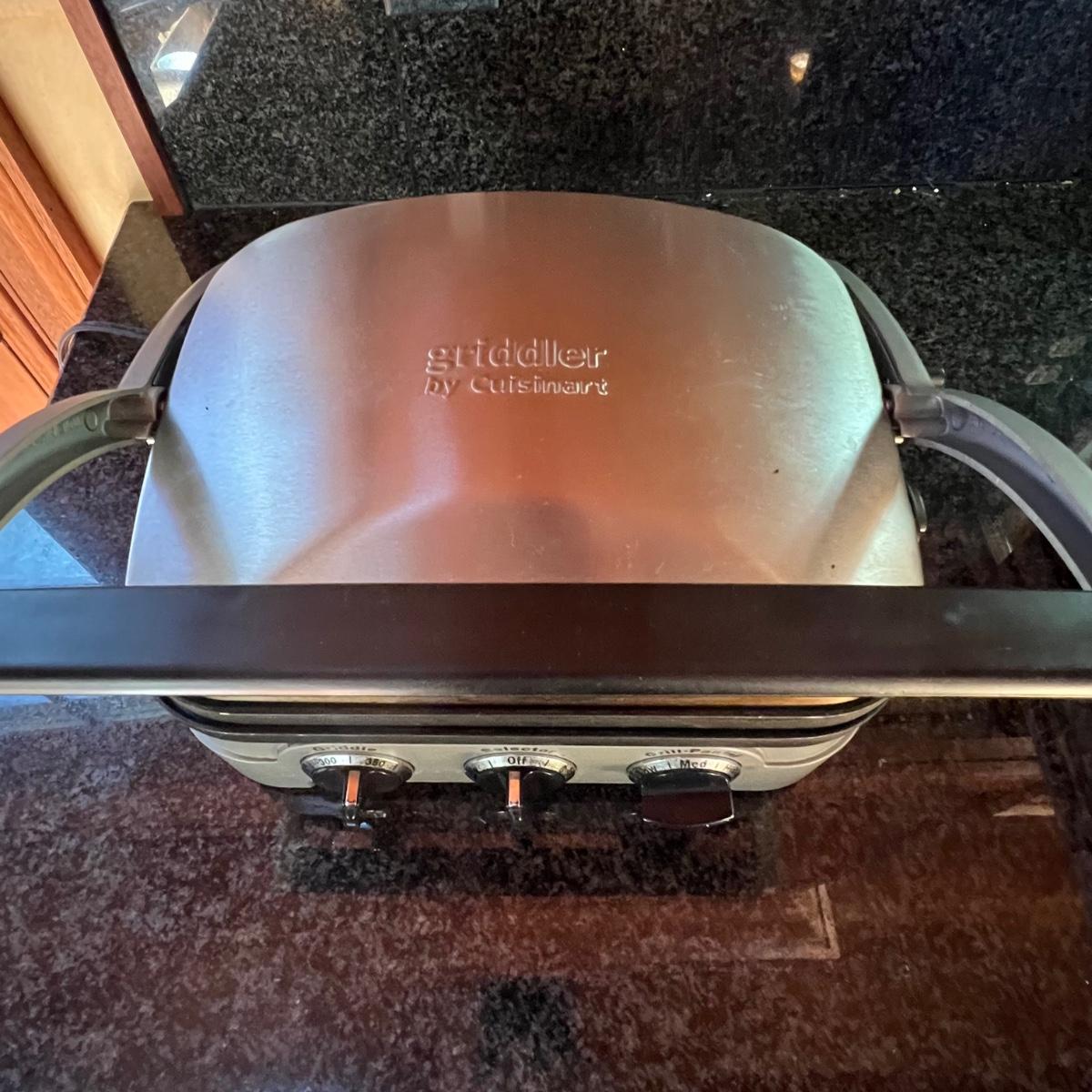 Both Cuisinart brand, the small fryer (looks new or almost new) and the griddler powered on when plugged, in as did the Vitantonio waffle maker. Griddler has a NIB waffle plate and comes with manual; it measures 13” x 10” x 8”.