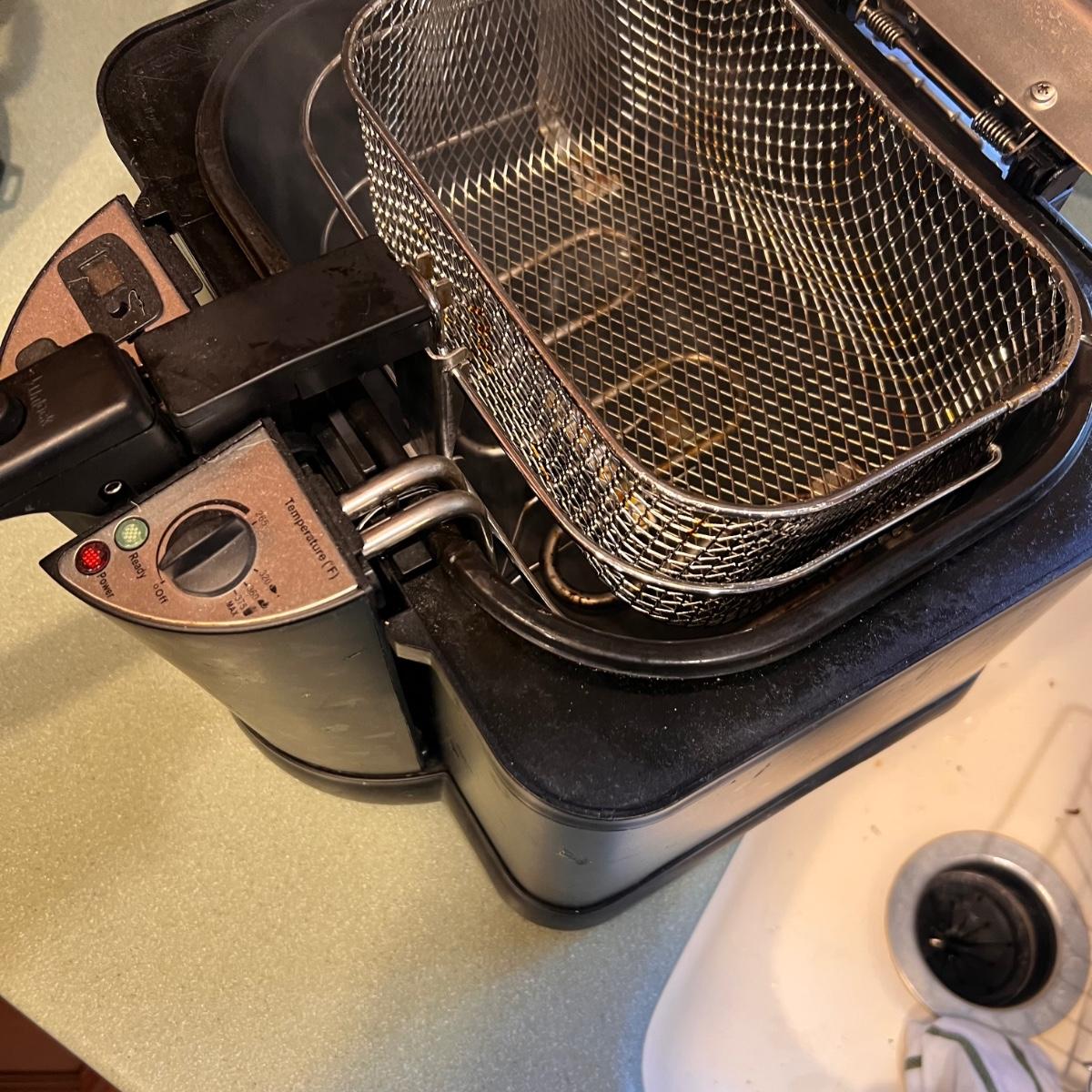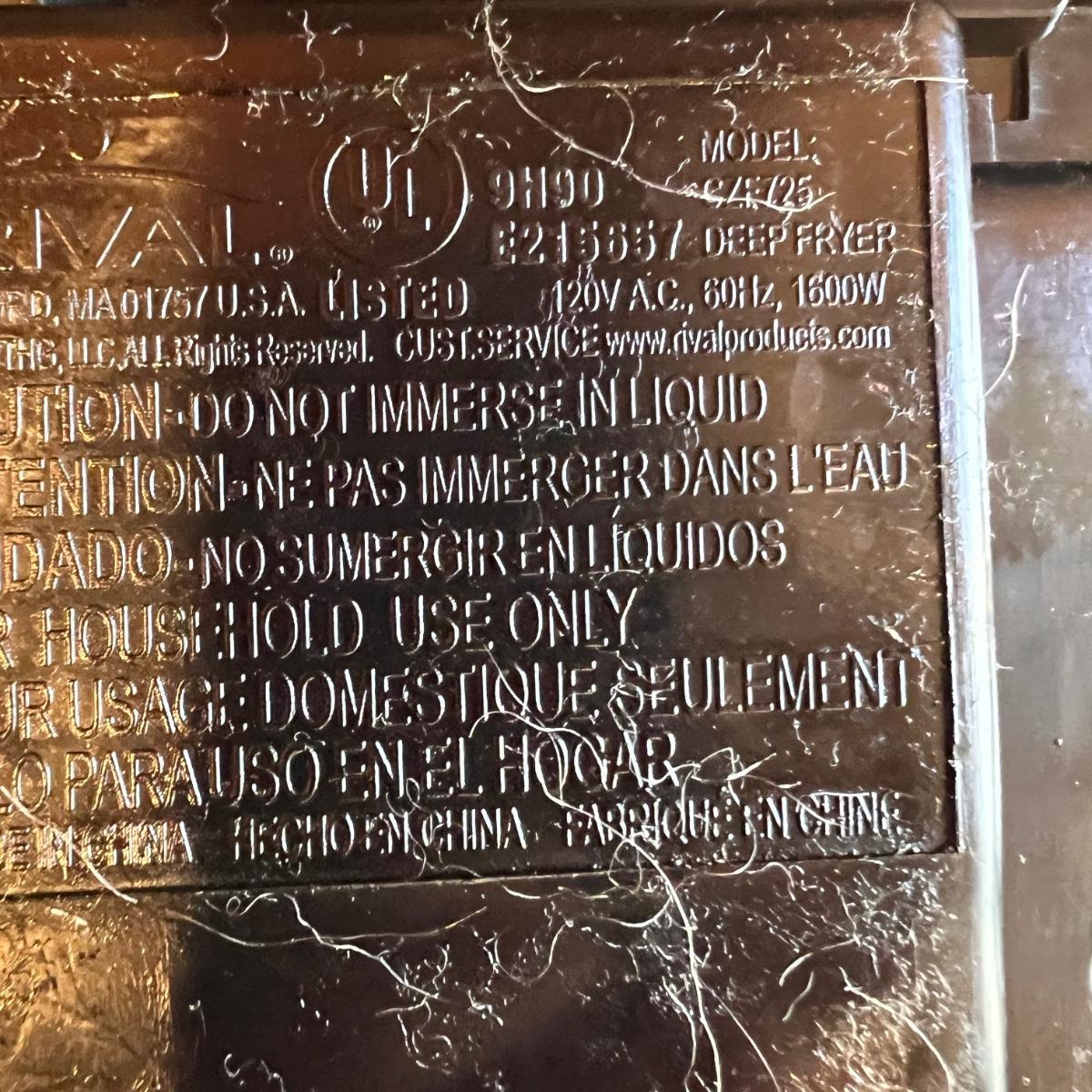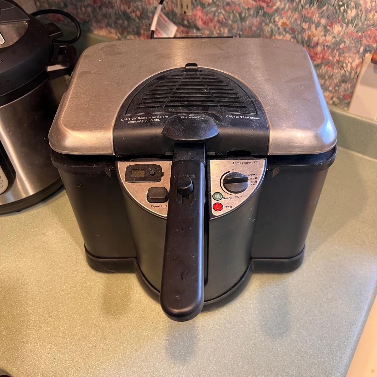 All three of these appliances powered on when plugged in. See images for model number information. Rival fryer measures 12” x 17” x 10”H. All need a good cleaning.