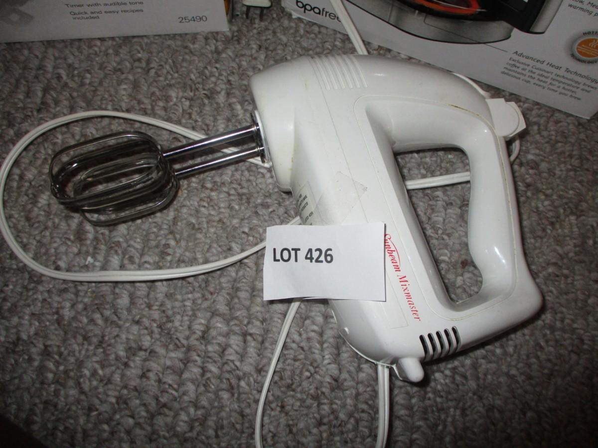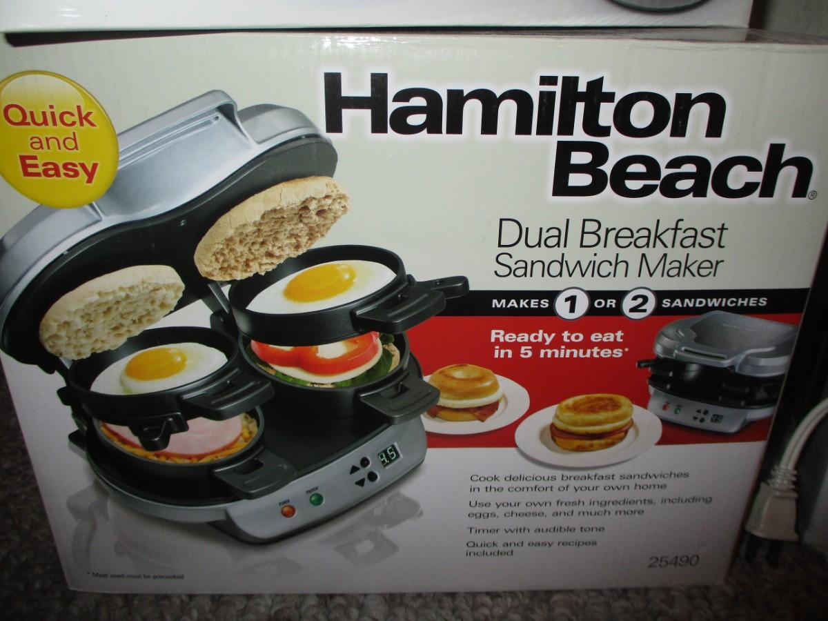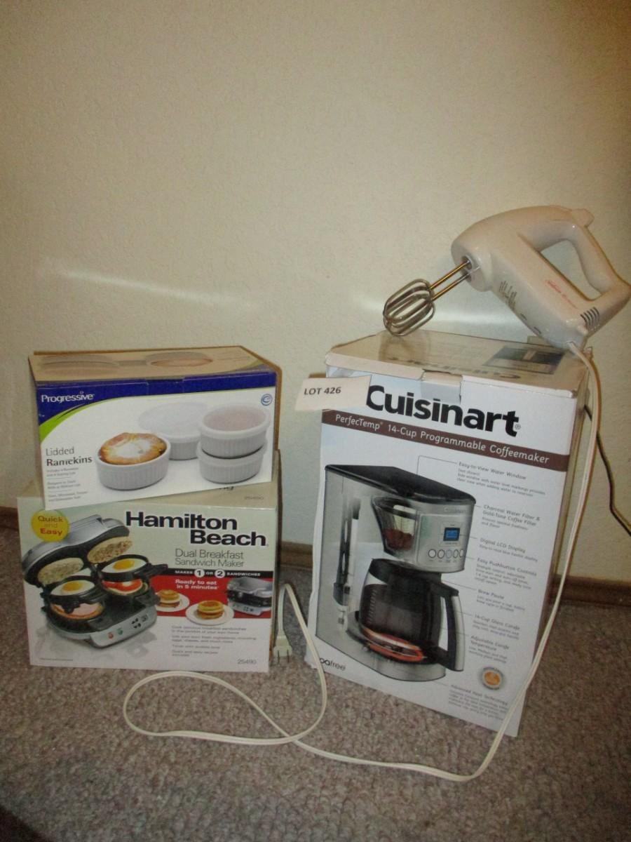 Coffee pot, sunbeam mixer. breakfast/sandwich maker. Ramekins w/lids