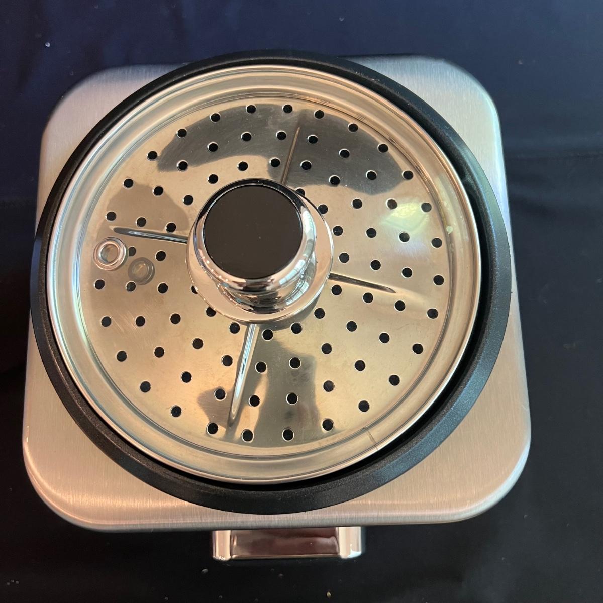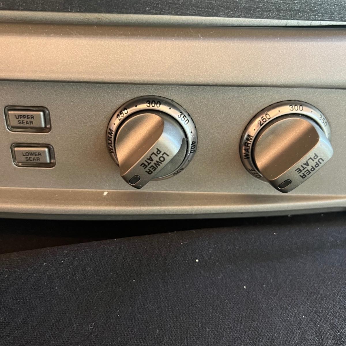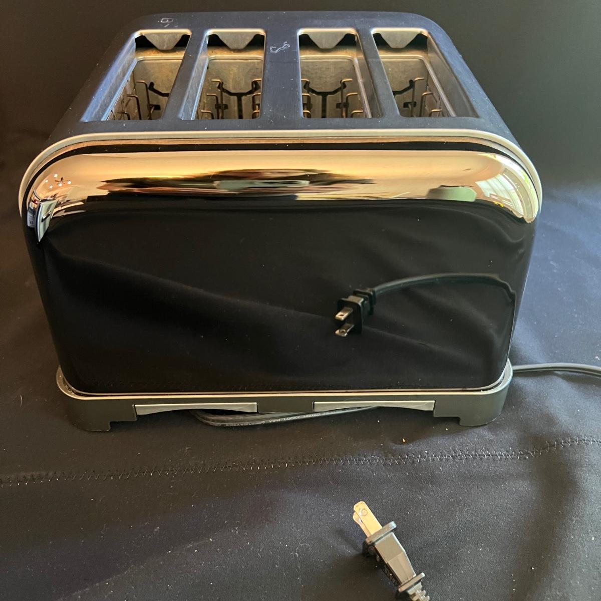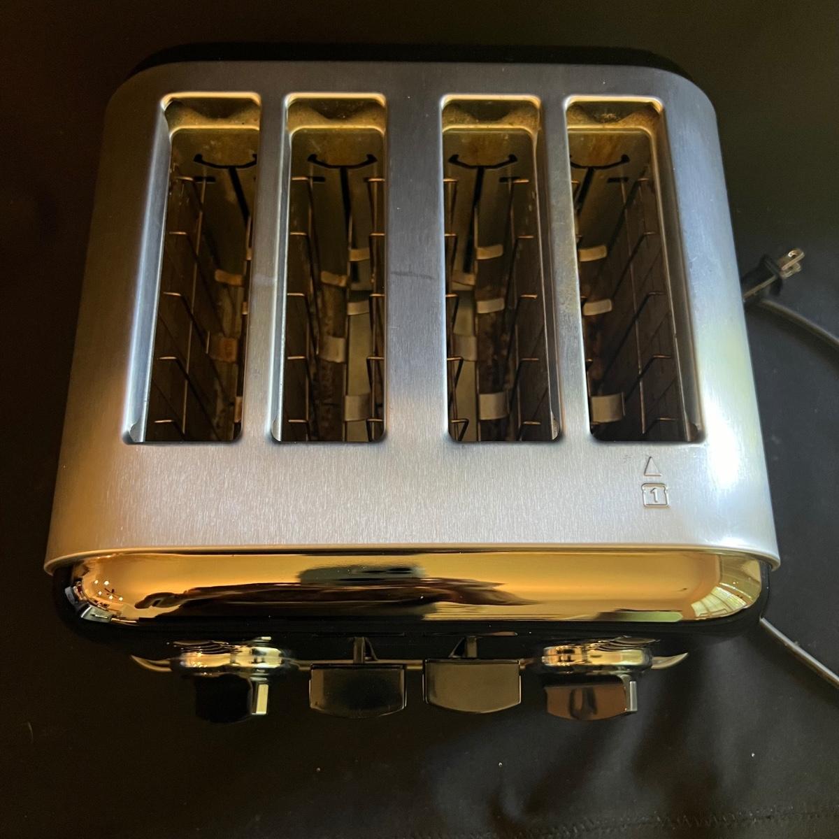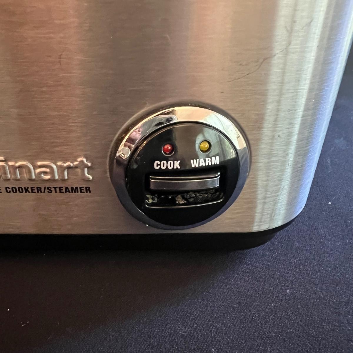 The three pieces of luxury Cuisinart kitchen equipment include a griddle press, rice cooker/steamer and a toaster. The four slot toaster measures 11” x 9.5” x 7.5”H. The Cuisinart griddles deluxe with two presser irons measures approximately 13” x 13” x 8.5”H.