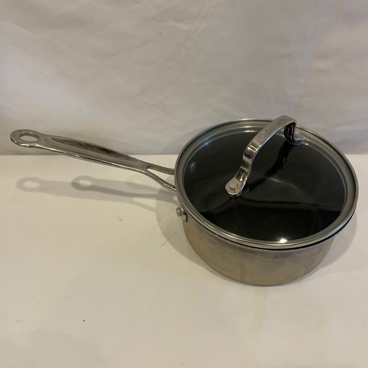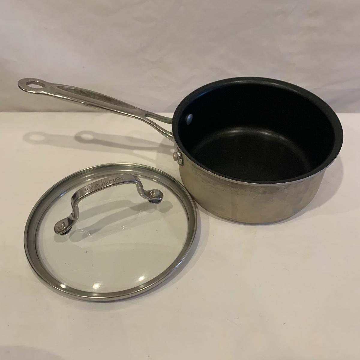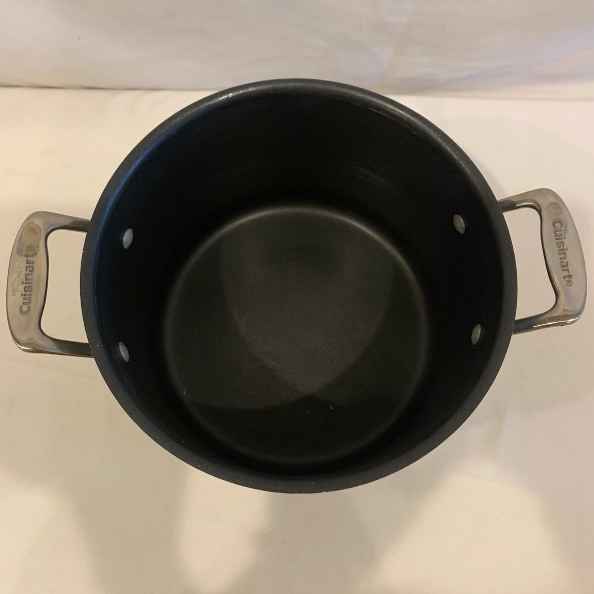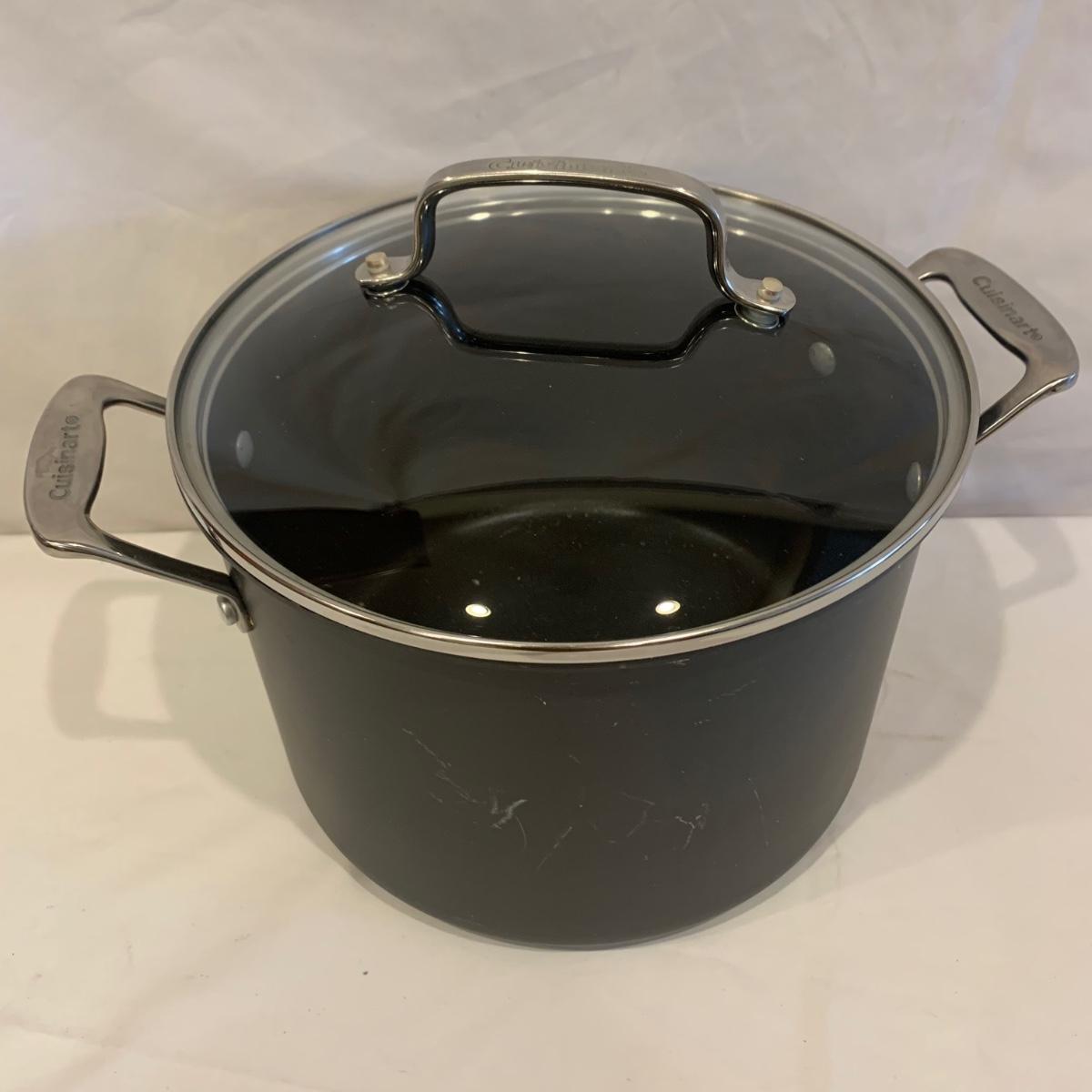 Lot includes two lidded Cuisinart pots, steamer basket, large Cuisinart stock pot, and 12”D cast iron pan. Stock pot measures, 10”D x 7”H. All items show gentle signs of use. Please see photos for more details. Local pickup only.