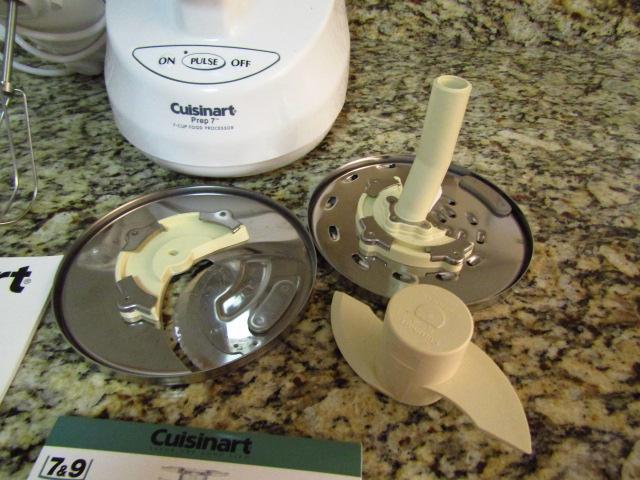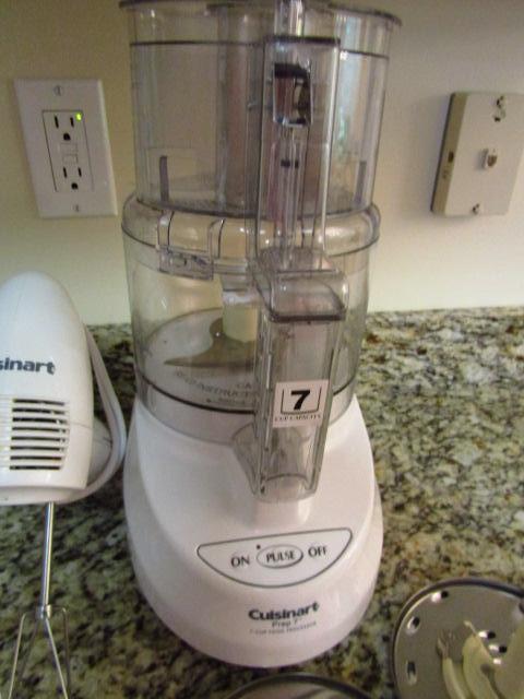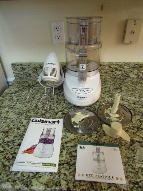 Cuisinart Small Appliances: Hand Mixer and Food Processor. Food Processor is 7 cup capacity with dough blade, slicing blade, grating blade, and chopping blade.