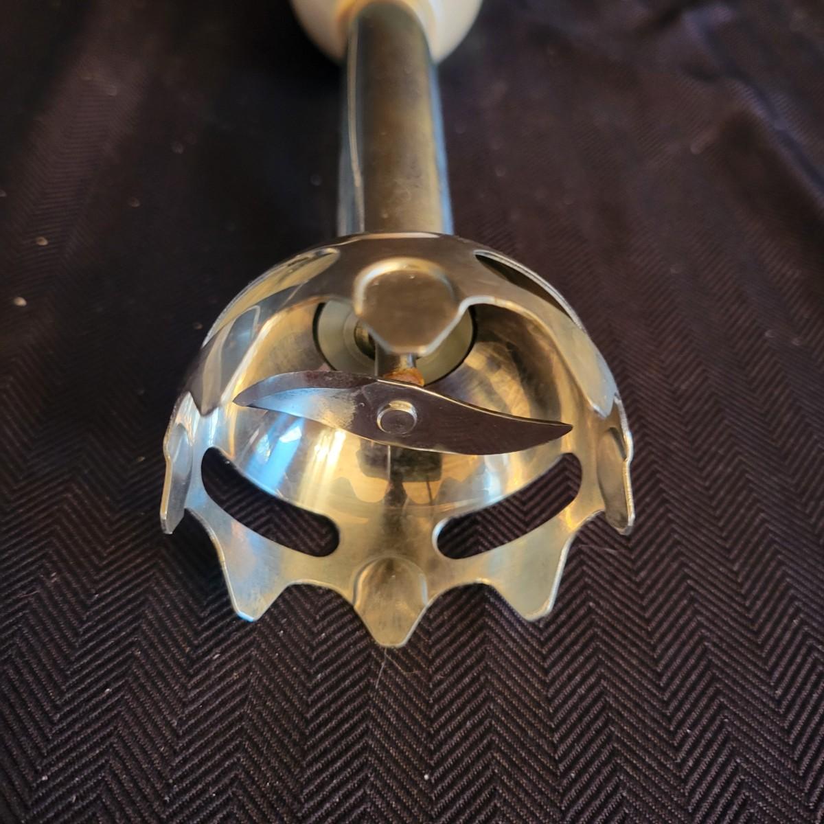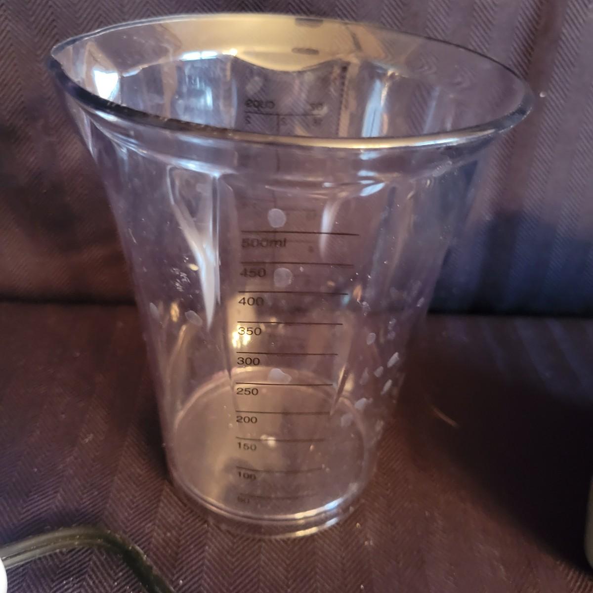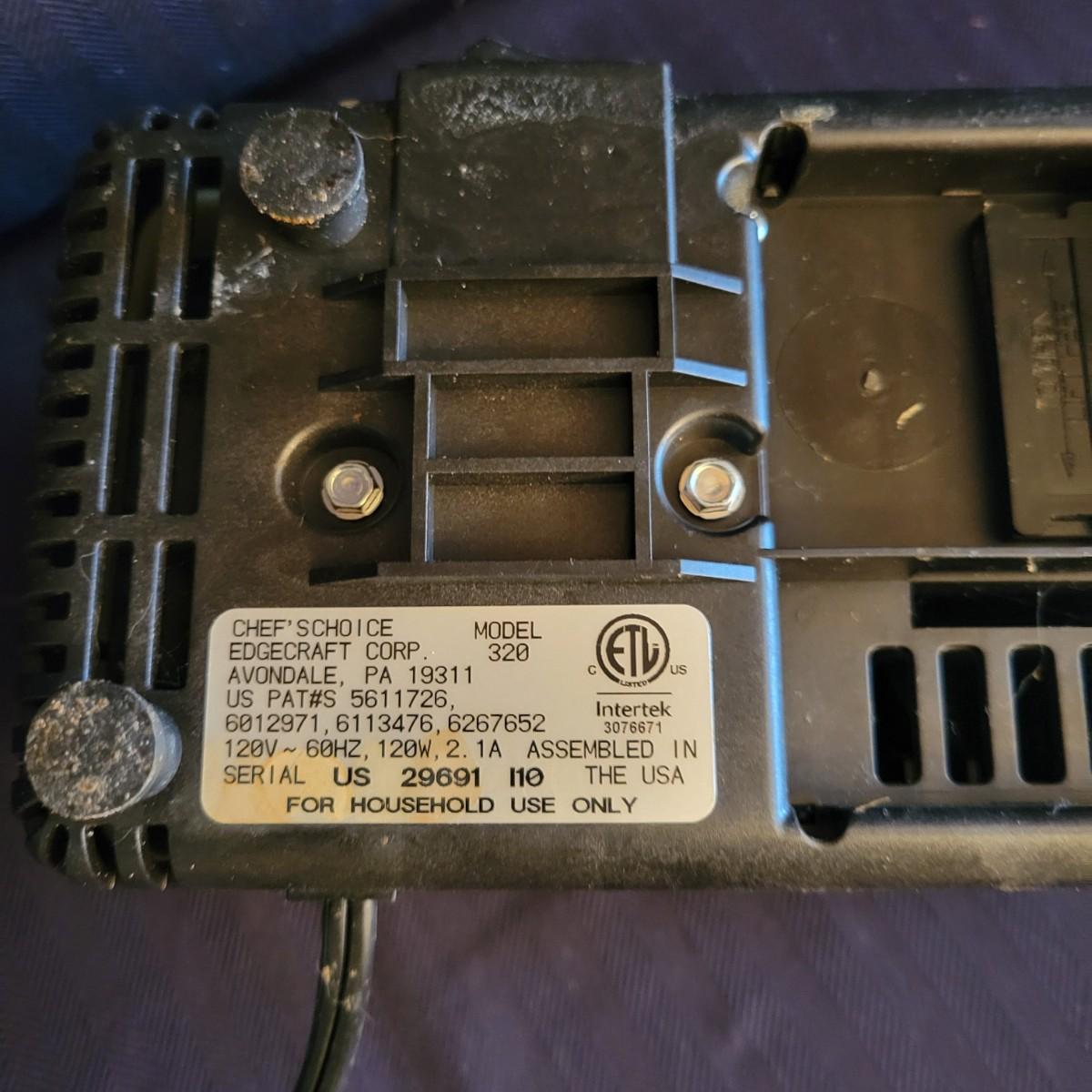 A Cuisinart Smart Stick and a ChefsChoice electric sharpener that powered on when plugged in. The knife sharpener measures approximately 8" x 4" x 4.5"H. The Cuisinart Smart Stick includes a measuring cup and recipe booklet. Shipping available