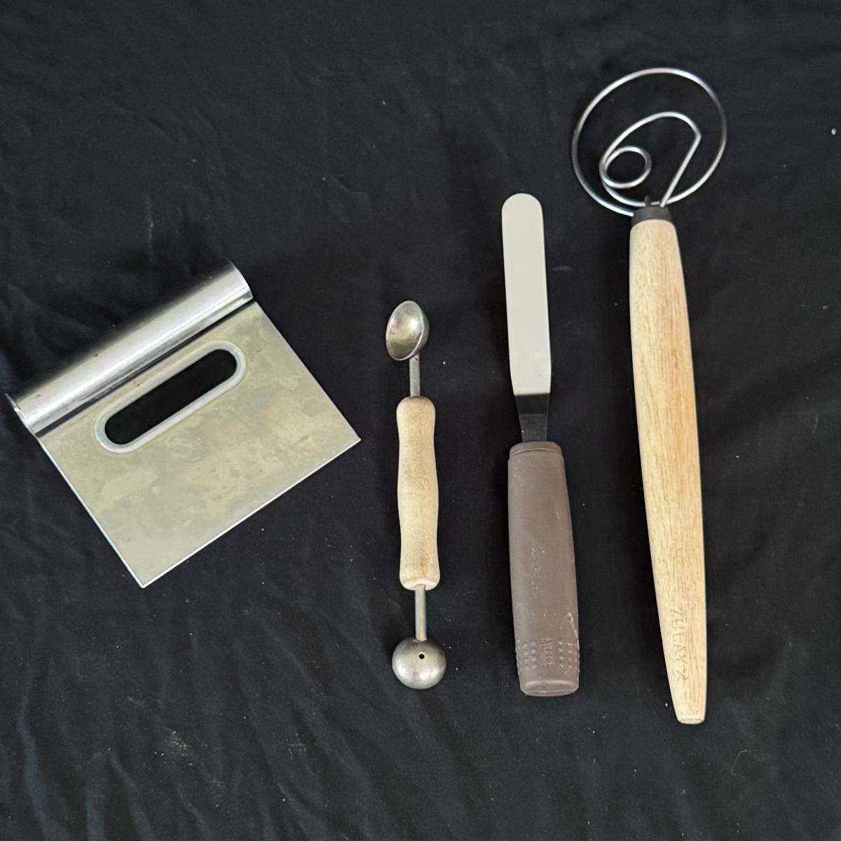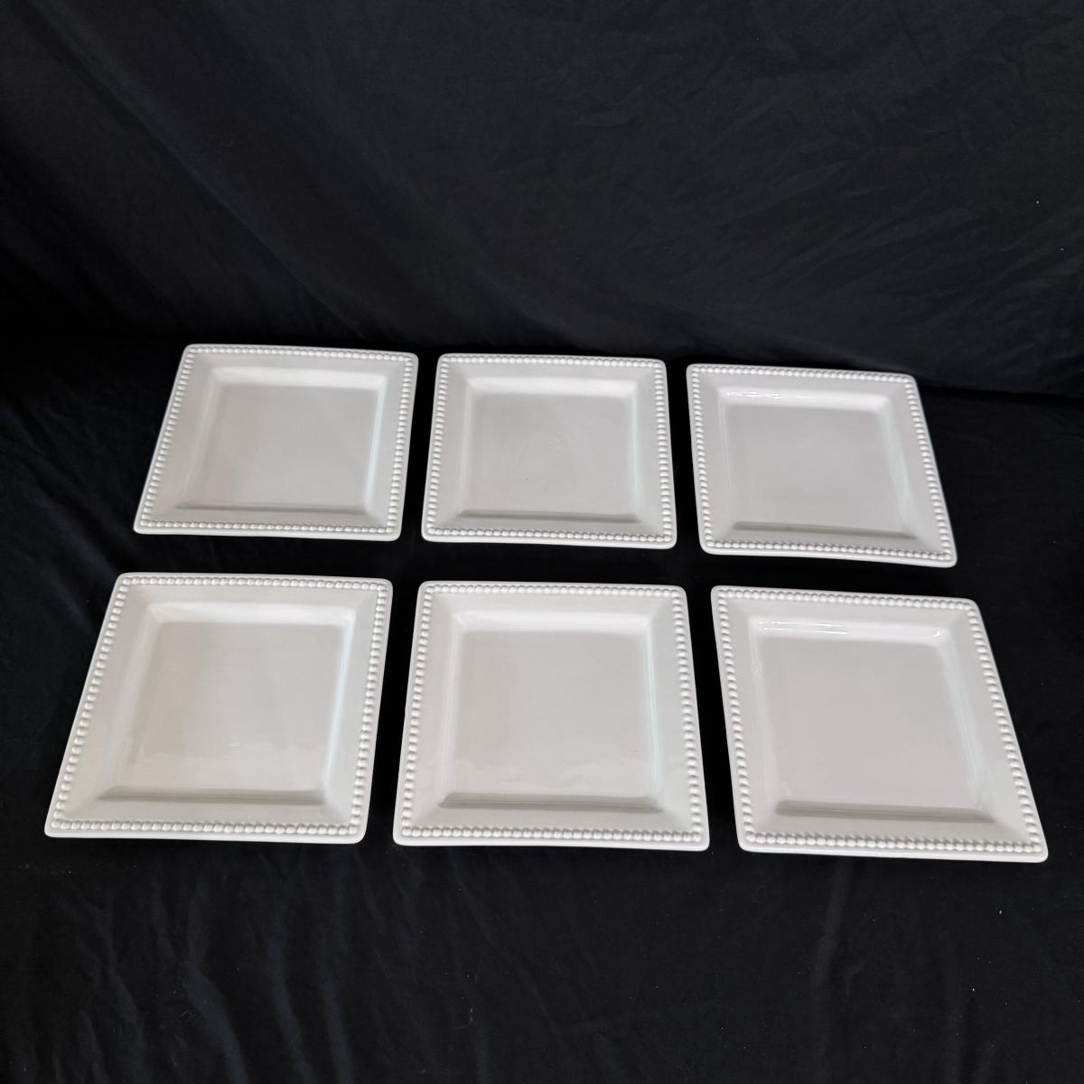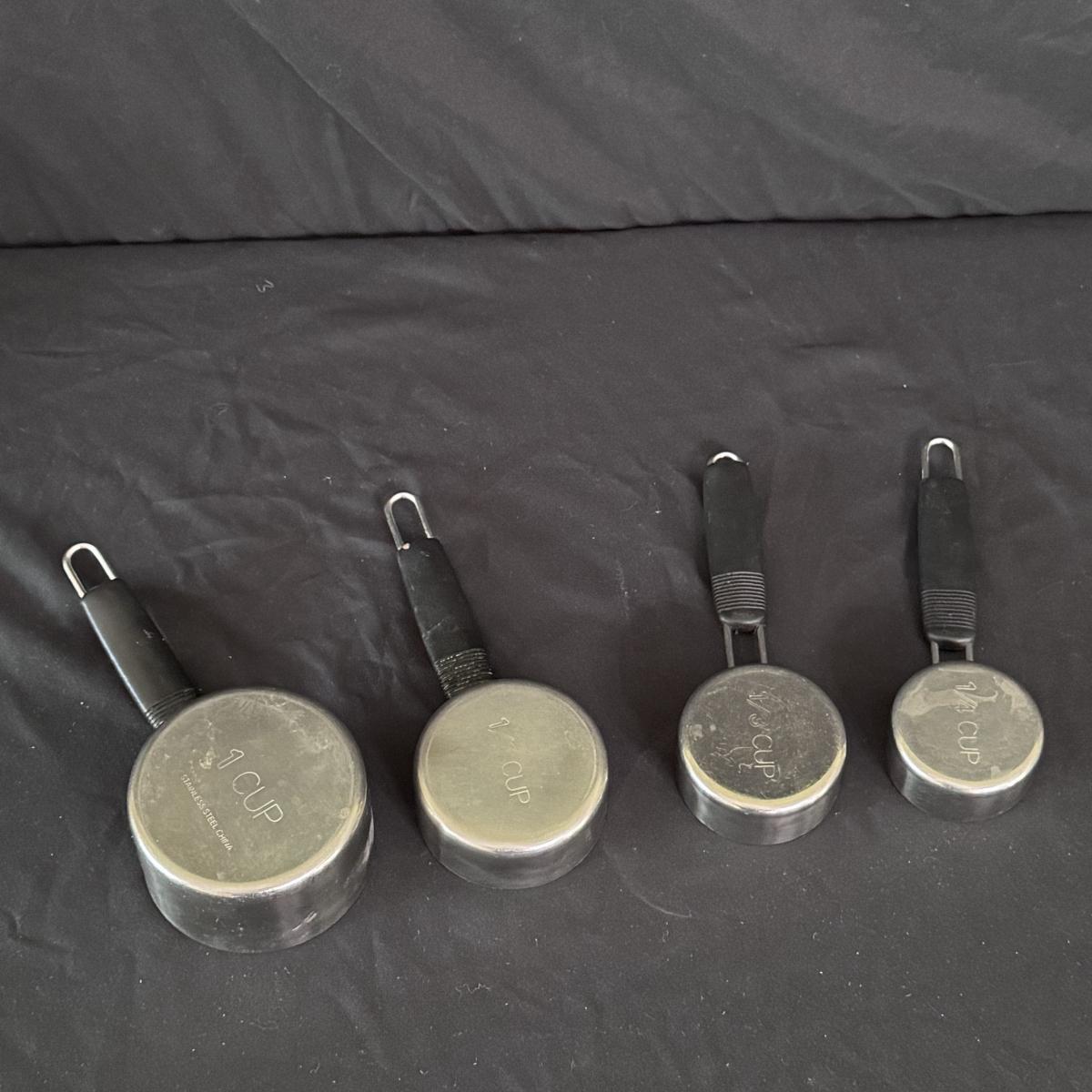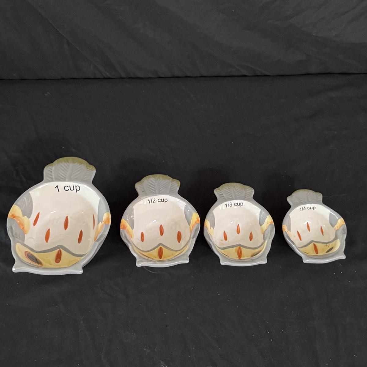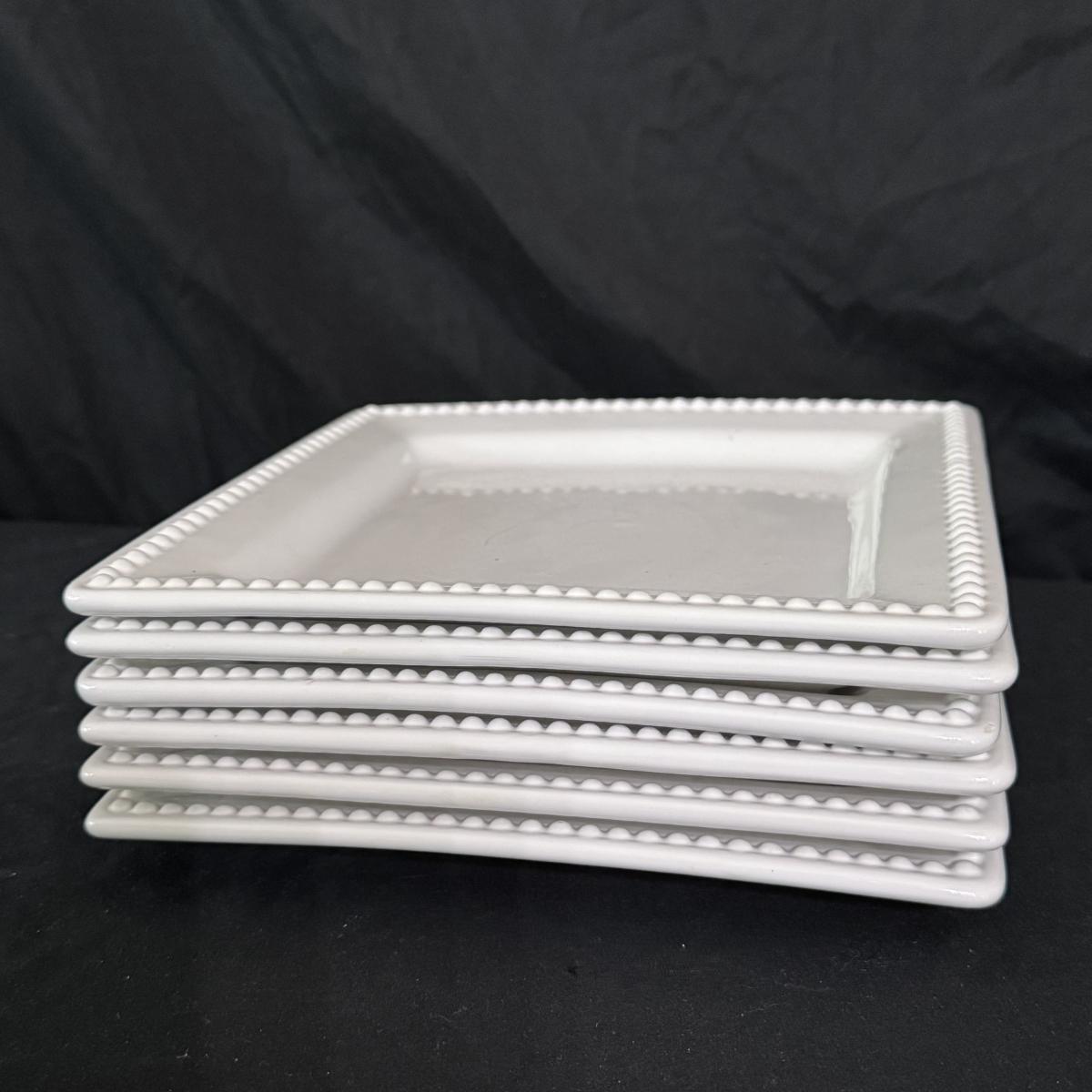 Lot includes one Real Home white ceramic serving tray with stand, six Real Home plates that match the tray, four stainless measuring spoons, one glass pedestal bowl, and four Pier 1 ceramic owl measuring cups. You’ll also find one stainless bench scraper, more measuring cups, a Cuisinart SmartPower 3-speed electronic hand mixer, and more. Mixer powers on when plugged in. See pictures for more details on all items. The largest item is the Real Home serving tray with stand that measures 13” square x 4”H. Shipping available.
