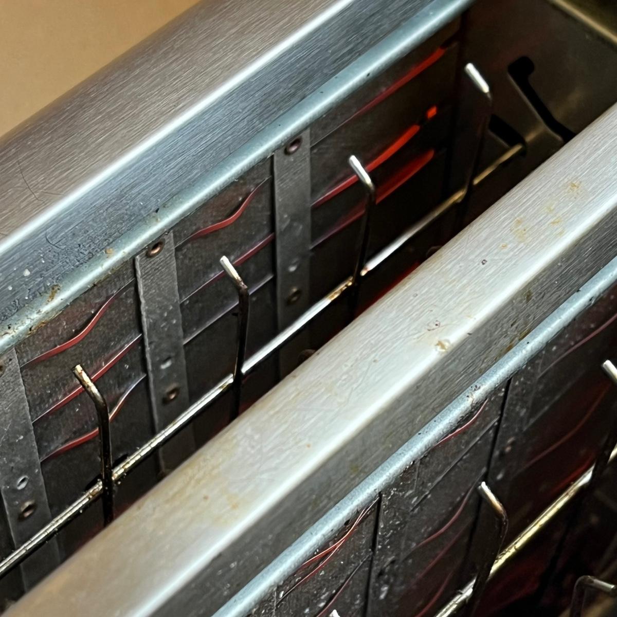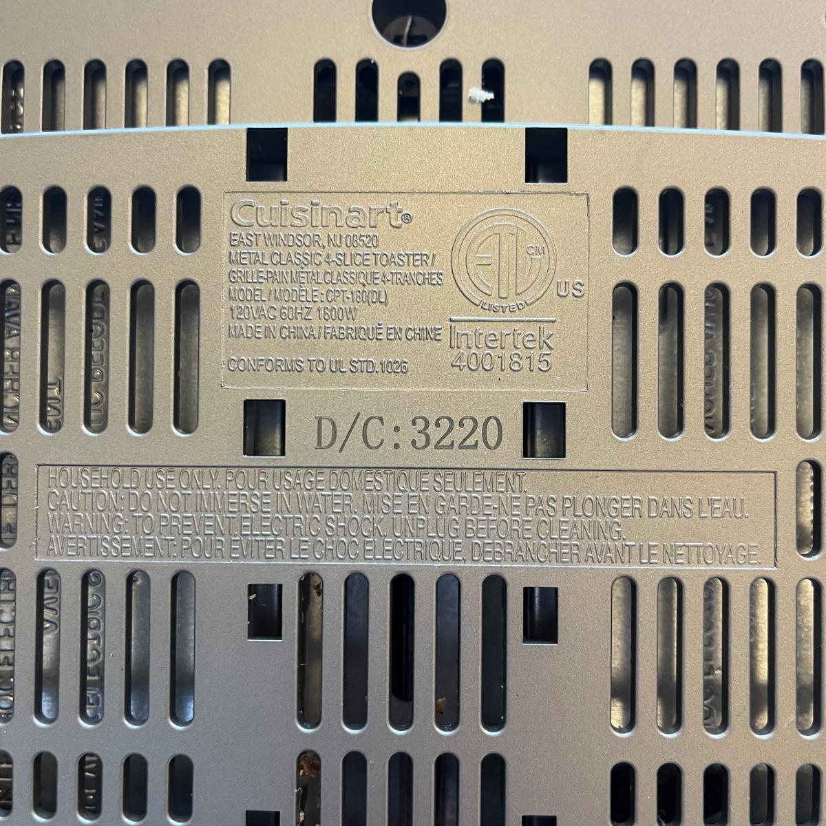 Cuisinart Stainless four slice toaster and Oster Stainless 7 speed blender. Both powered on when plugged in. Both need a good cleaning.