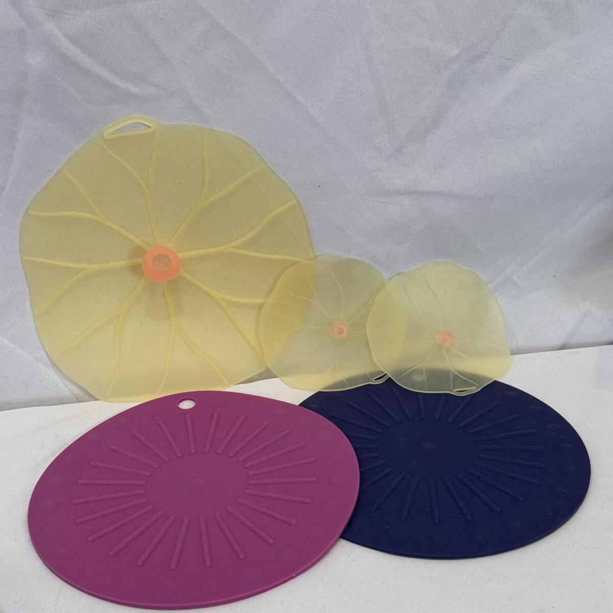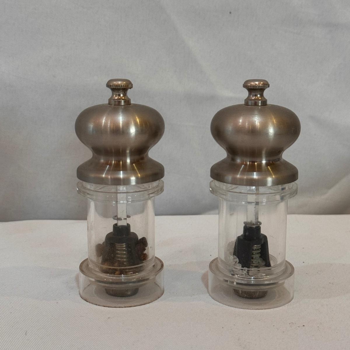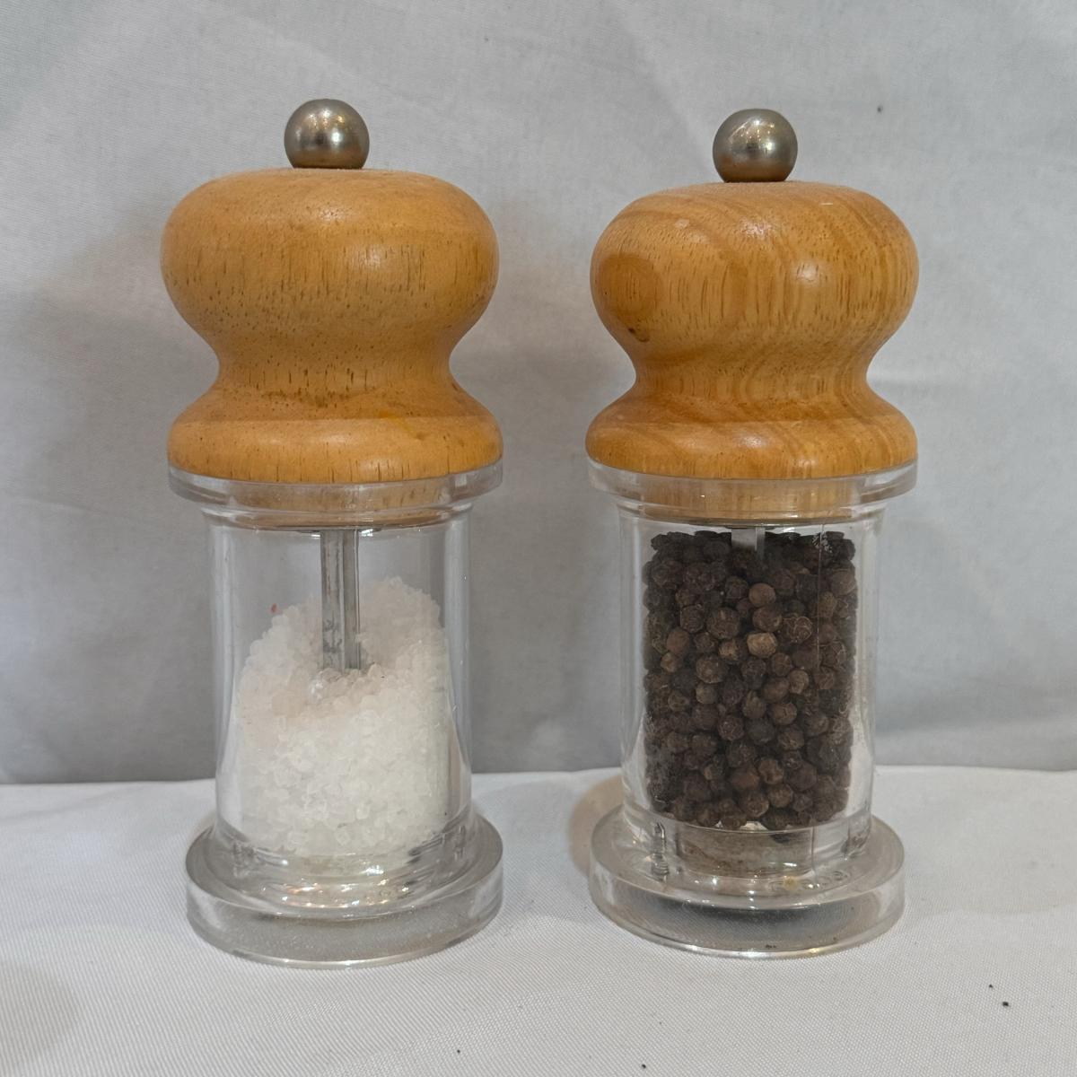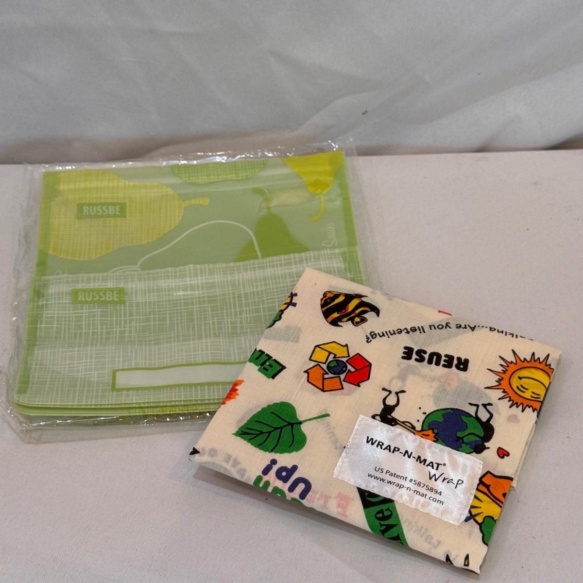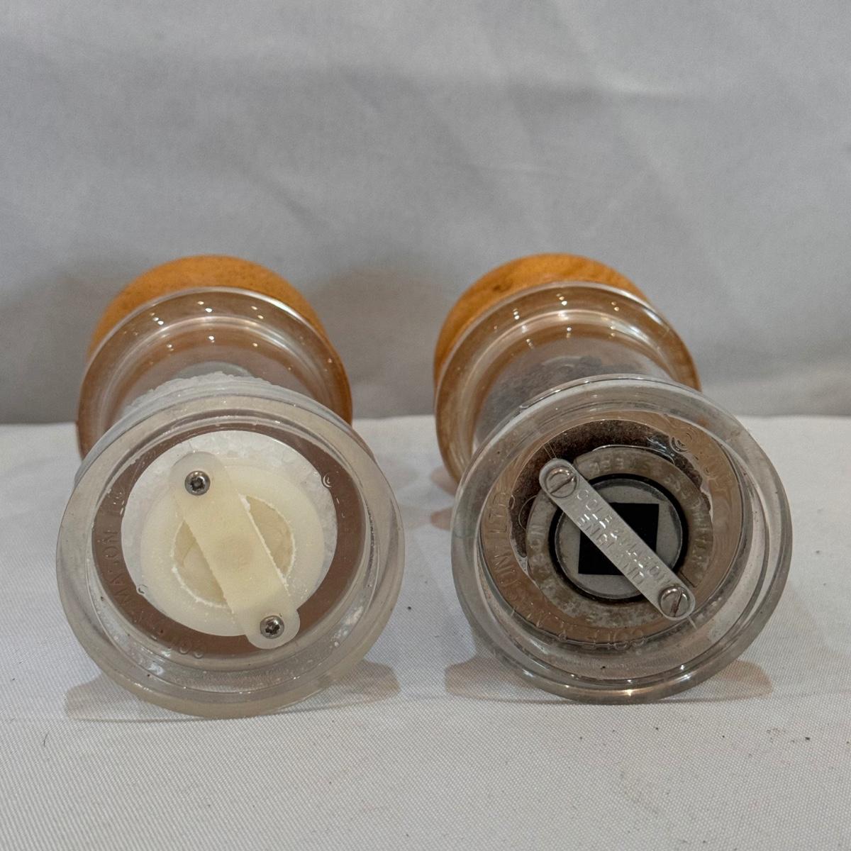 This lot includes one ice tray, one spice rack with three shelves, one magnetic blade guard from My Perfect Kitchen, two measuring tools by KitchenArt, one pair of Oxo scissors, one pair of Ergo Chef scissors, five silicone lids, two reusable wrap-n-mats, one set of salt and pepper shakers from Cole & Mason, one set of smaller salt and pepper shakers from unknown brand, three mortar & pestles in different sizes, two tea steepers, two fine graters from Microplane, one grater/seater from Microplane, one cheese slicer from Bellemain, one ice cream scoop from Zeroll, one can opener from Oxo, one additional can opener with no brand listed, one spatula from Rada, one pie server from Good Cook, one spatula from Calphalon, one cheese slicer from Cuisinart, one egg cutter, and eleven hand towels. The ice tray measures 13.5” x 2”H