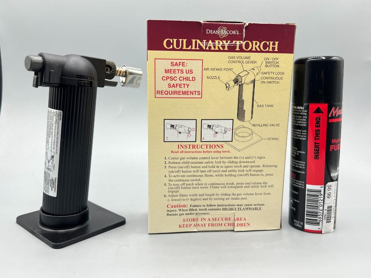 Culinary Torch with Butane. Hand held for easy use. Could be used for crafting also. Comes in original box. May have been previously used.