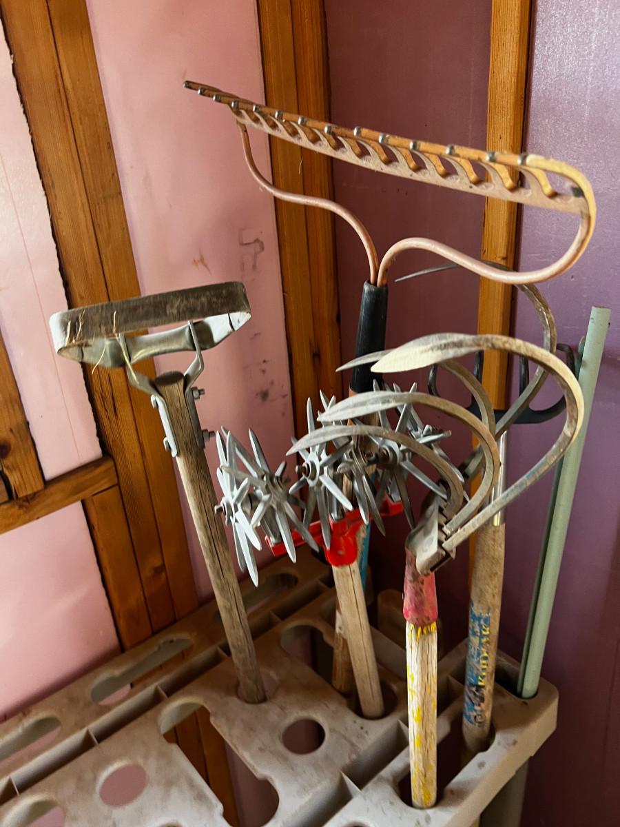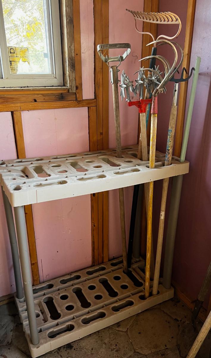 Cultivator and Hose includes Plastic Organizing Stand.