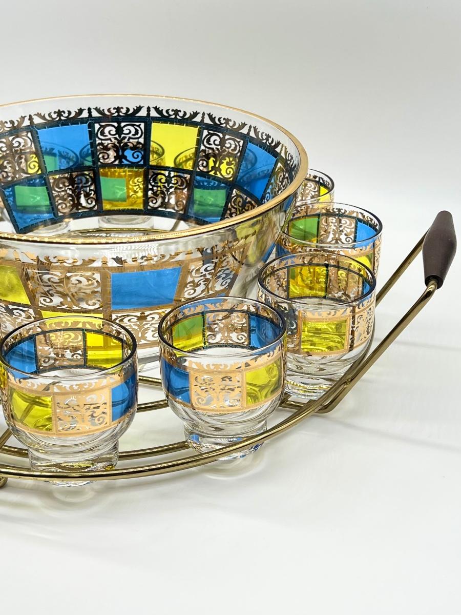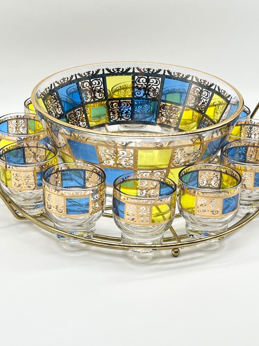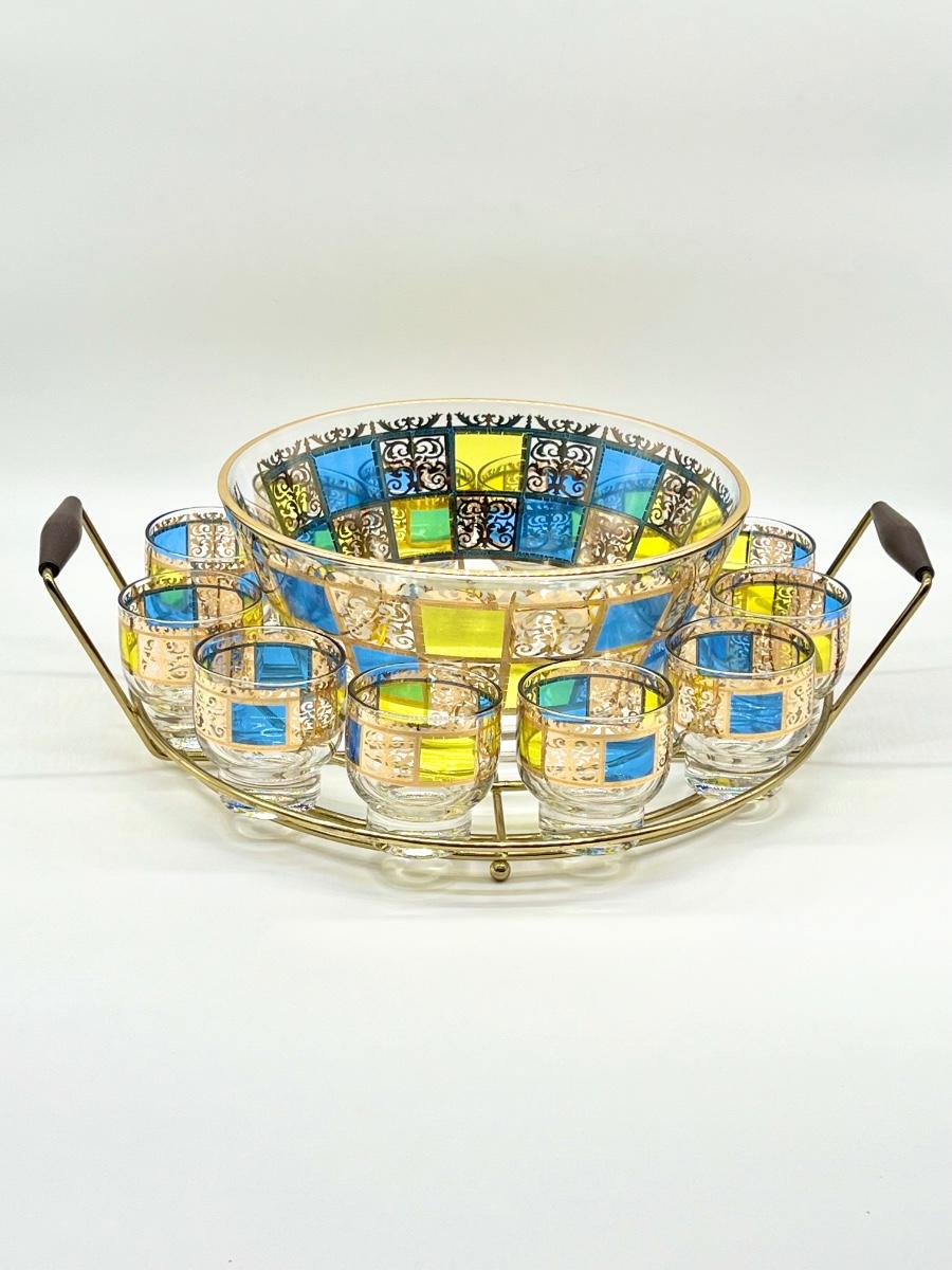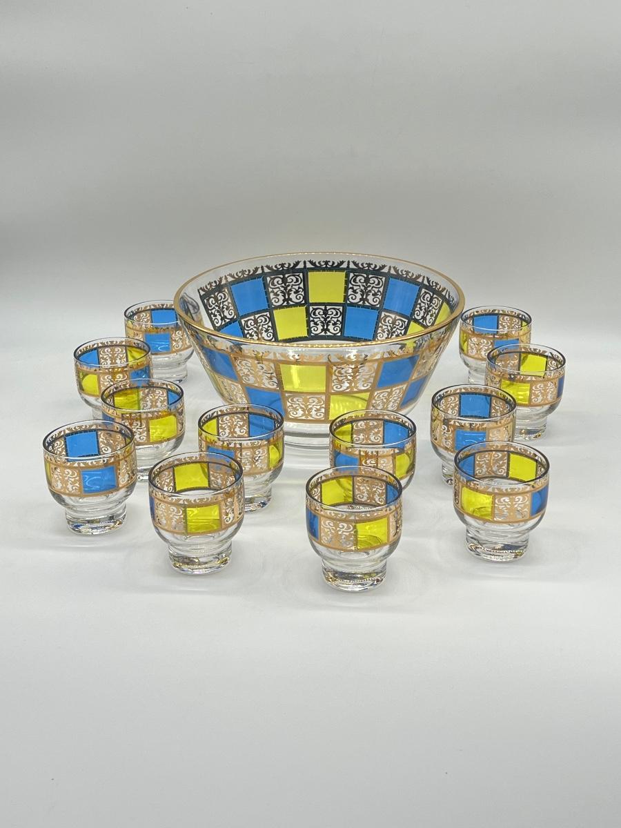 CULVER ~ MCM Glass Punch Bowl With 12 Glasses