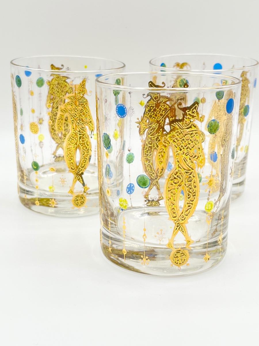 CULVER ~ Mardi Gras ~ Set Of Three (3) Flat Tumblers