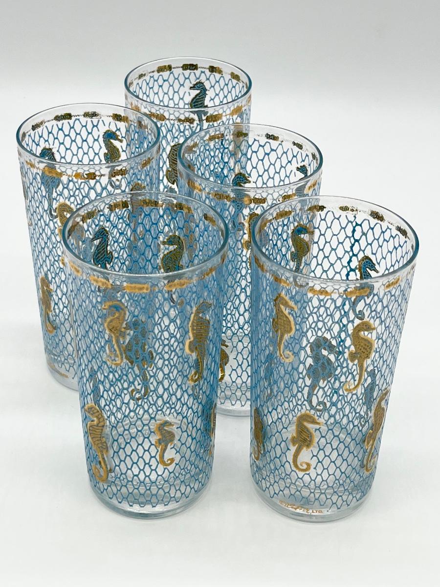 CULVER ~ MCM Vintage Seahorse Highballs ~ Set Of Five (5)