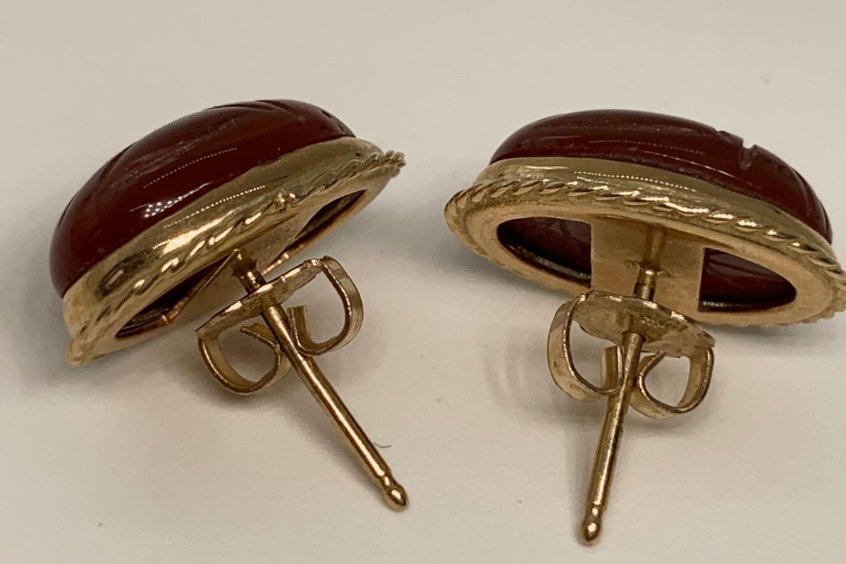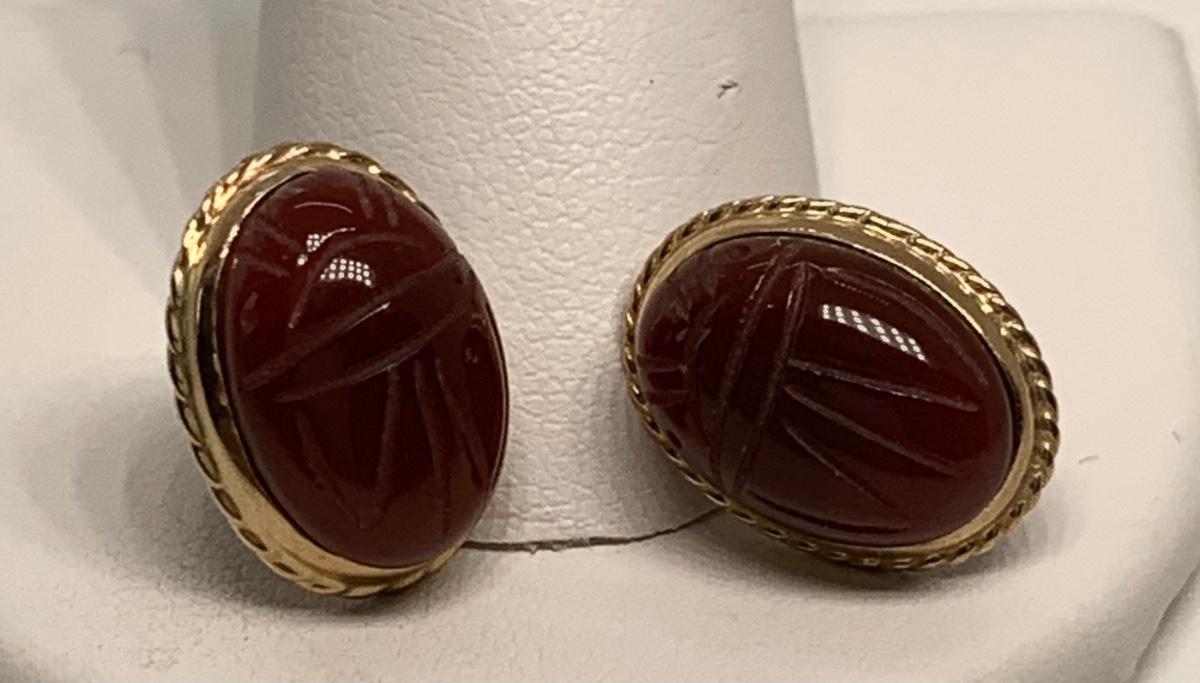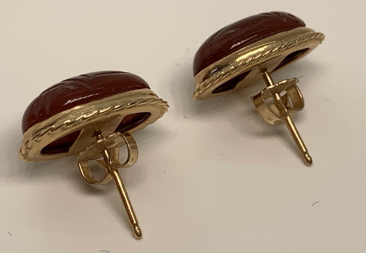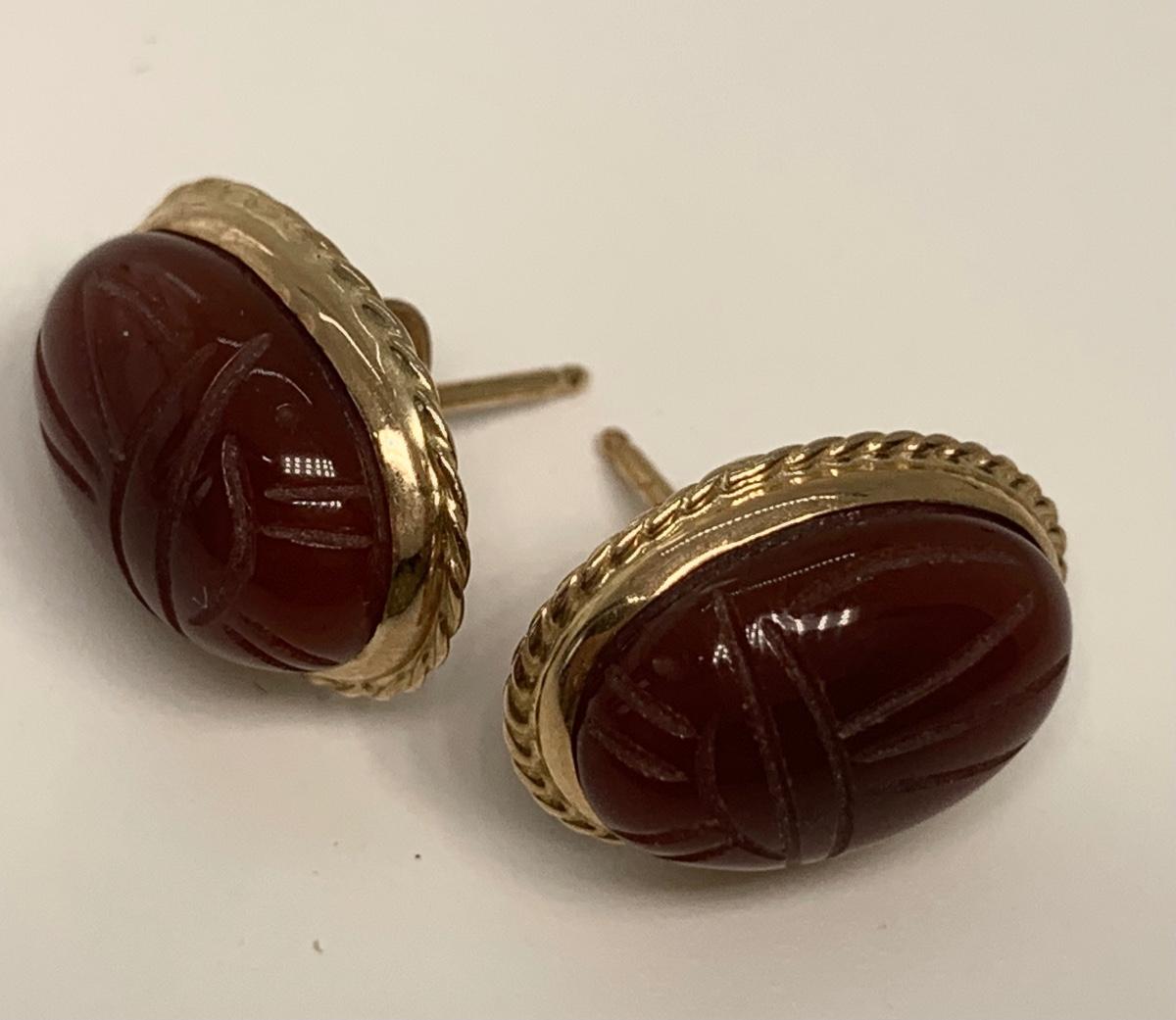 14K 4.5g Carnelian scarab pierced earrings