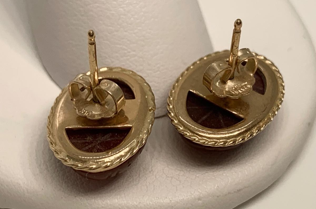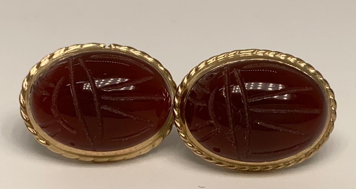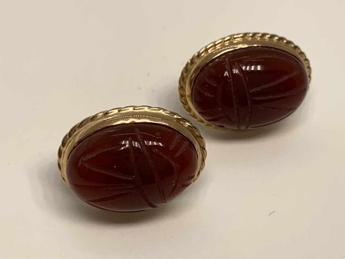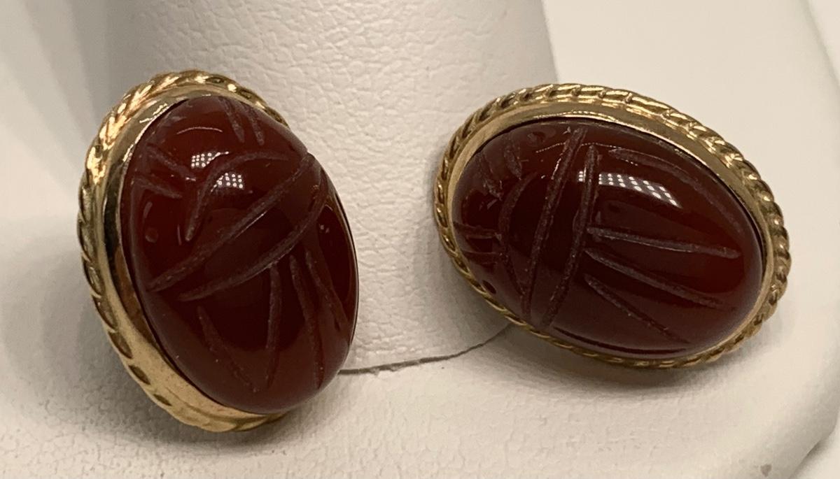 14K 4.5g Carnelian scarab pierced earrings