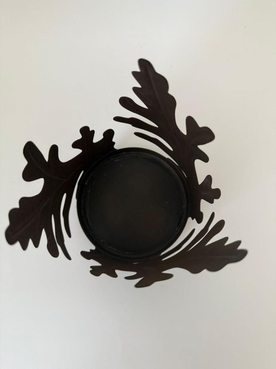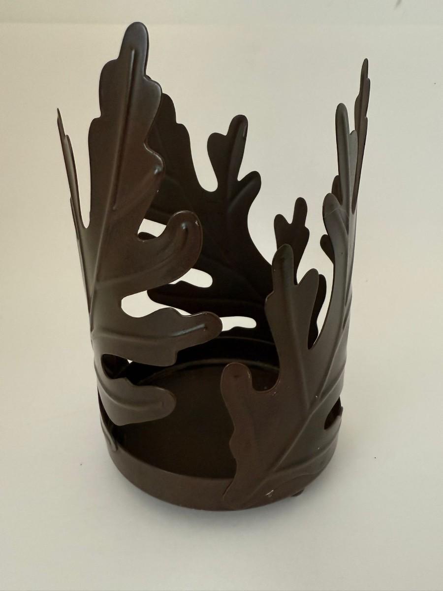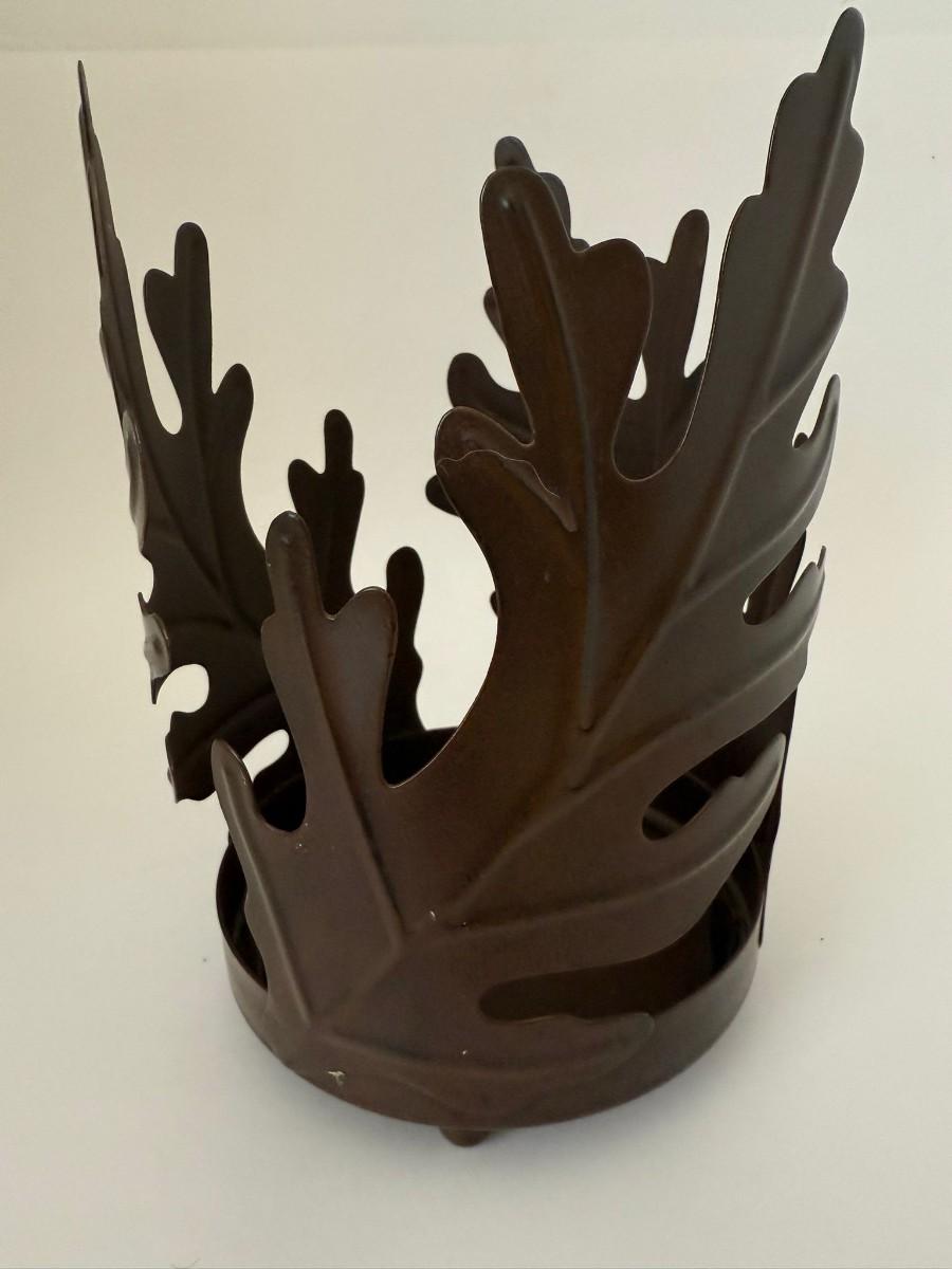 Metal large candle holder. Oak leaves. Dark brown. Fall decor