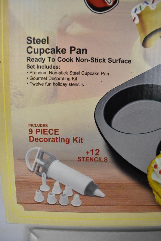 Cupcake Fun, 9 piece Decorating Kit + 12 Stencils. Appears unused